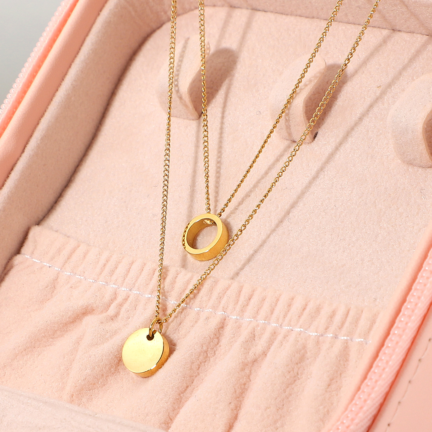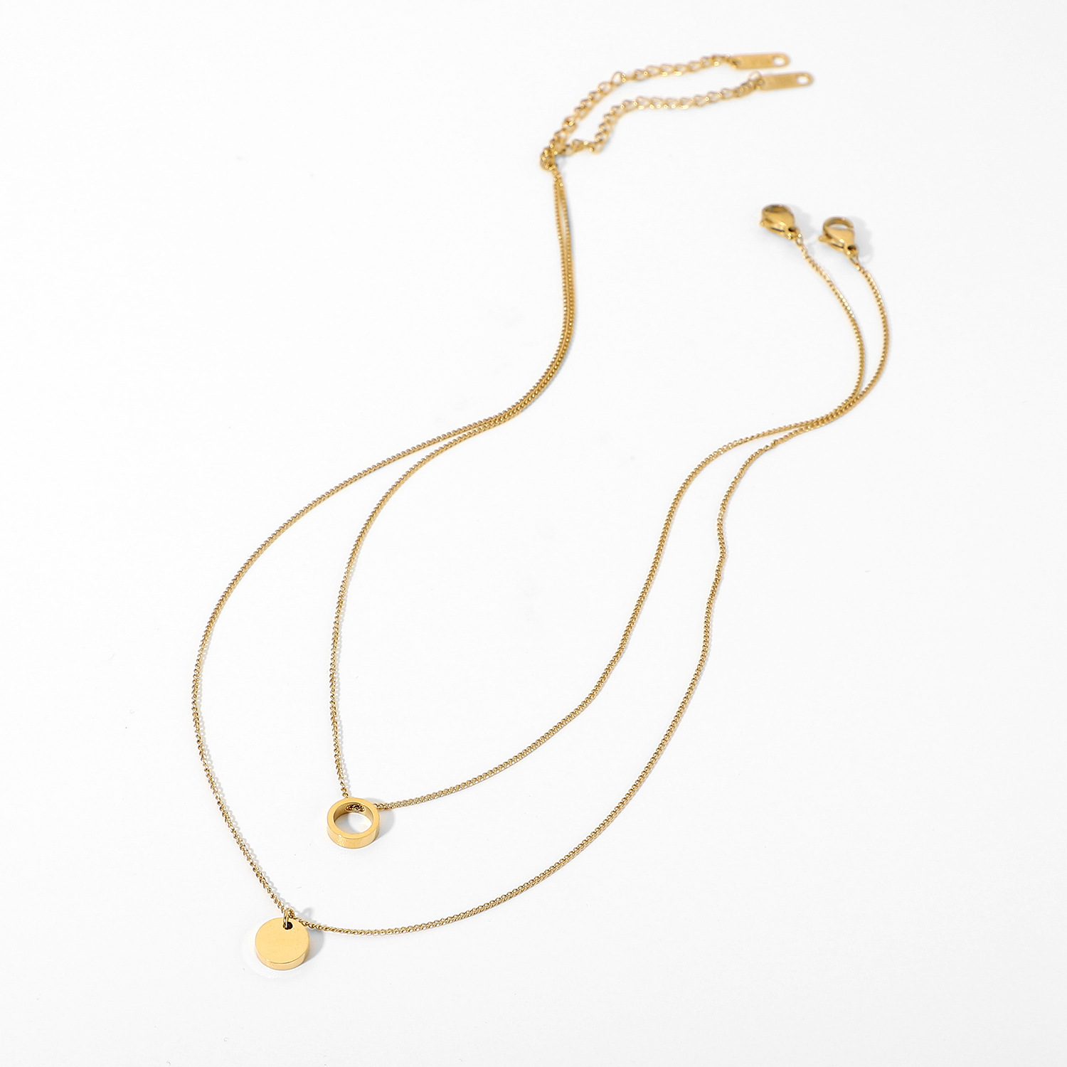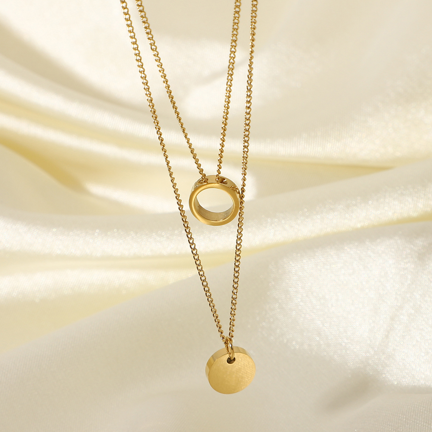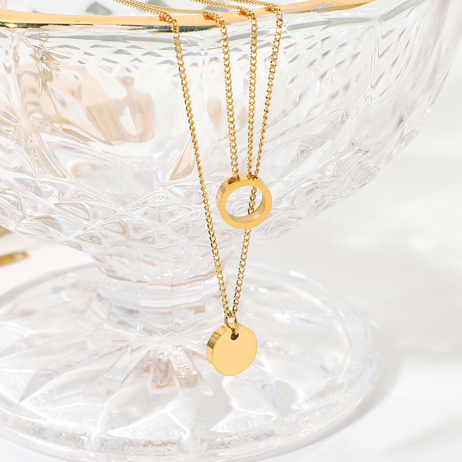 标题:欧美INS网红不锈钢项链14K镀金不锈钢珠宝圆形戒指吊坠项链套装女