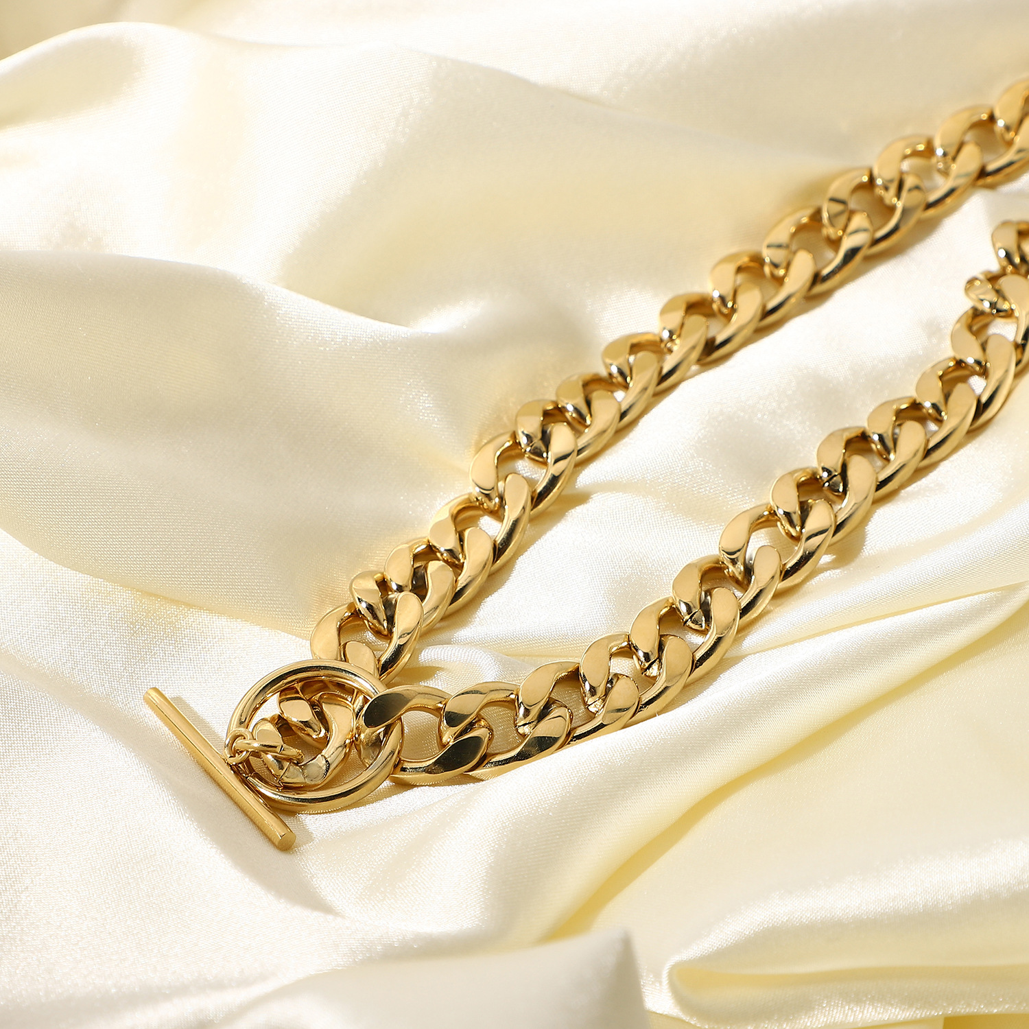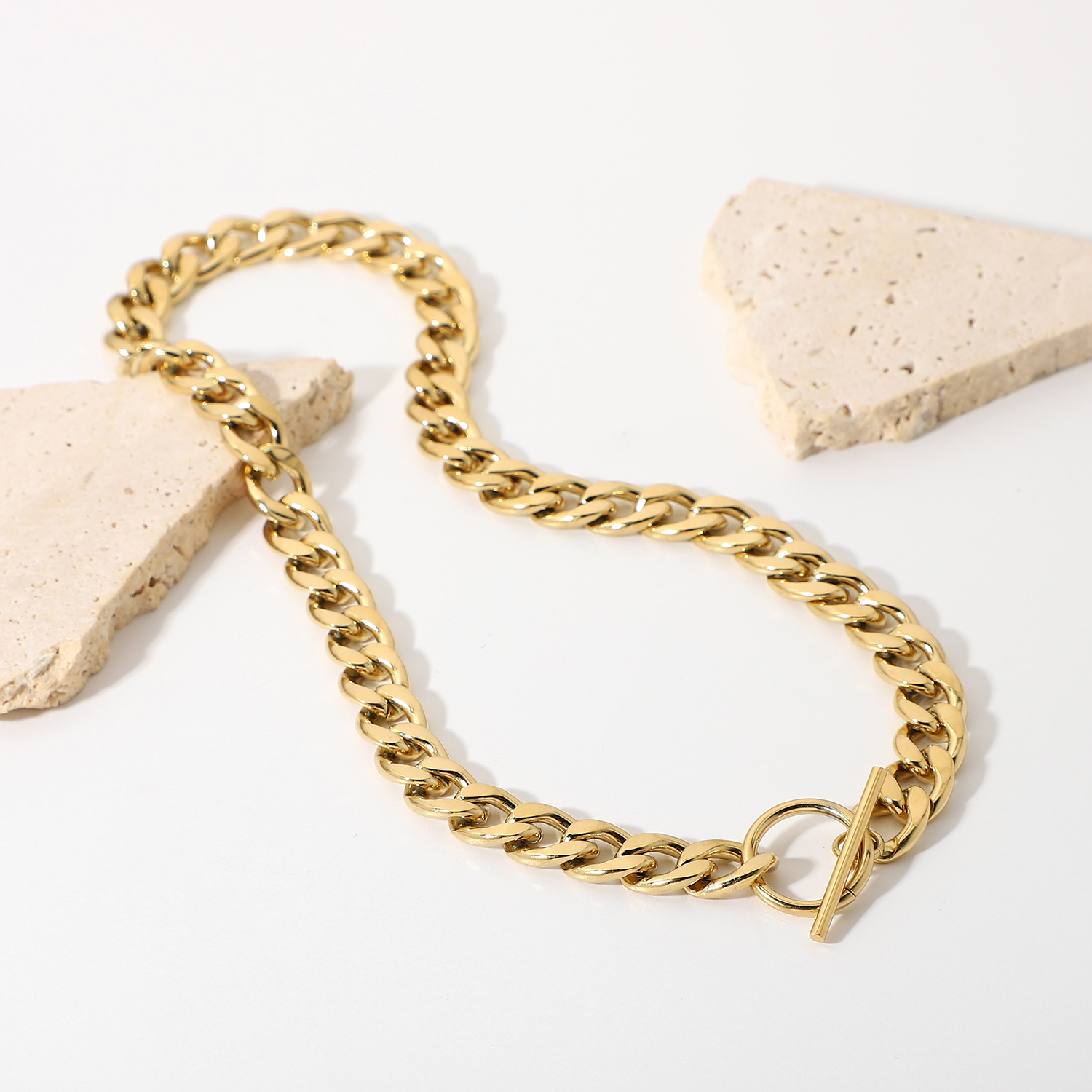 标题:时尚不锈钢首饰古巴链 项链OT扣14K镀金古巴链项链男士女士脖颈链