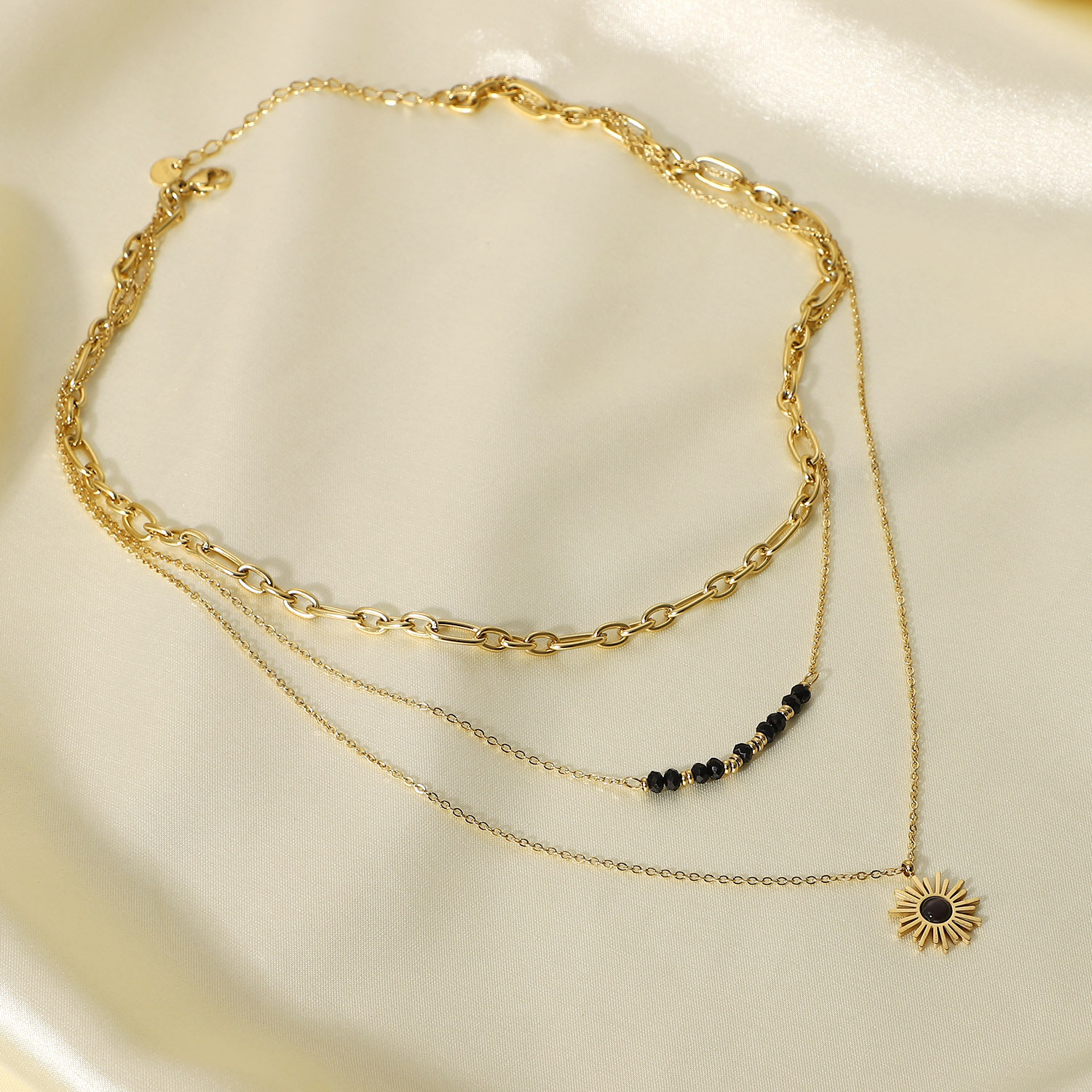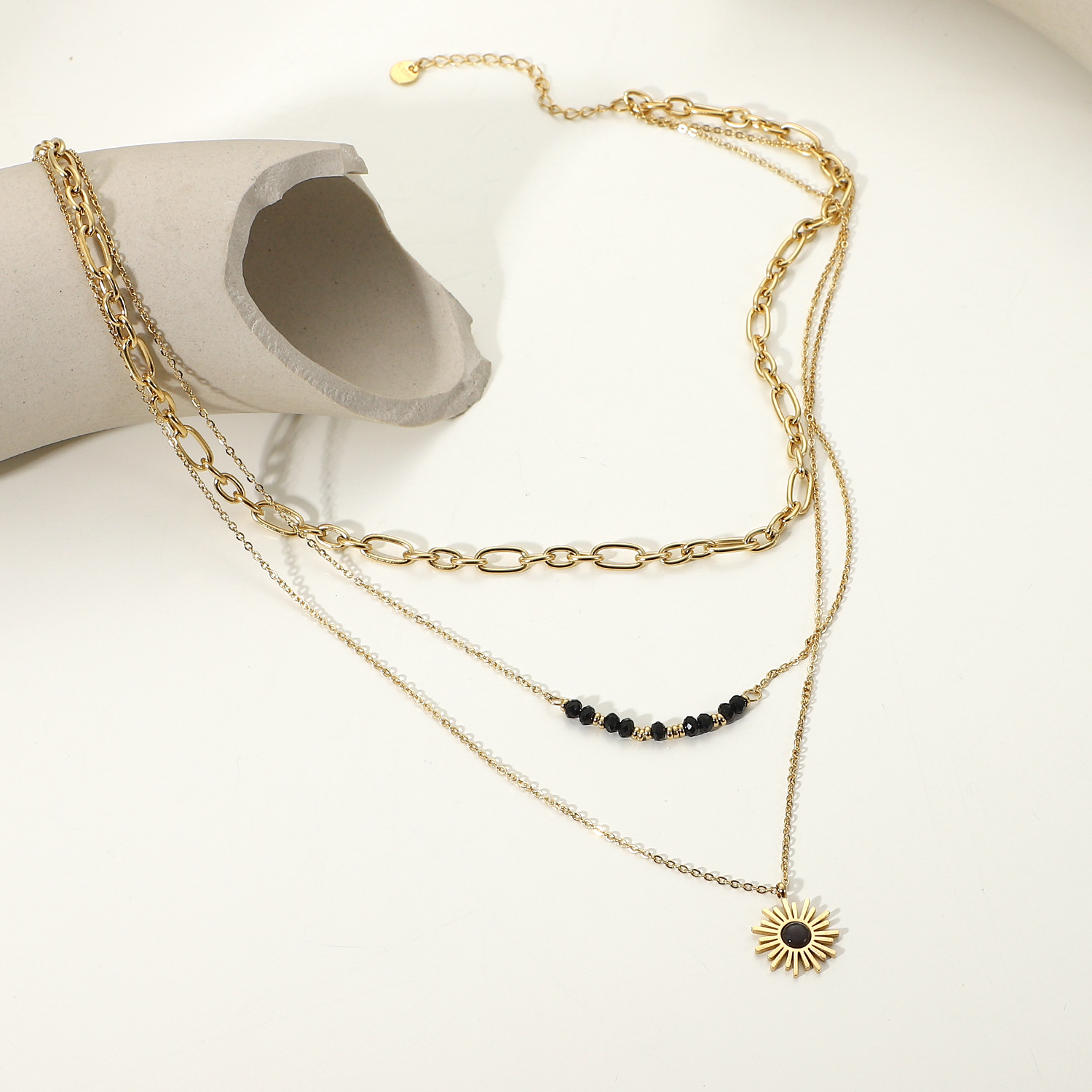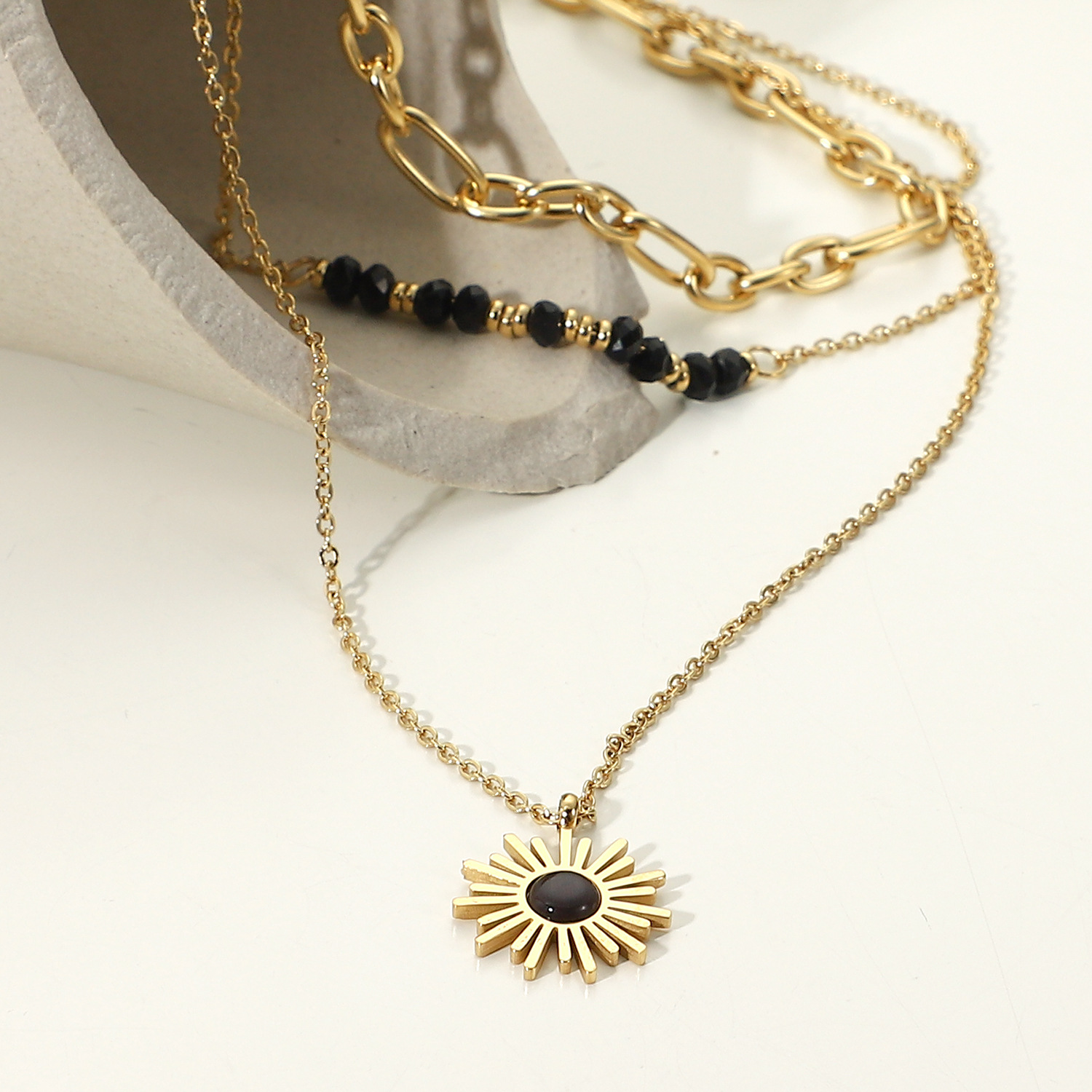 标题:欧美INS网红同款女黑色米珠太阳花吊坠三层项链 独立包装复古项链