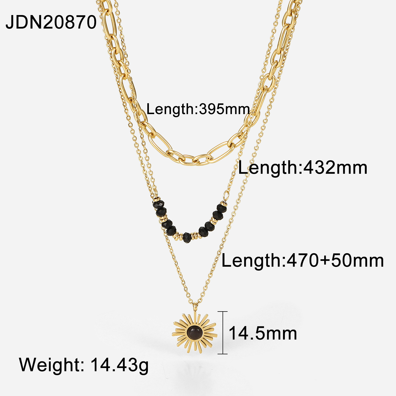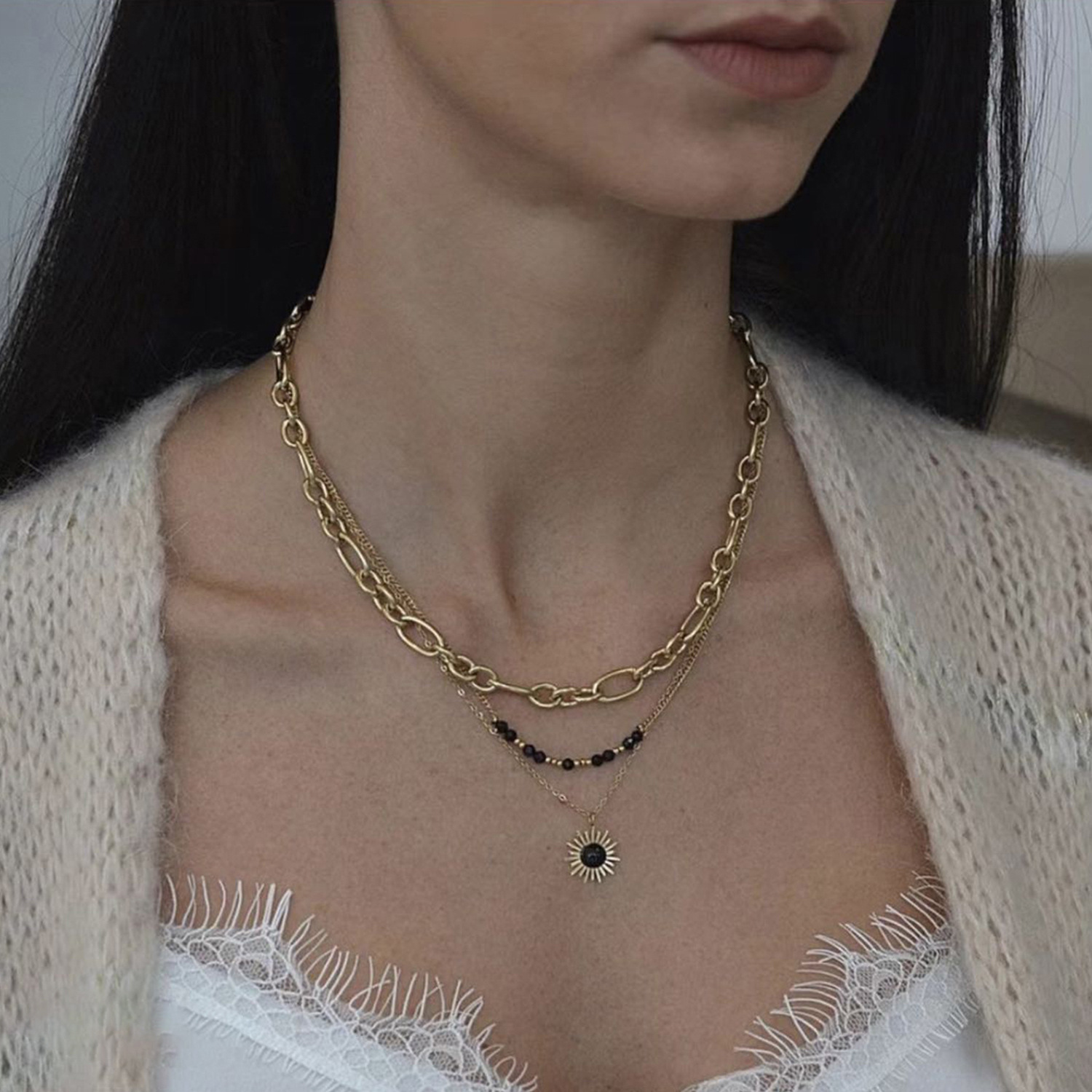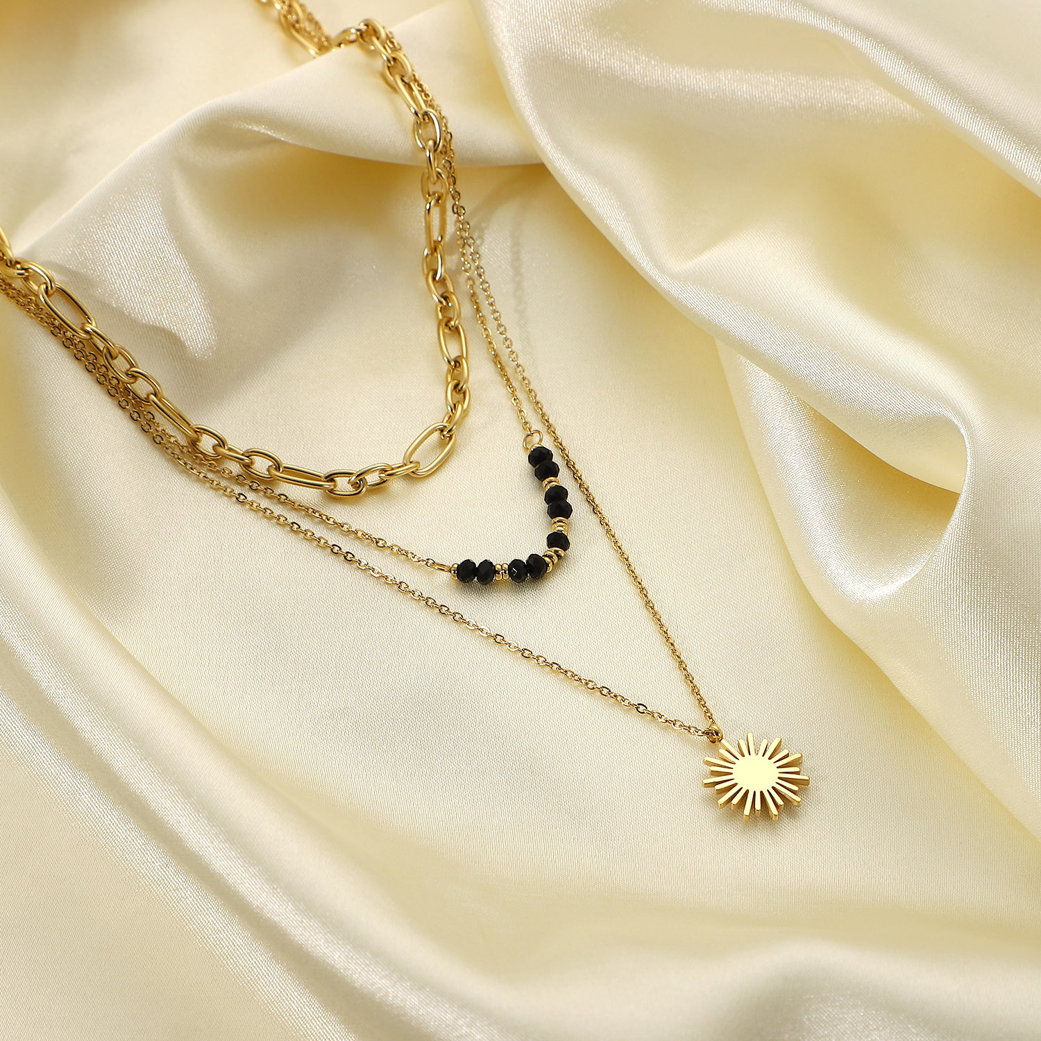 标题:欧美INS网红同款女黑色米珠太阳花吊坠三层项链 独立包装复古项链