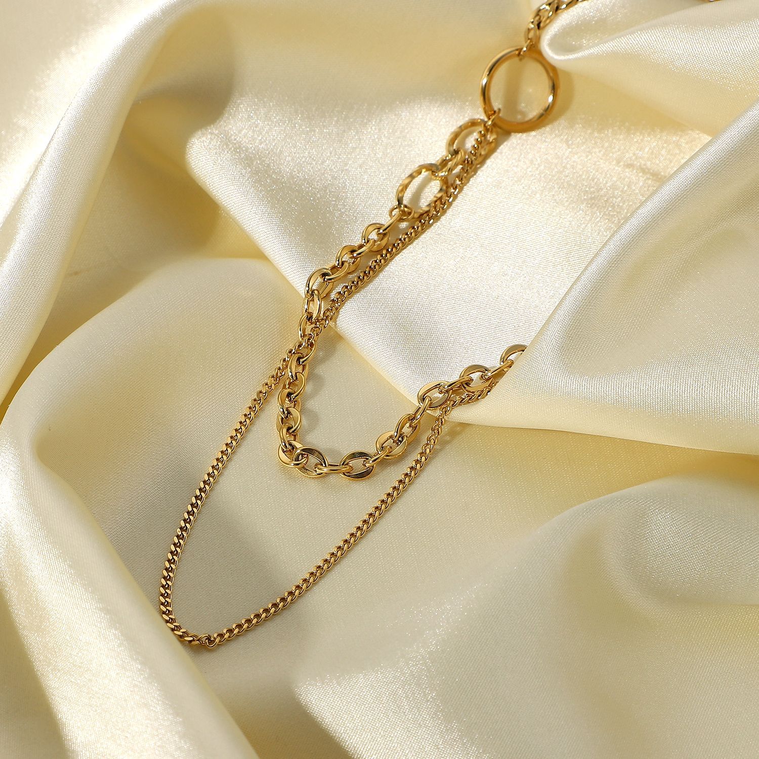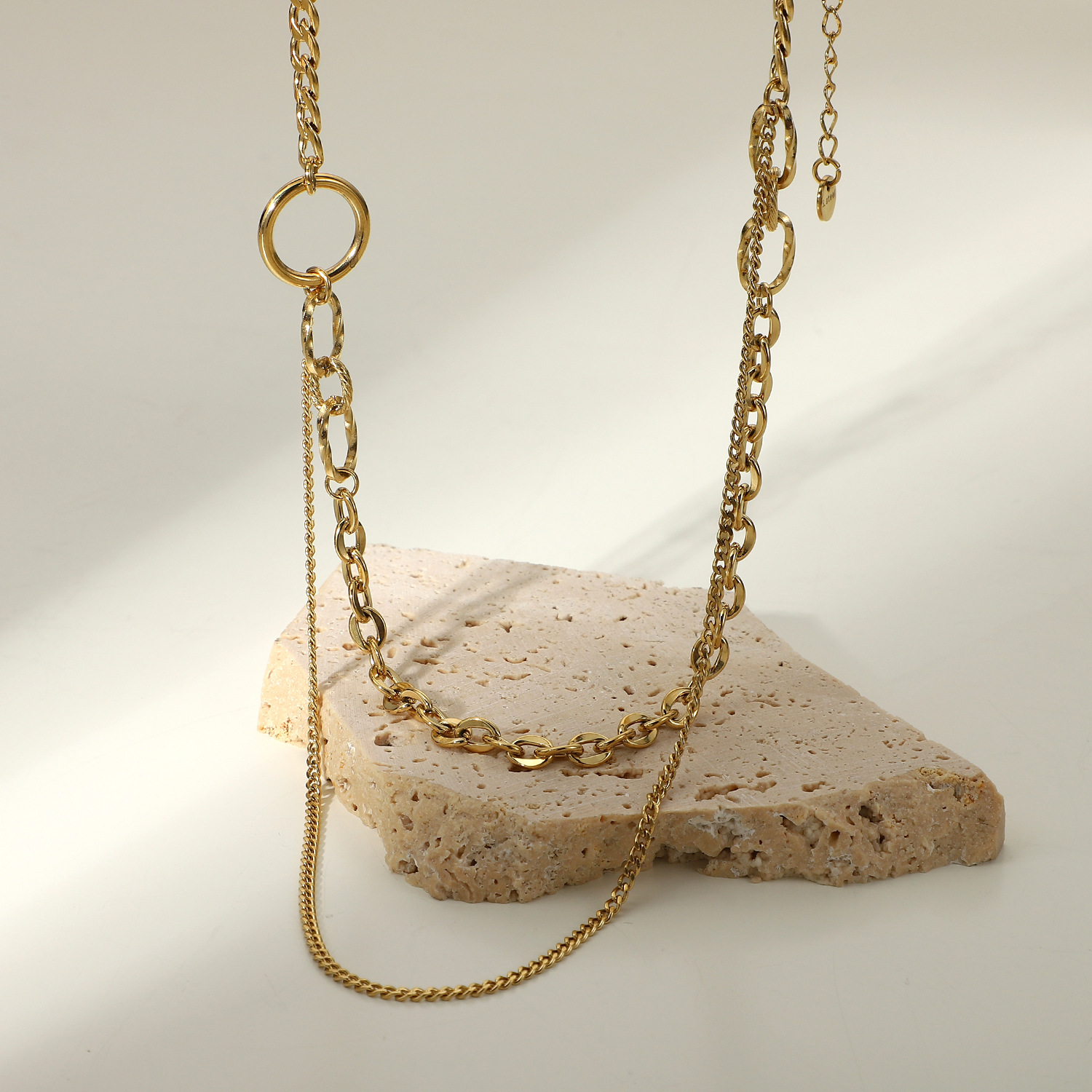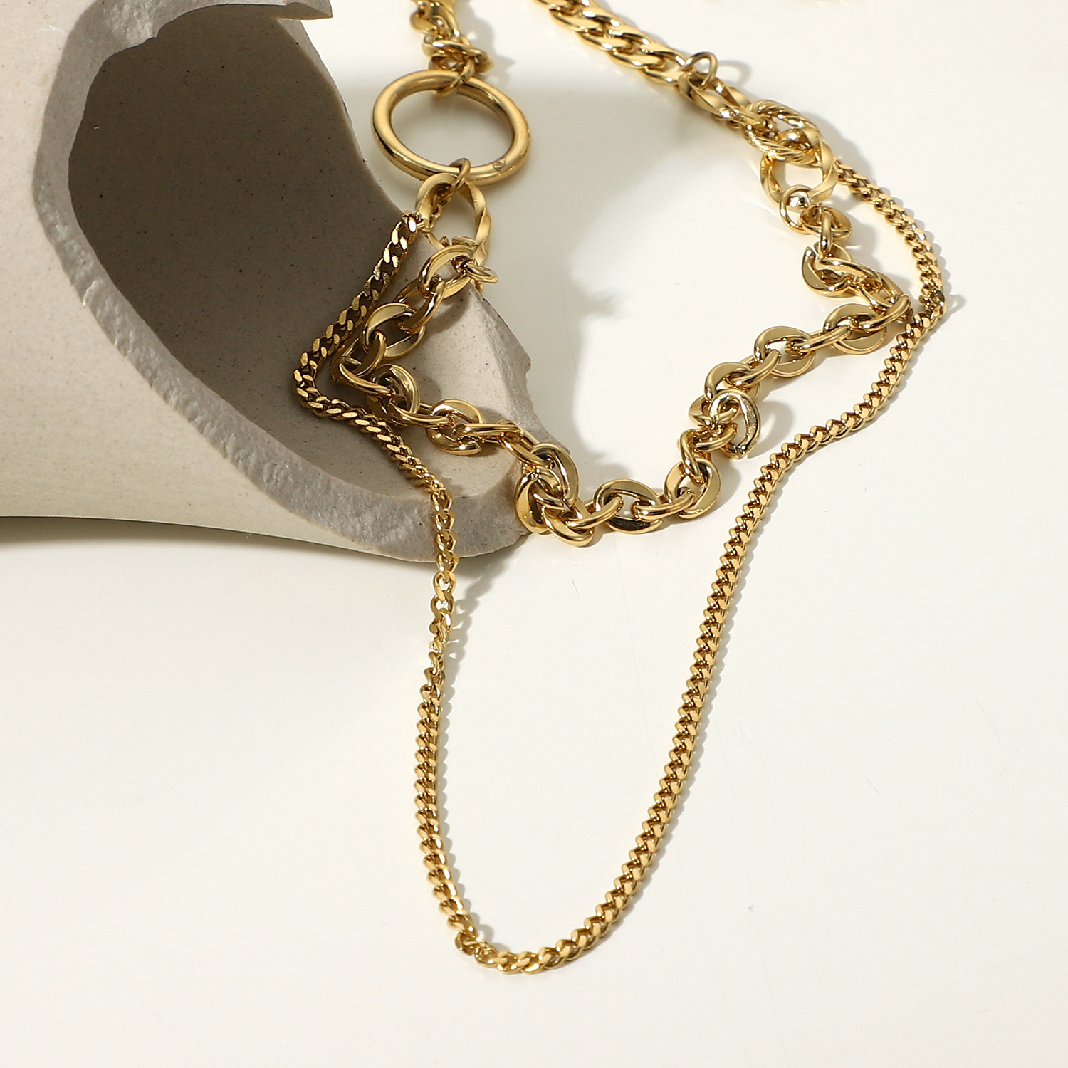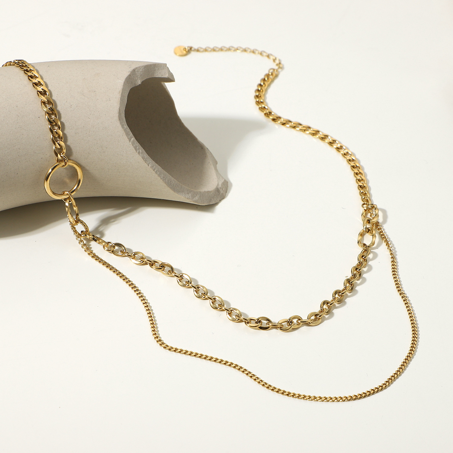 标题:欧美INS风不锈钢14K镀金古巴链项链环拼接无锈首饰多层项链饰品女