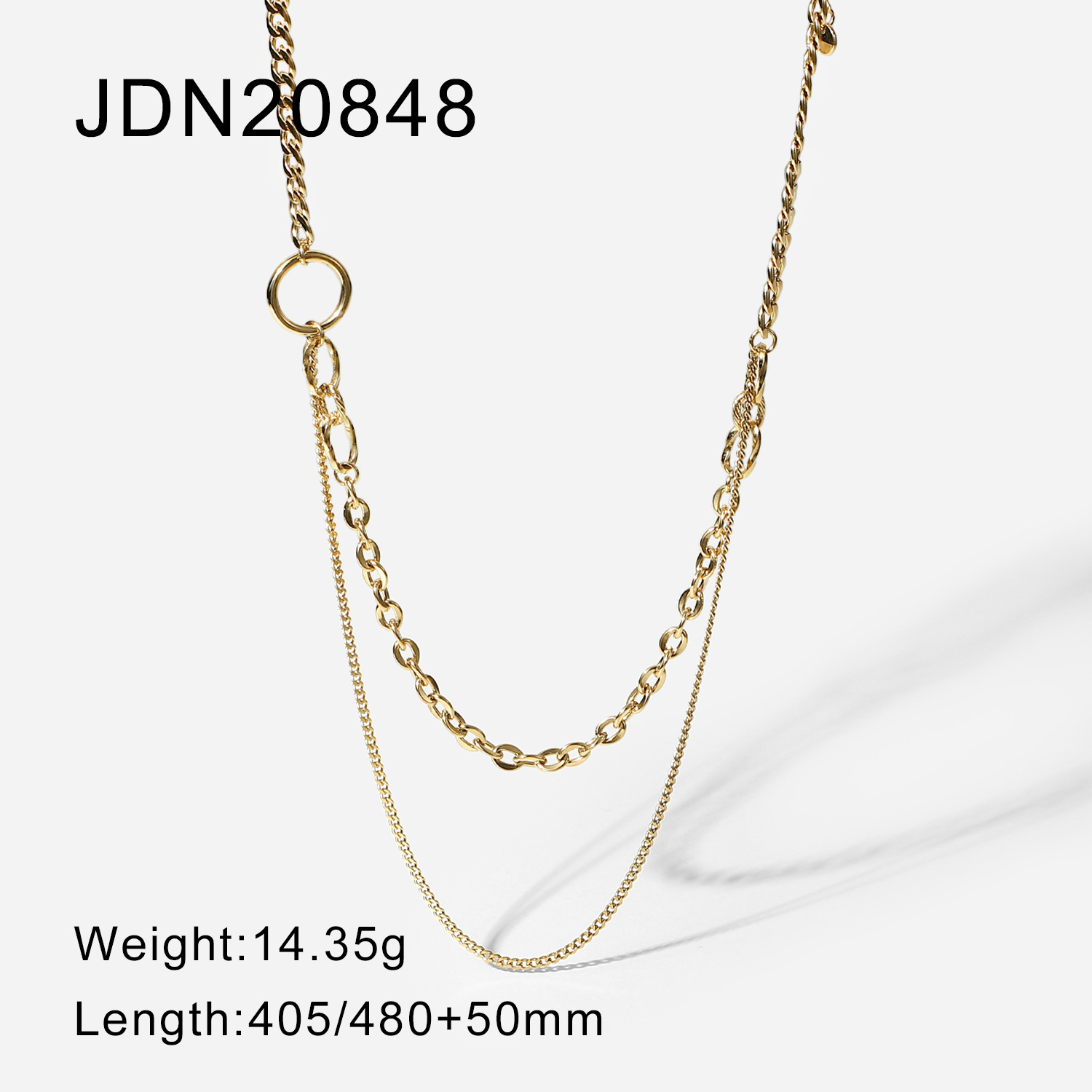 描述:风格:简约,材质:不锈钢,处理工艺:电镀,品牌:Youthway,生产编号:JDN20848,销售序列号:JDN20848,种类:项链,样式:女式,造型:几何型,包装:独立包装,适用送礼场合:婚庆,旅游纪念,员工福利,加工定制:是,货号:JDN20848,产地:浙江义乌,链子样式:古巴链,是否多层:是,是否带坠:是,延长链:10cm以下,坠子材质:不锈钢,周长:21cm(含)-50cm(含),系列:不锈钢,形象:项链,主要下游平台:ebay,亚马逊,wish,速卖通,独立站,LAZADA,颜色:JDN20848,主要销售地区:非洲,欧洲,南美,东南亚,北美,东北亚,中东,有可授权的自有品牌:是,是否跨境出口专供货源:是,流行元素:金属,链条,几何,上市年份/季节:2021年冬季,
