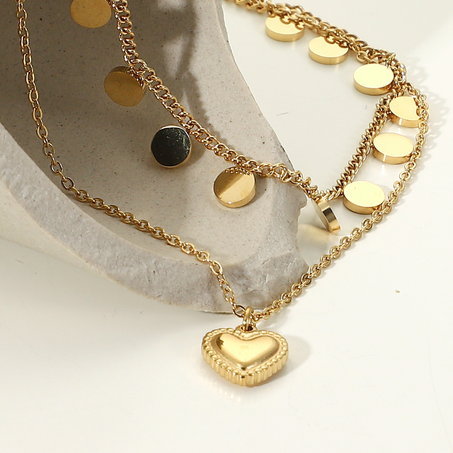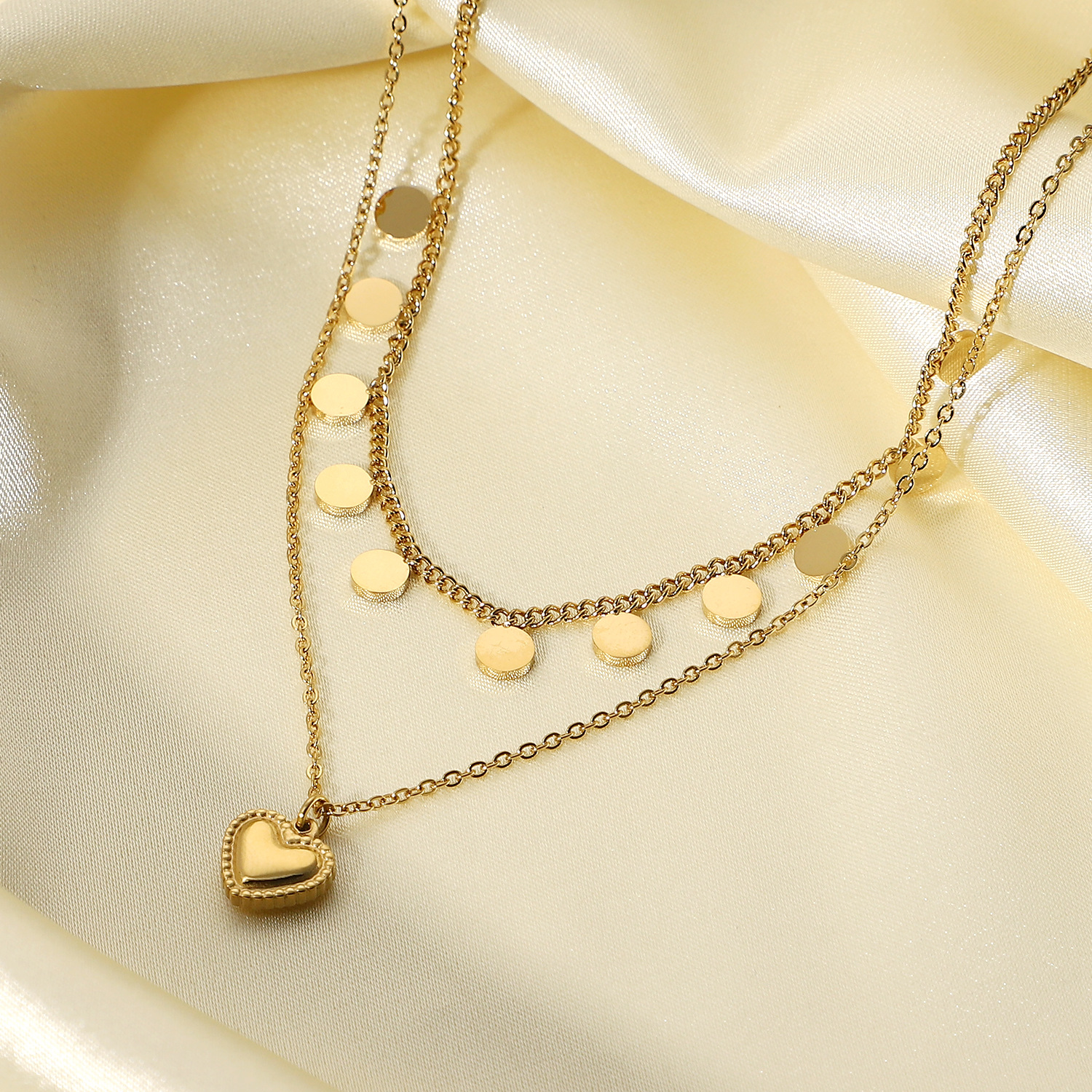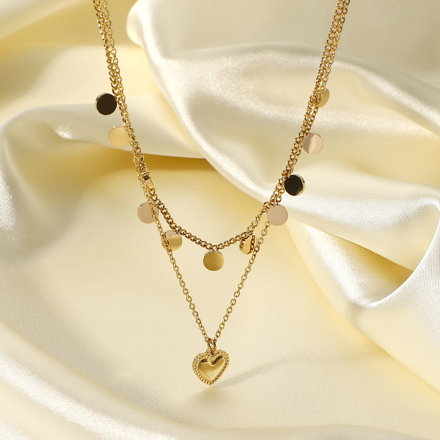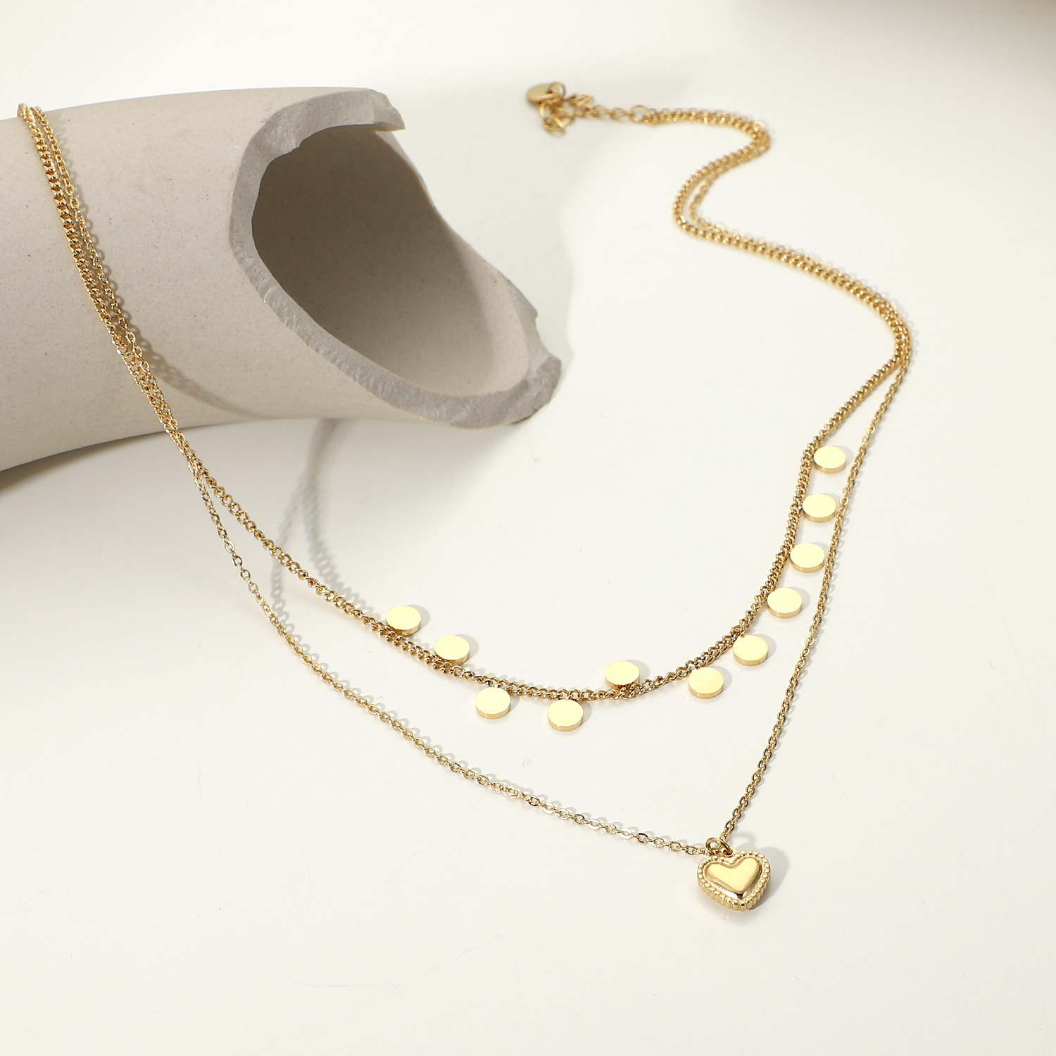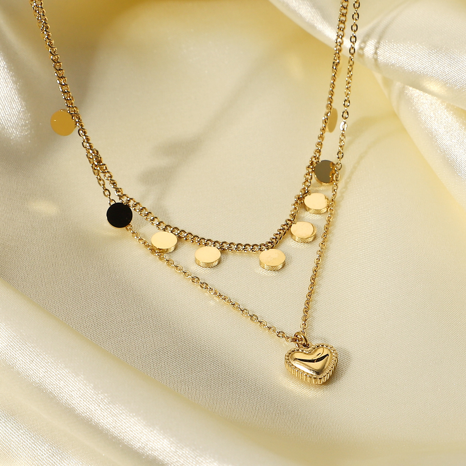 标题:INS网红博主同款钛钢项链14K镀金圆片流苏爱心吊坠双层项链女饰品