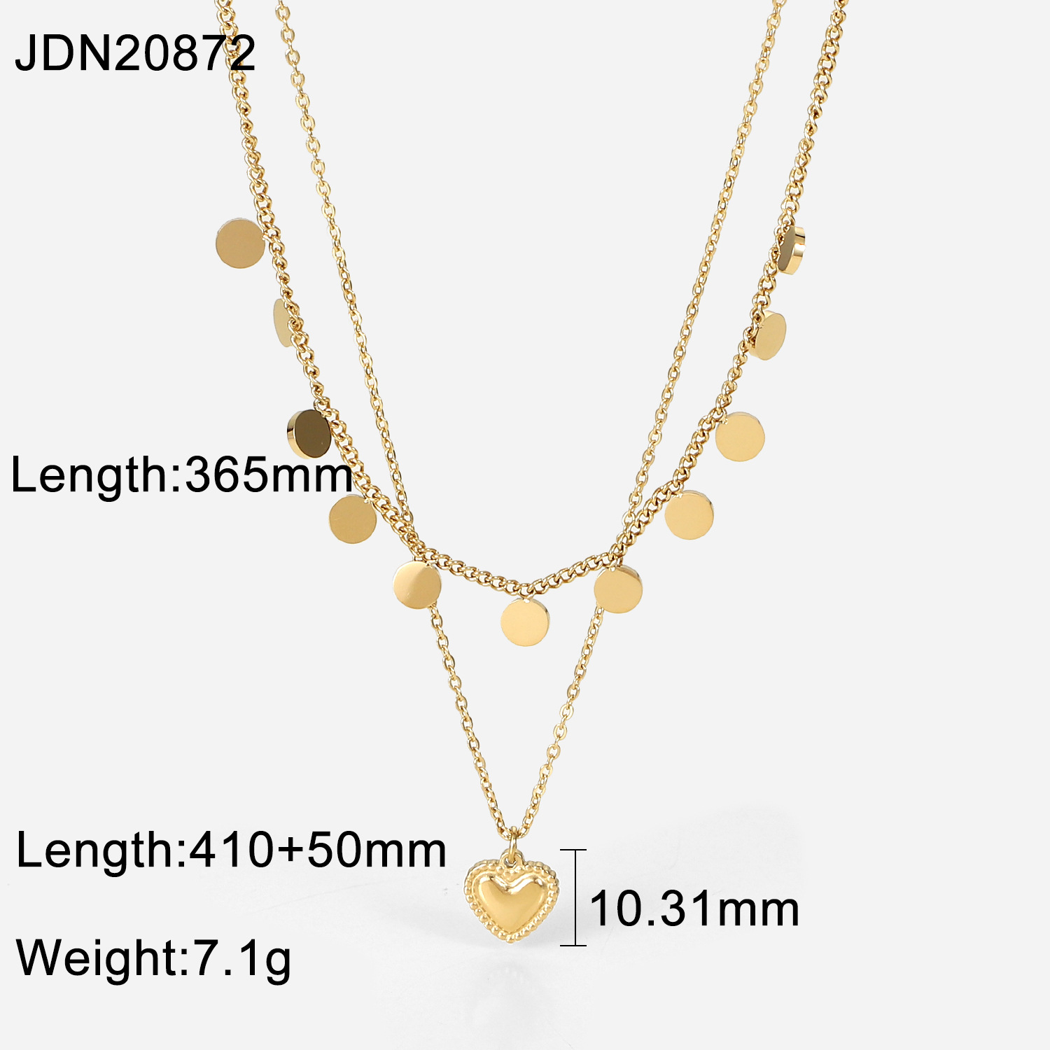 描述:风格:简约,材质:不锈钢,处理工艺:电镀,品牌:Youthway,生产编号:JDN20872,销售序列号:JDN20872,种类:项链,样式:女式,造型:圆片,包装:独立包装,适用送礼场合:婚庆,旅游纪念,员工福利,加工定制:是,货号:JDN20872,产地:浙江义乌,链子样式:常规链,是否多层:是,是否带坠:是,延长链:10cm以下,坠子材质:不锈钢,周长:21cm(含)-50cm(含),系列:不锈钢,形象:项链,主要下游平台:ebay,亚马逊,wish,速卖通,独立站,LAZADA,颜色:JDN20872,主要销售地区:非洲,欧洲,南美,东南亚,北美,东北亚,中东,有可授权的自有品牌:是,是否跨境出口专供货源:是,流行元素:金属,链条,几何,上市年份/季节:2021年冬季,