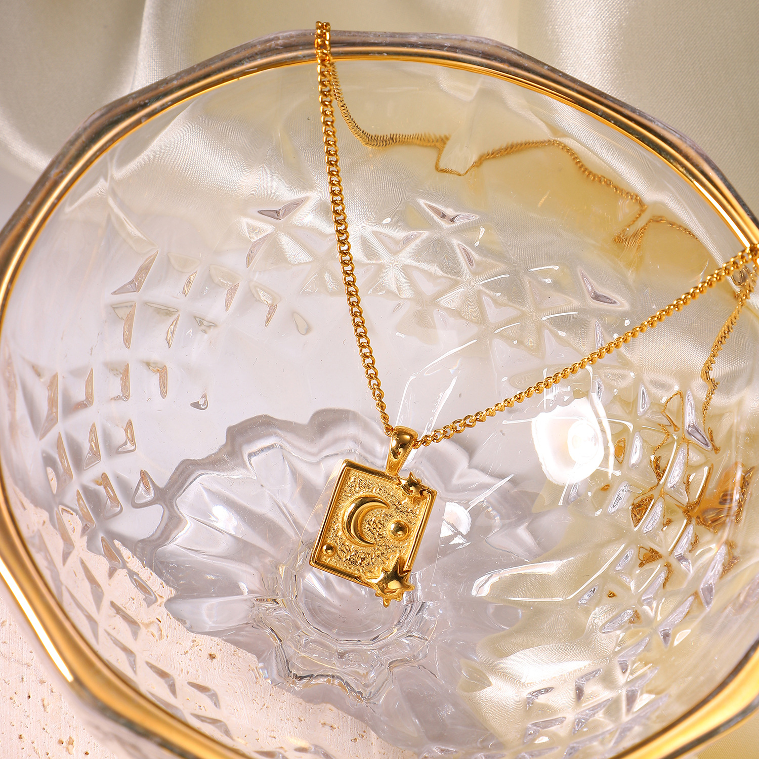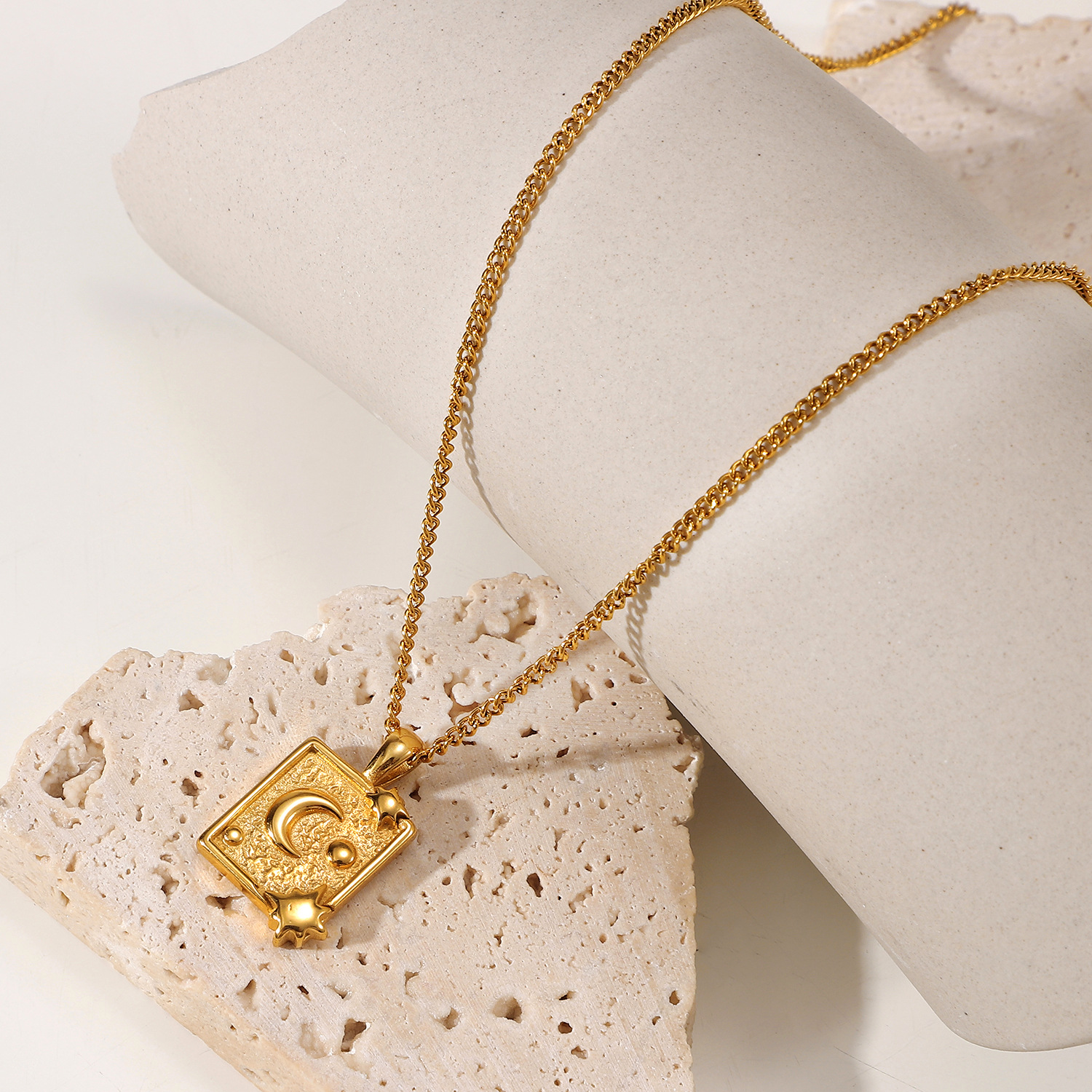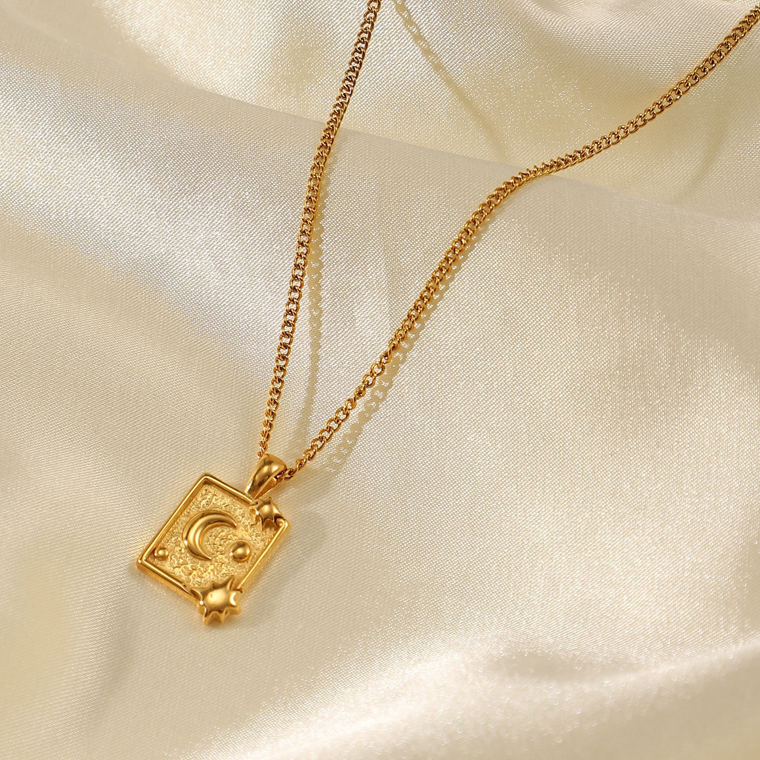 标题:18k镀金不锈钢首饰派对礼物月亮压纹方形吊坠项链女式钛钢项链