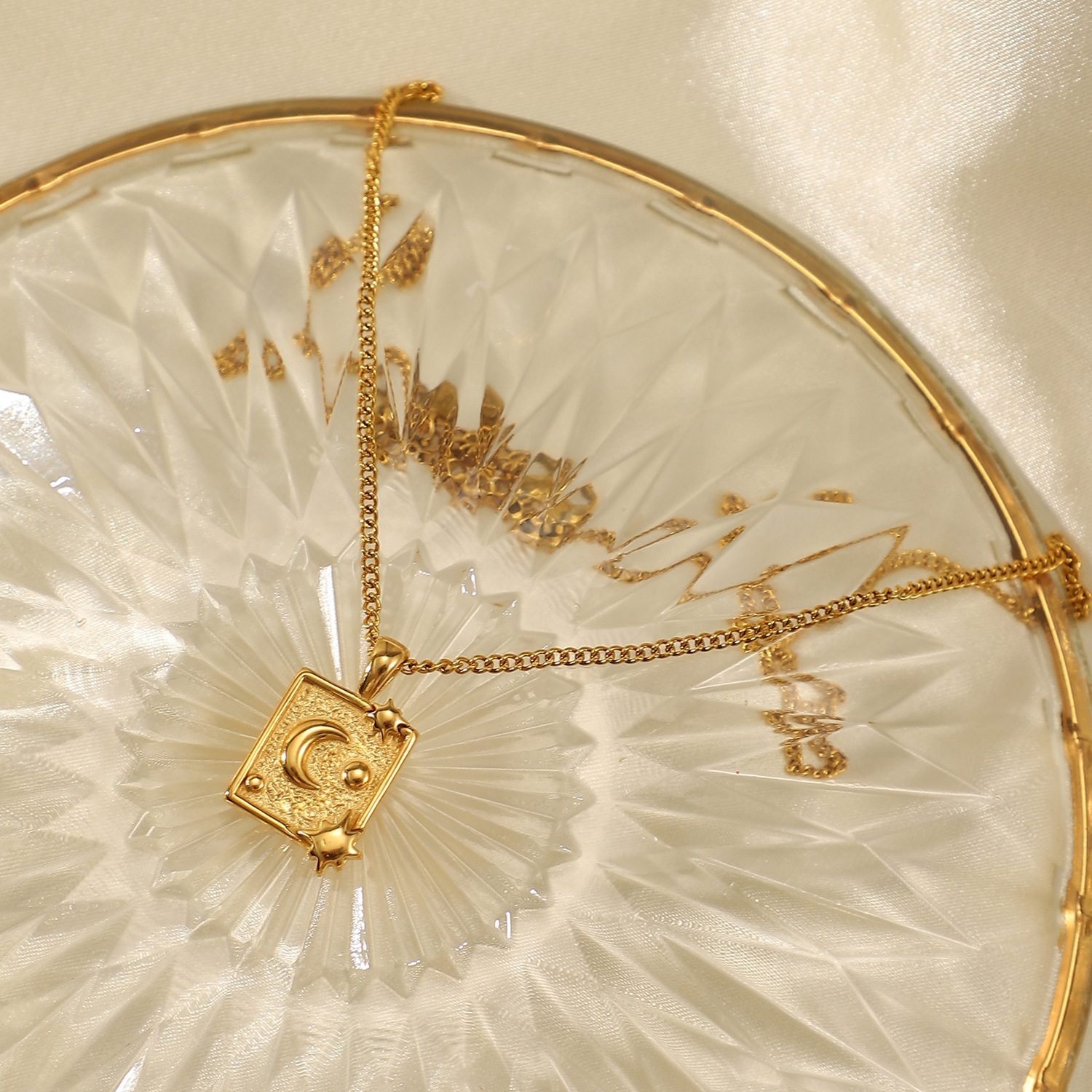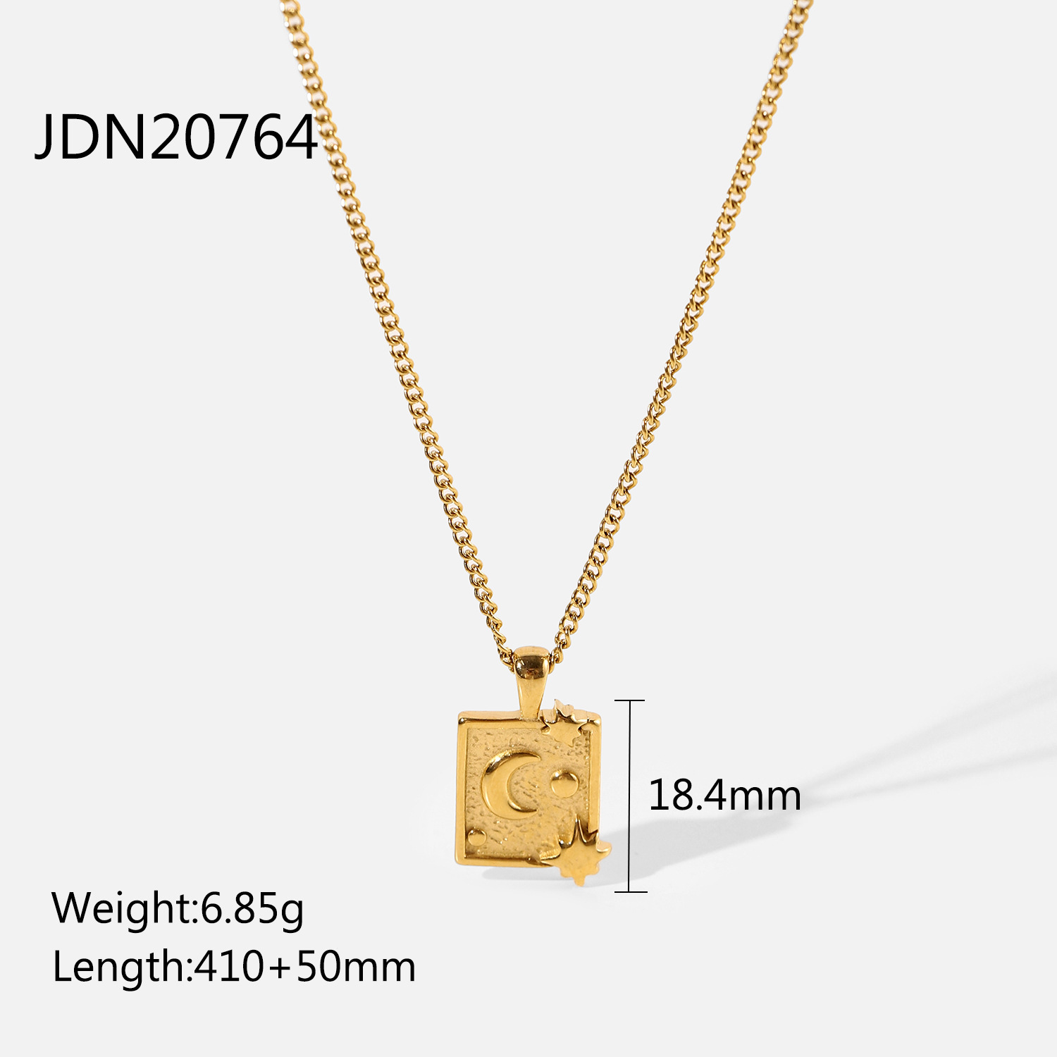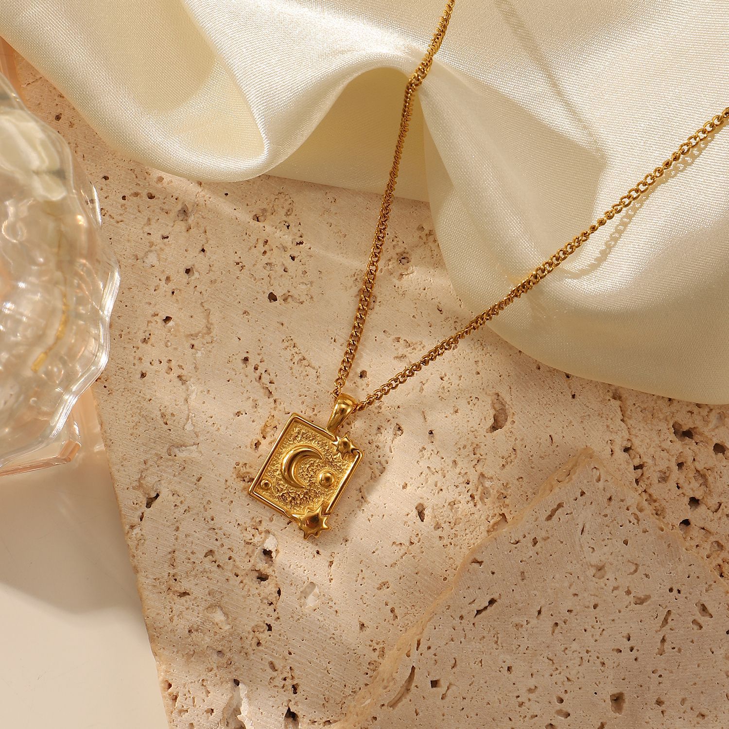 标题:18k镀金不锈钢首饰派对礼物月亮压纹方形吊坠项链女式钛钢项链