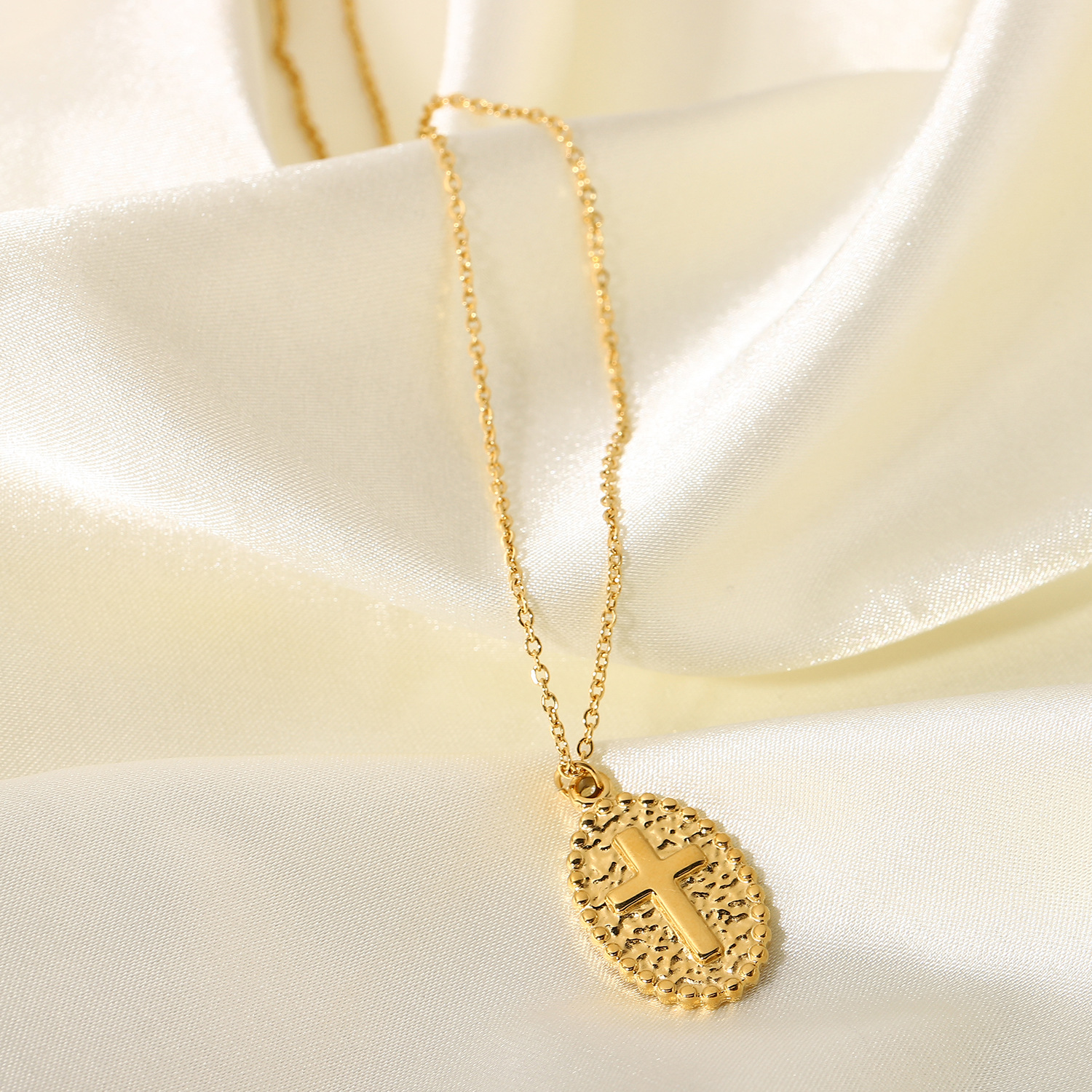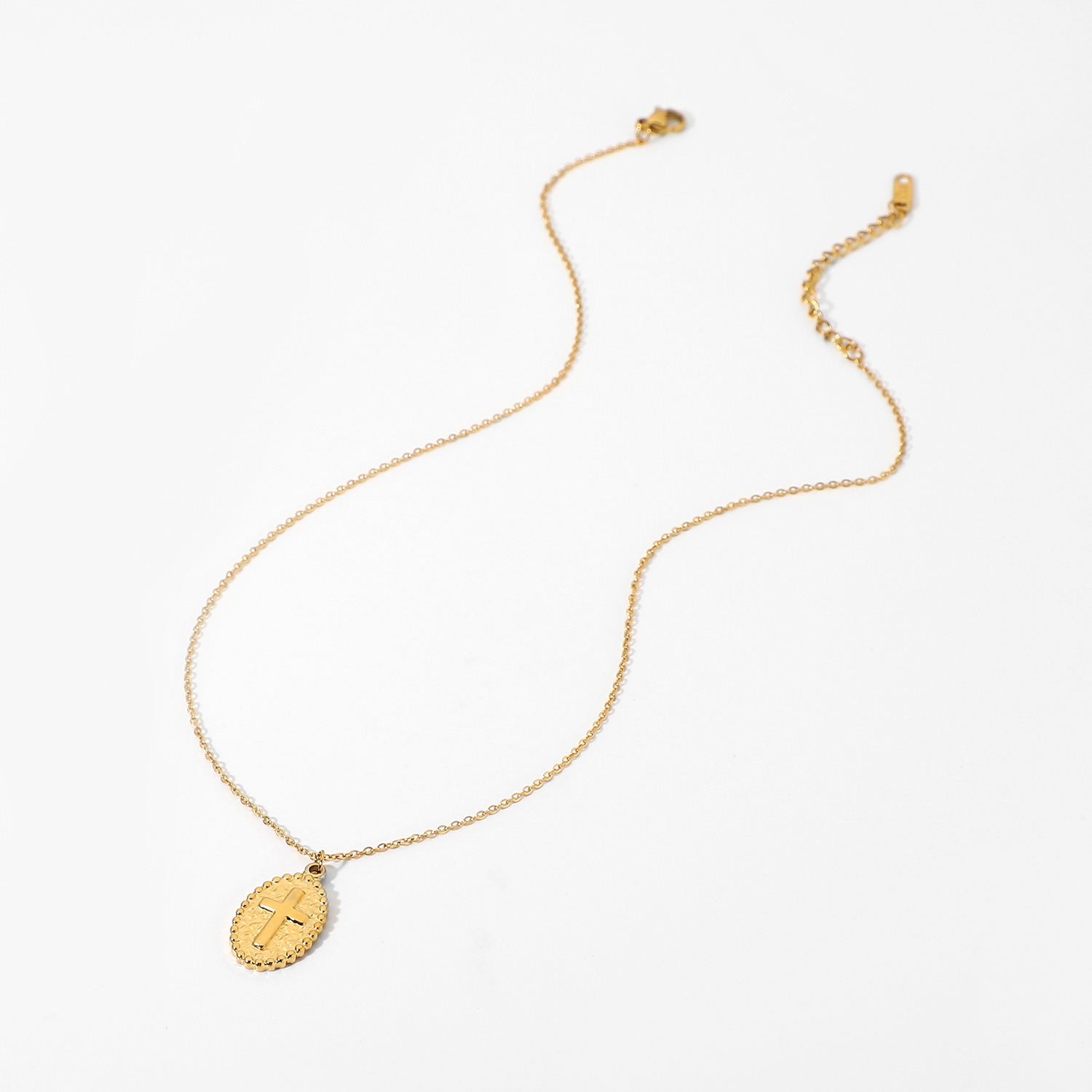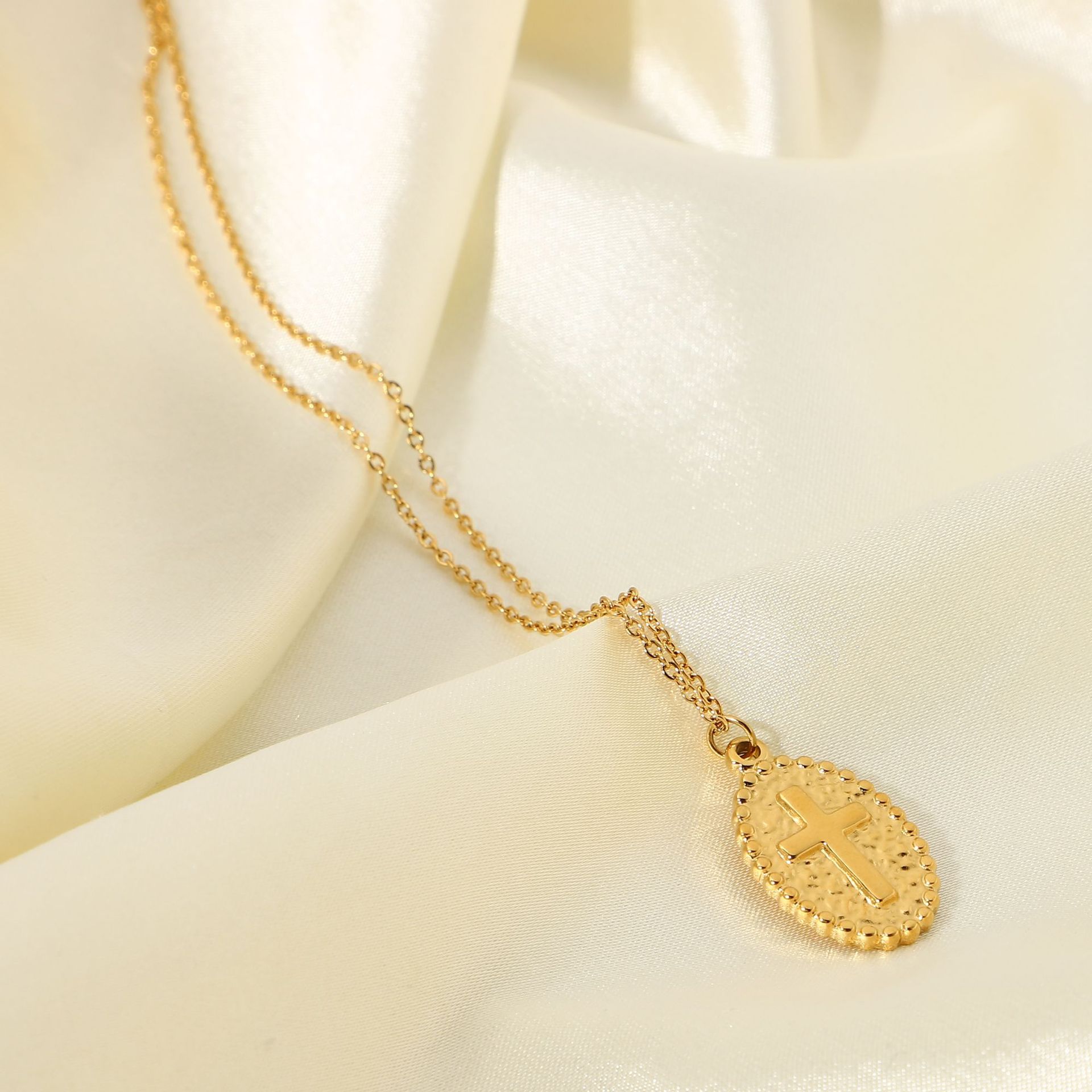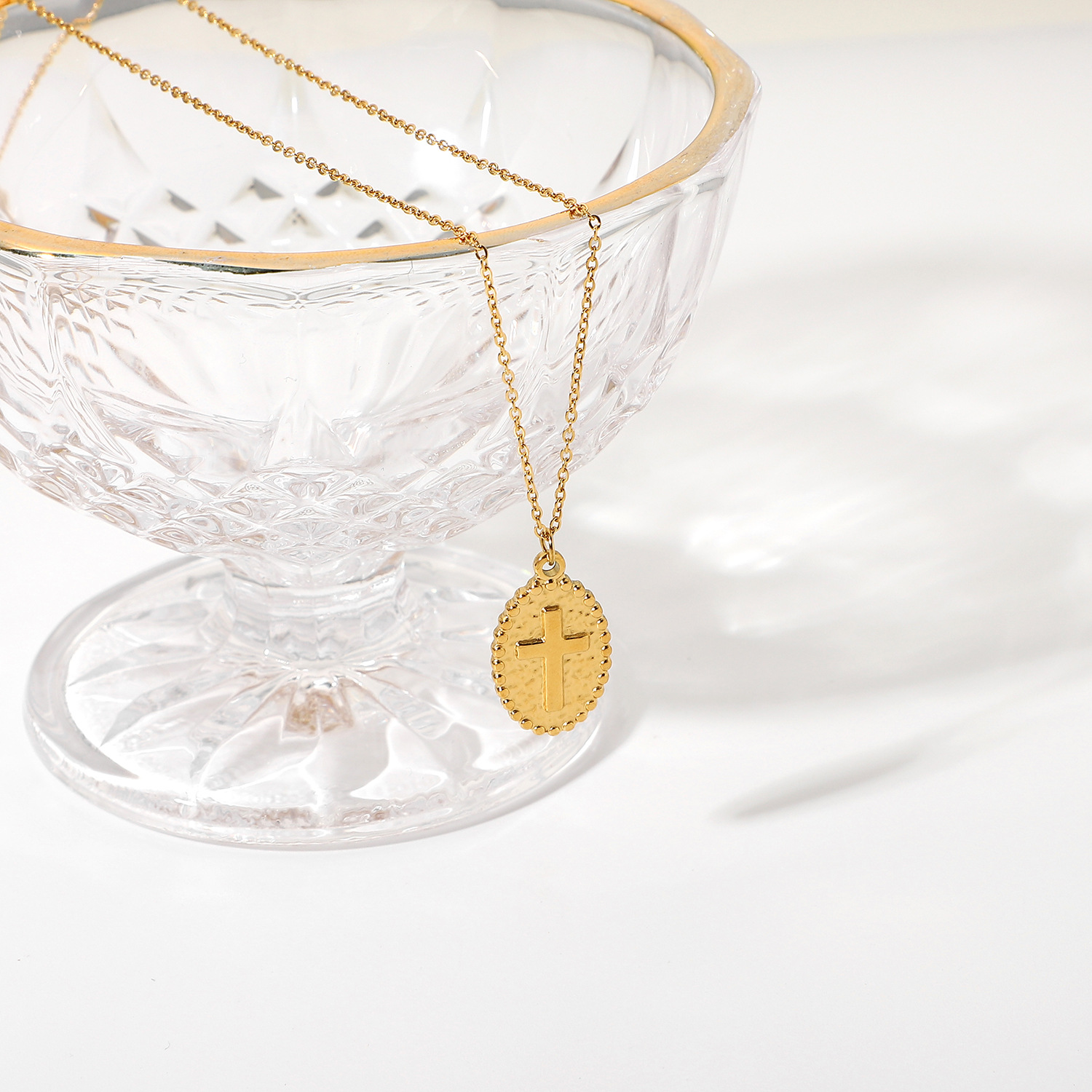 标题:欧美INS网红同款项链14K金色椭圆形十字架吊坠项链钛钢项链饰品女