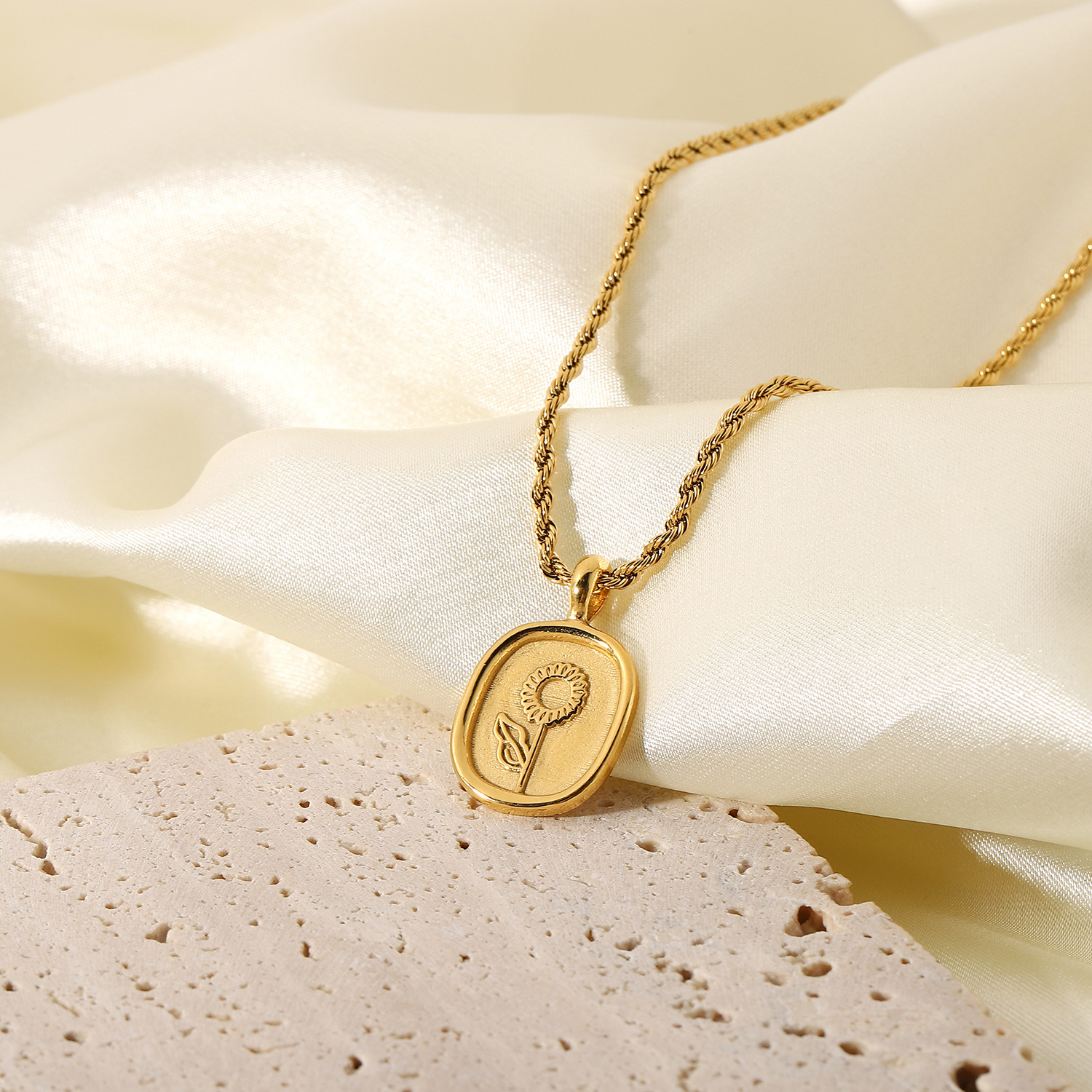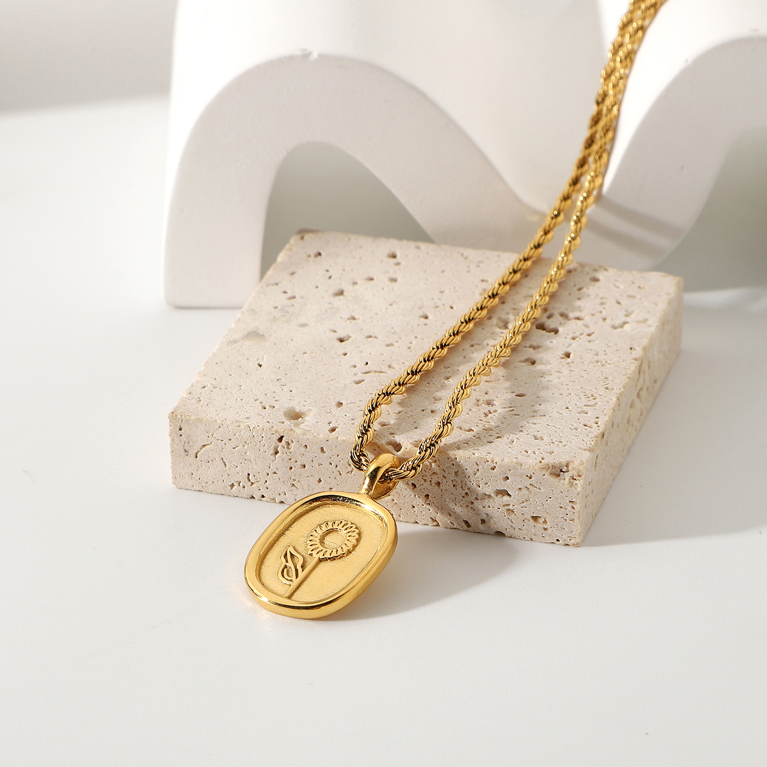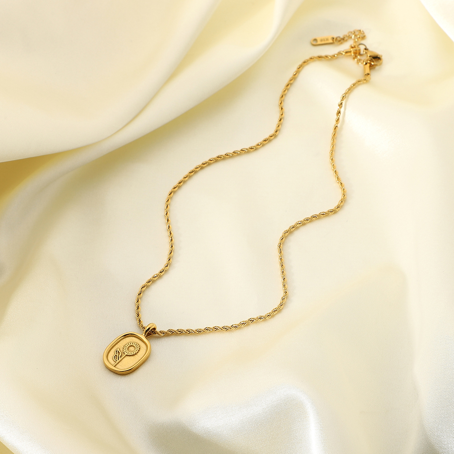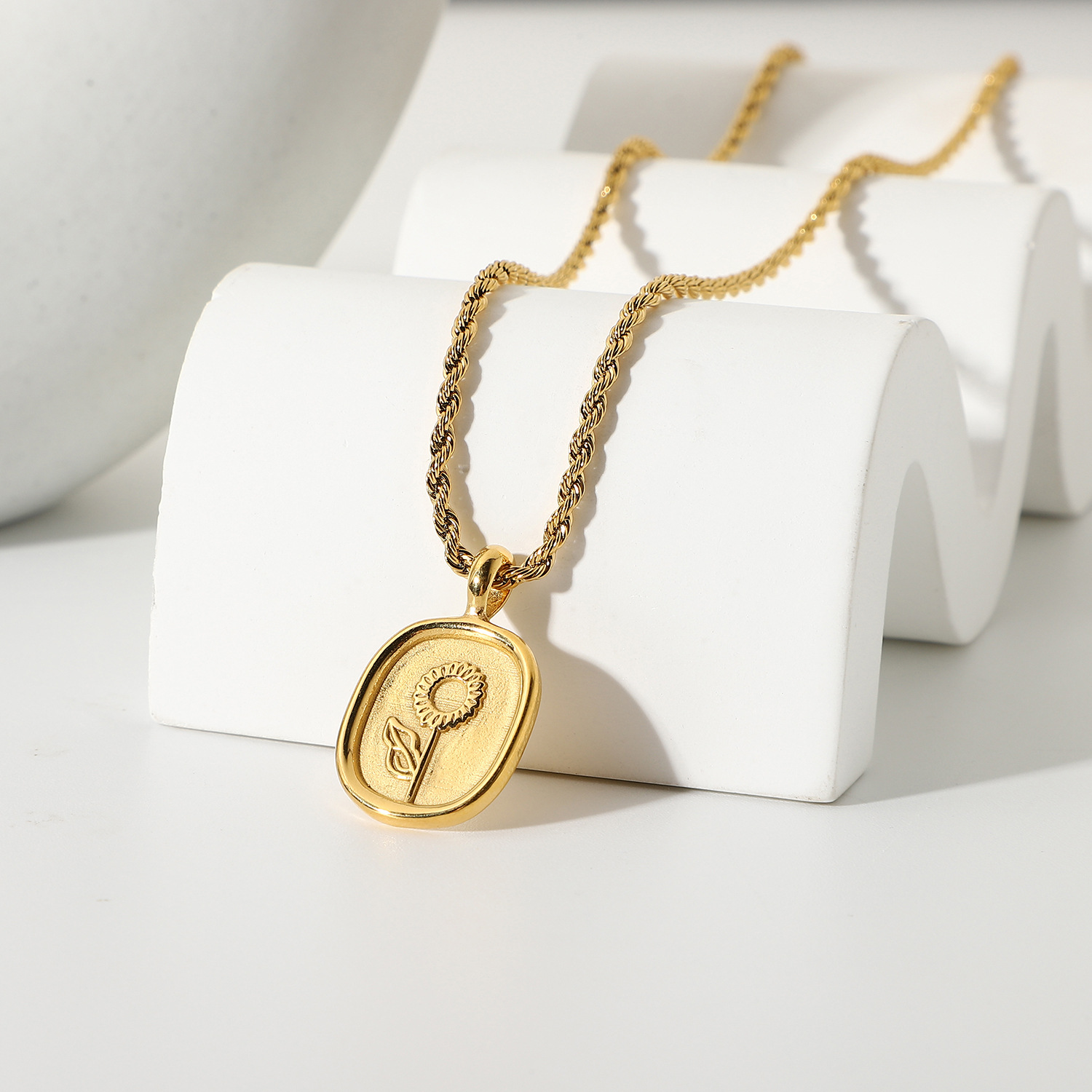 标题:时尚钛钢项链 18K金镀316l不锈钢椭圆形硬币玫瑰吊坠项链嘻哈首饰