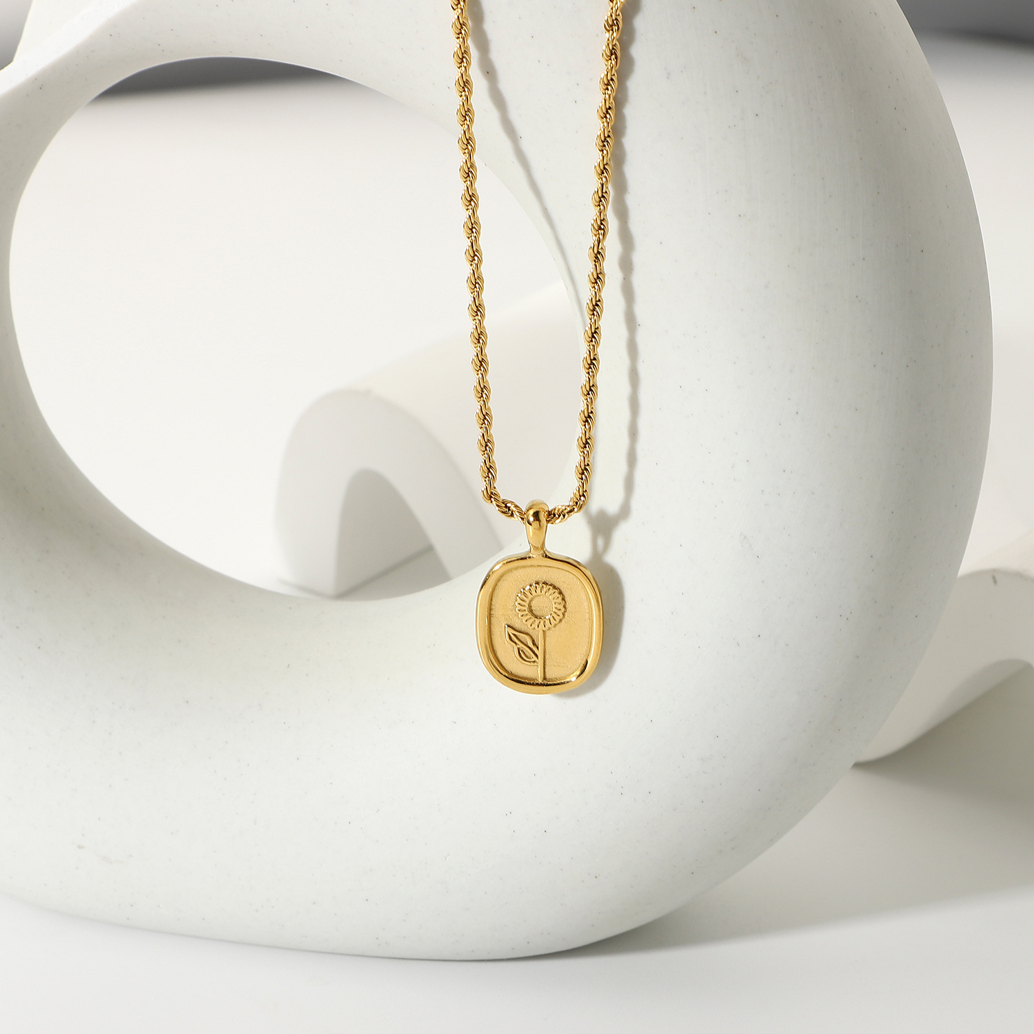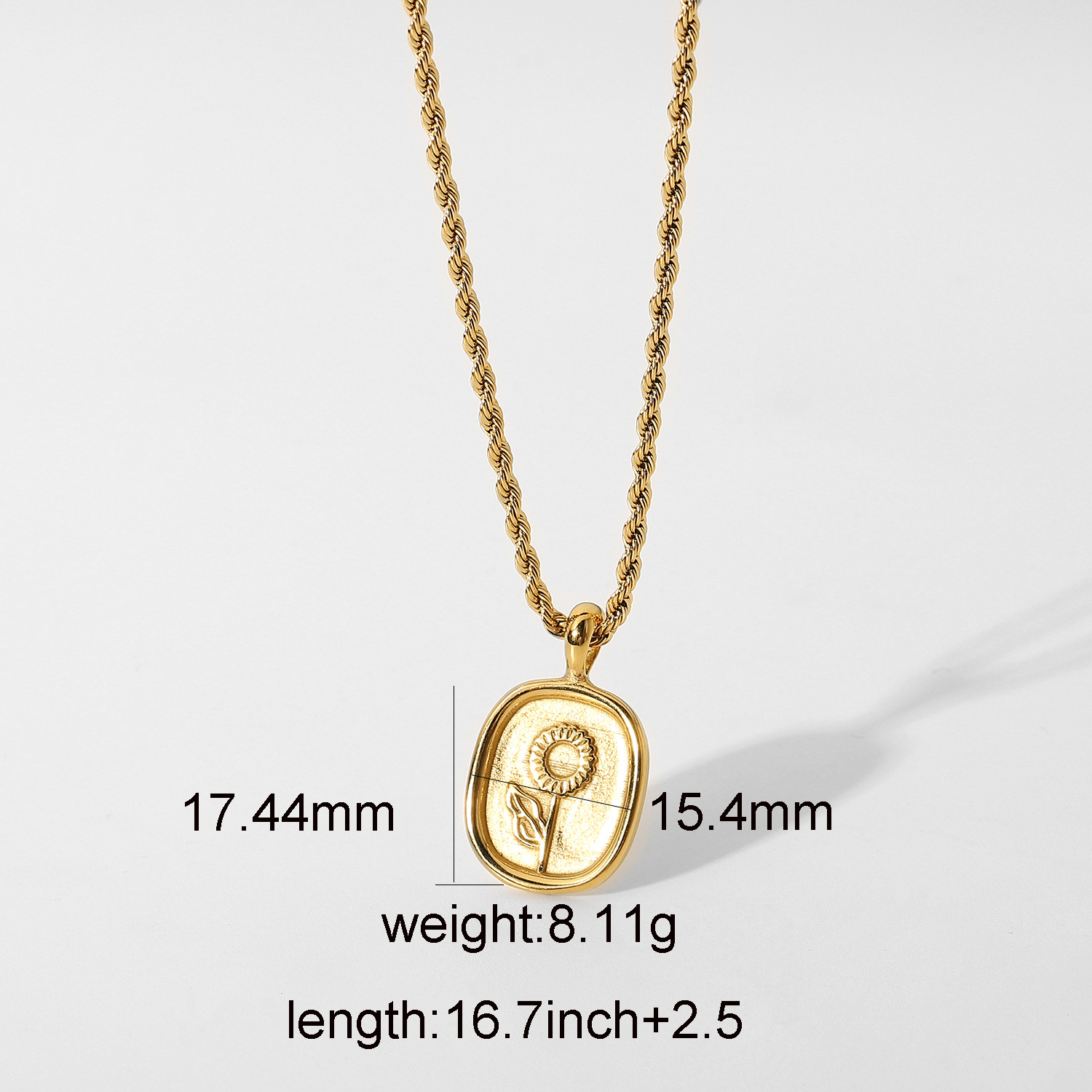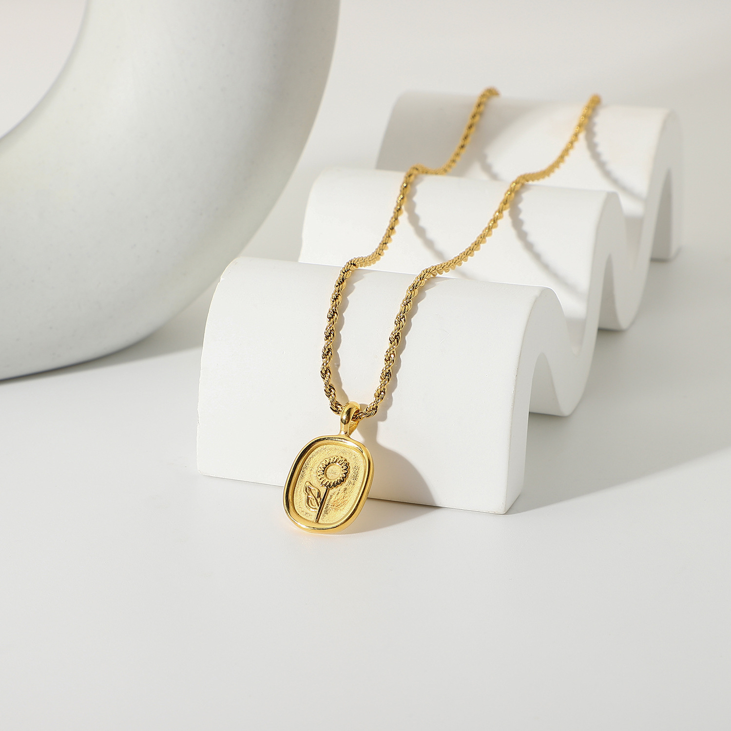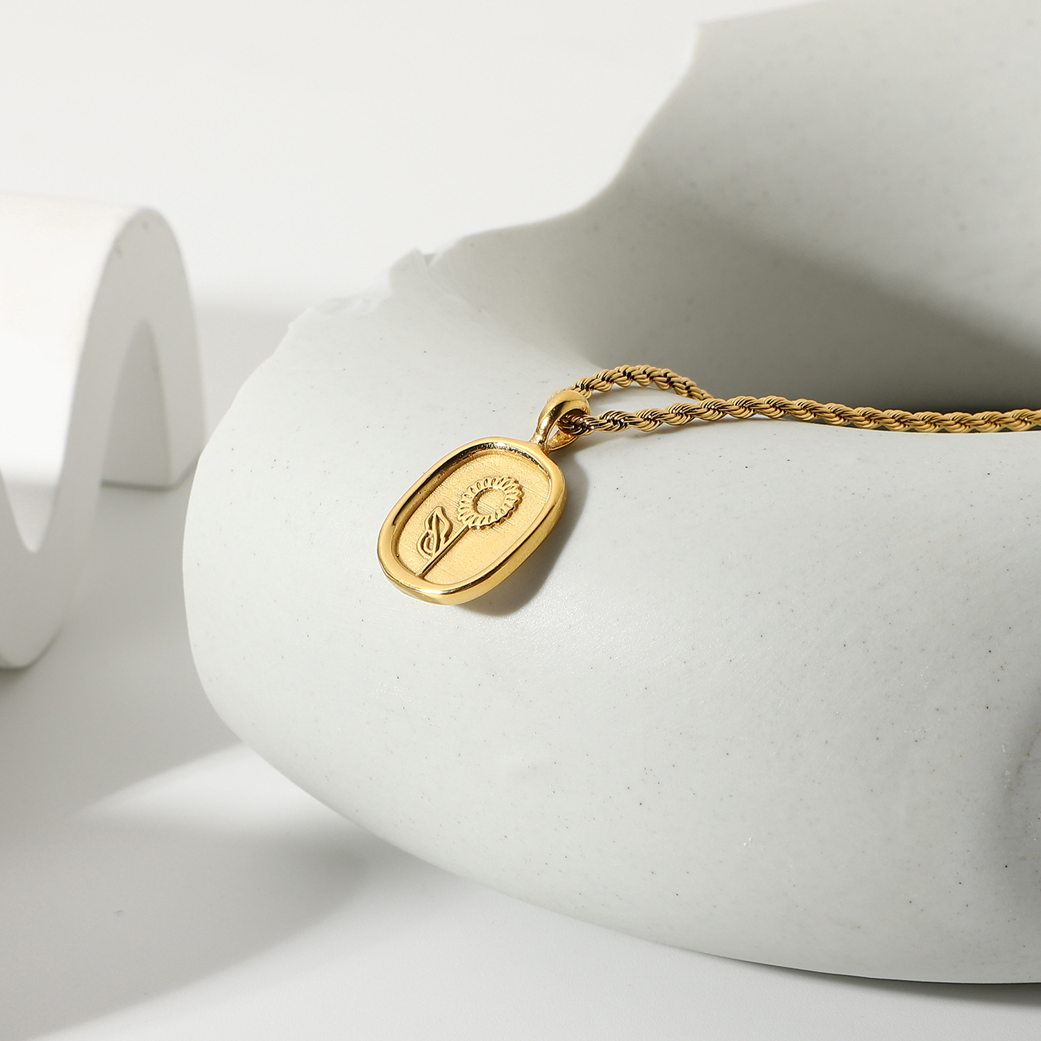 标题:时尚钛钢项链 18K金镀316l不锈钢椭圆形硬币玫瑰吊坠项链嘻哈首饰