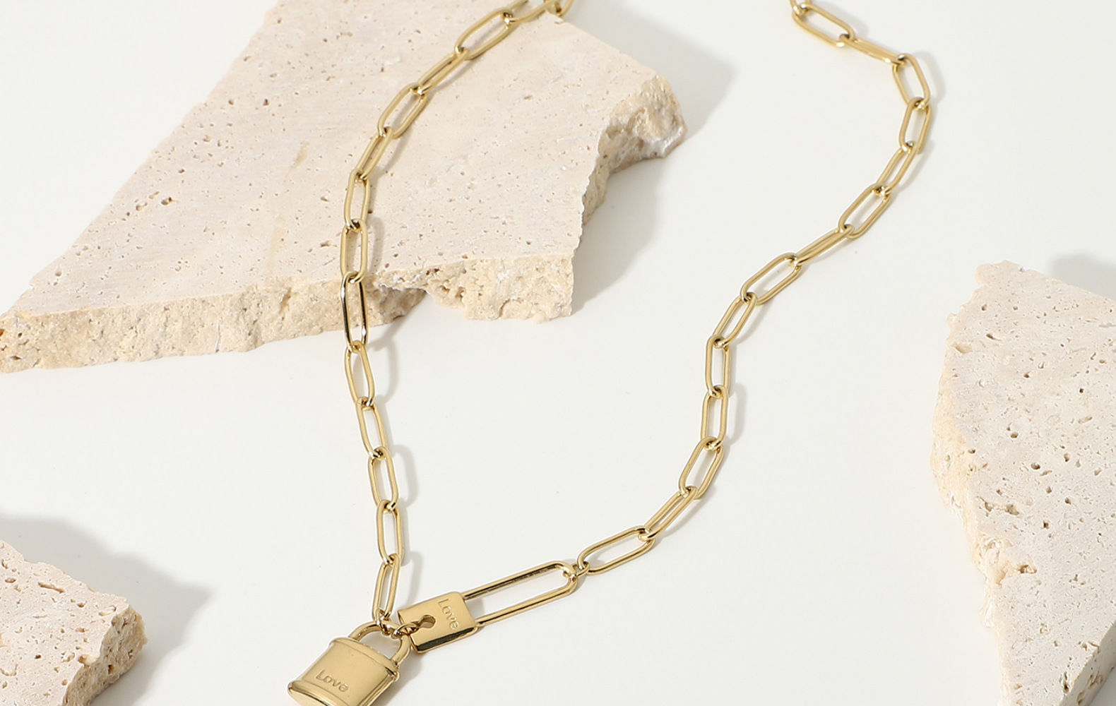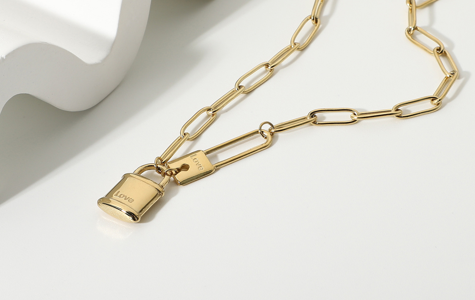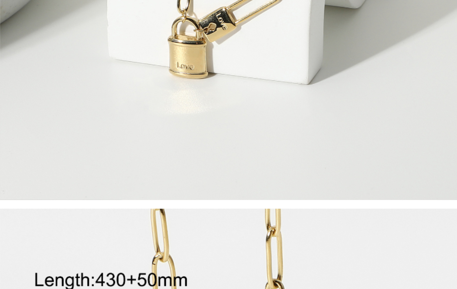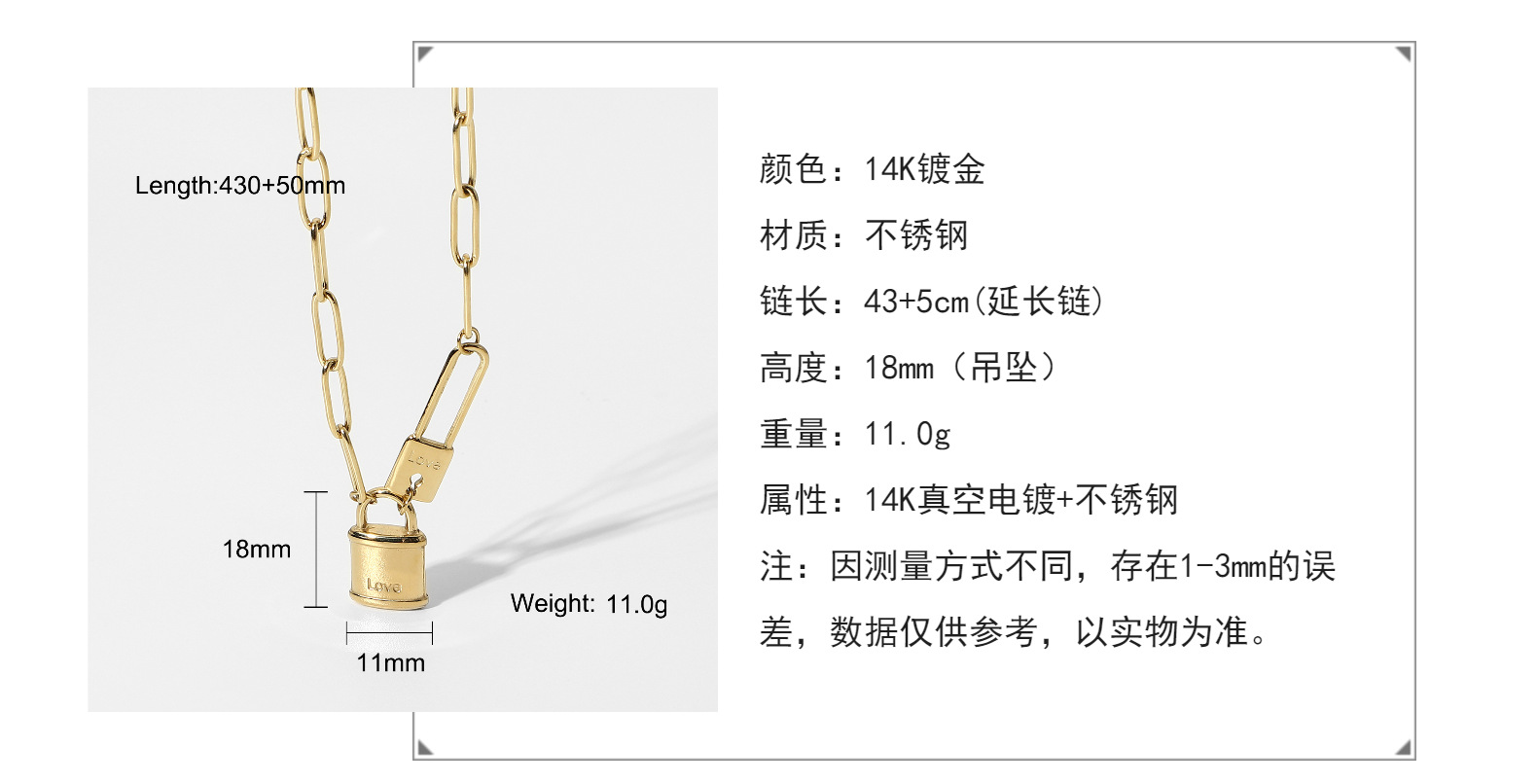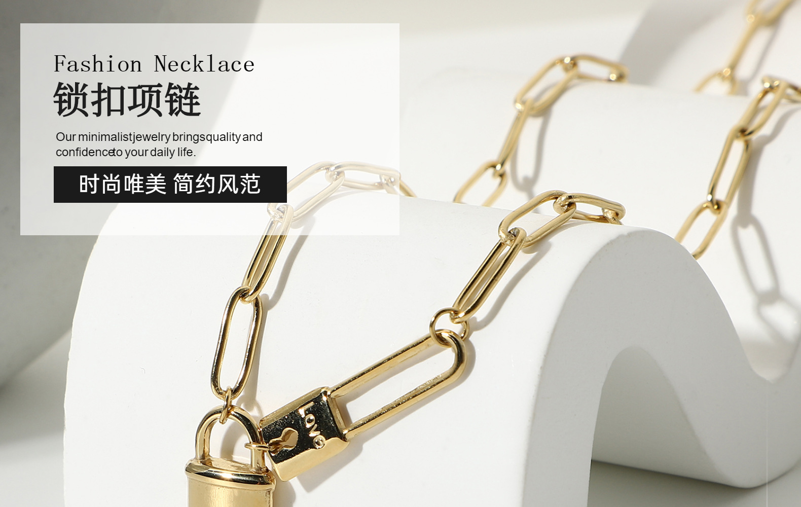 标题:14K金色回形针锁吊坠项链欧美INS同款时尚金属锁情侣同款项链饰品