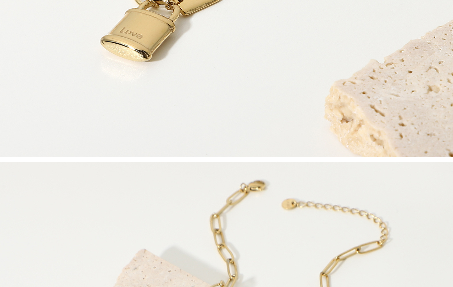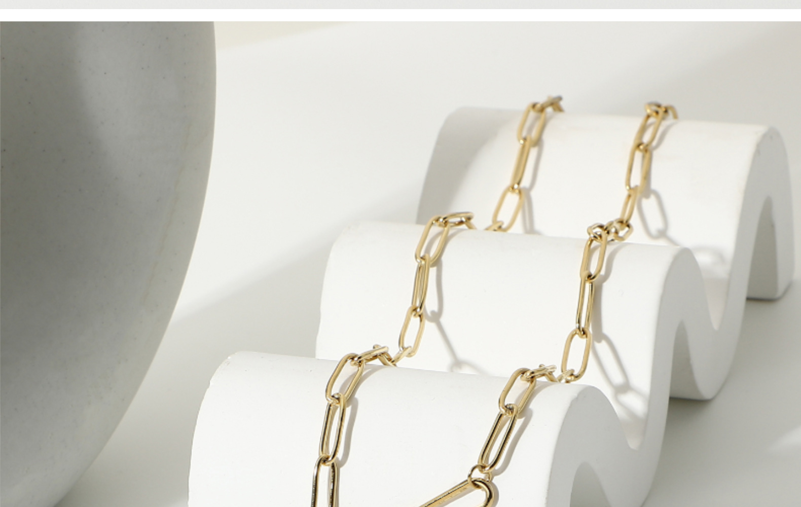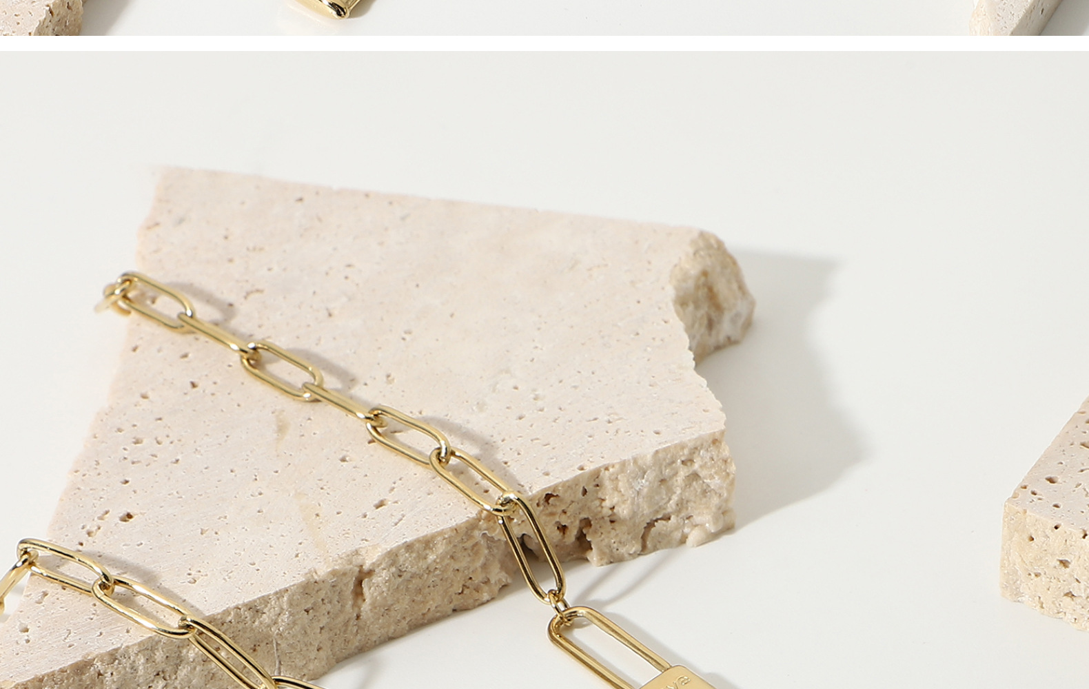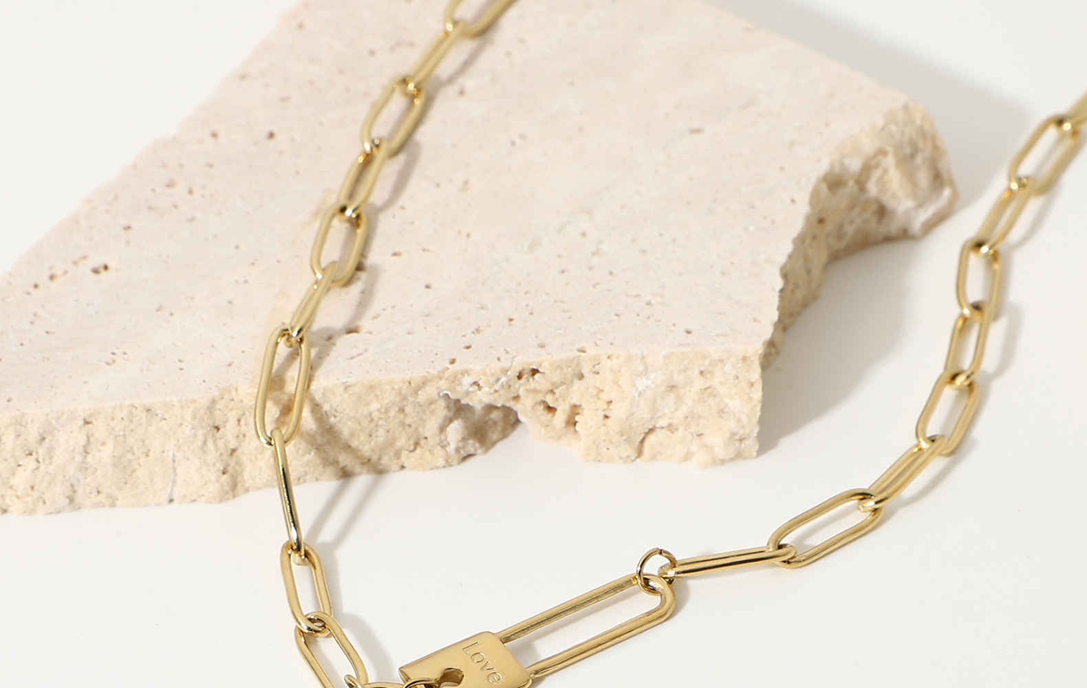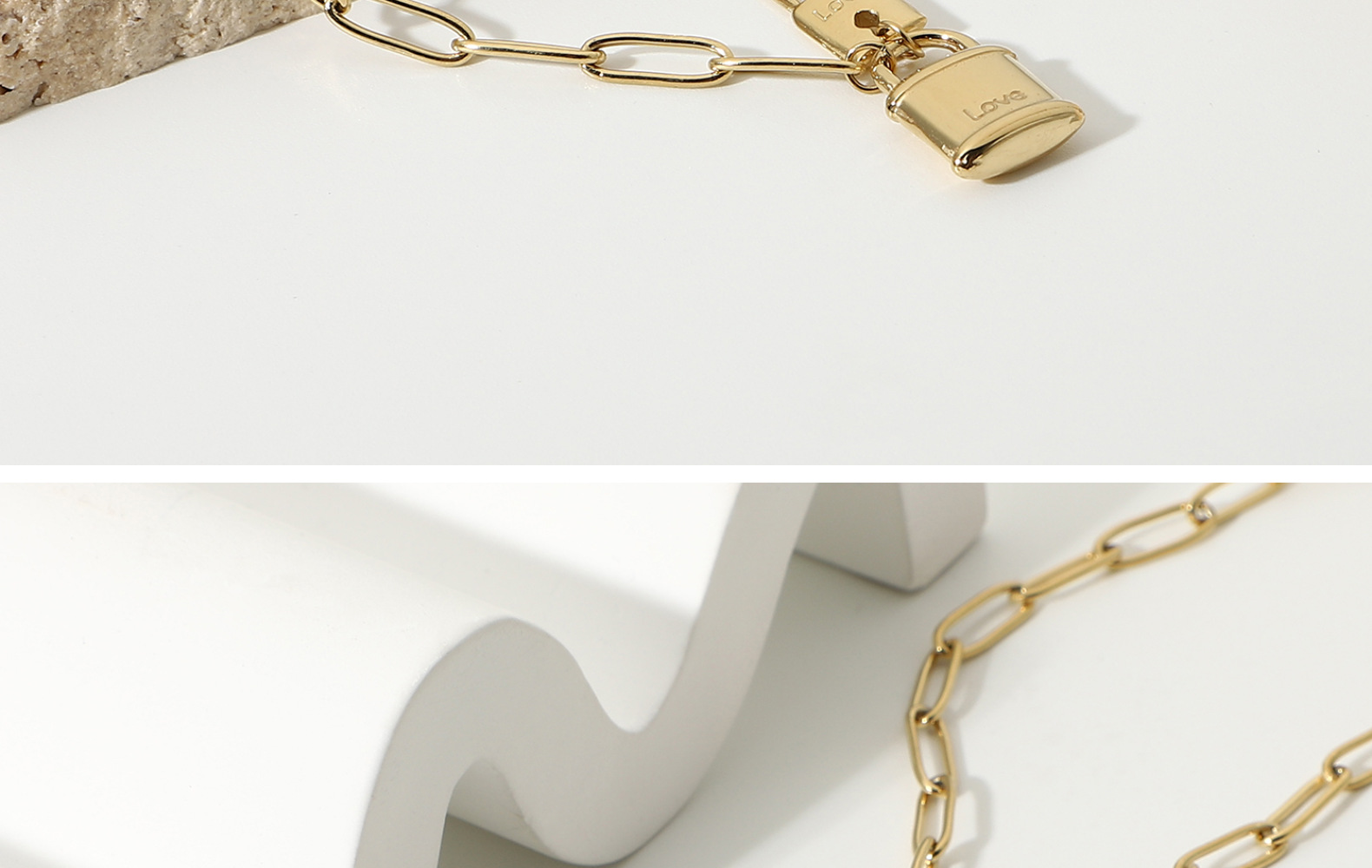 标题:14K金色回形针锁吊坠项链欧美INS同款时尚金属锁情侣同款项链饰品