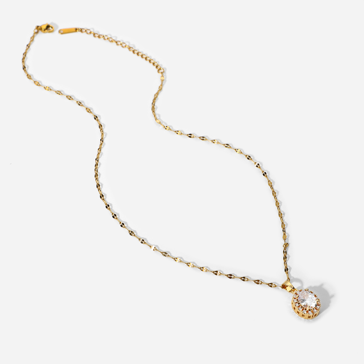 标题:新时尚18k镀金不锈钢首饰 不变色椭圆形白色立方氧化锆吊坠项链女