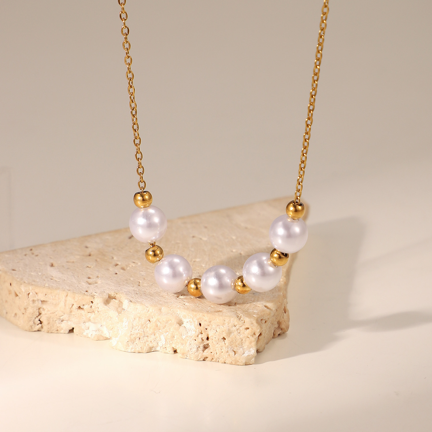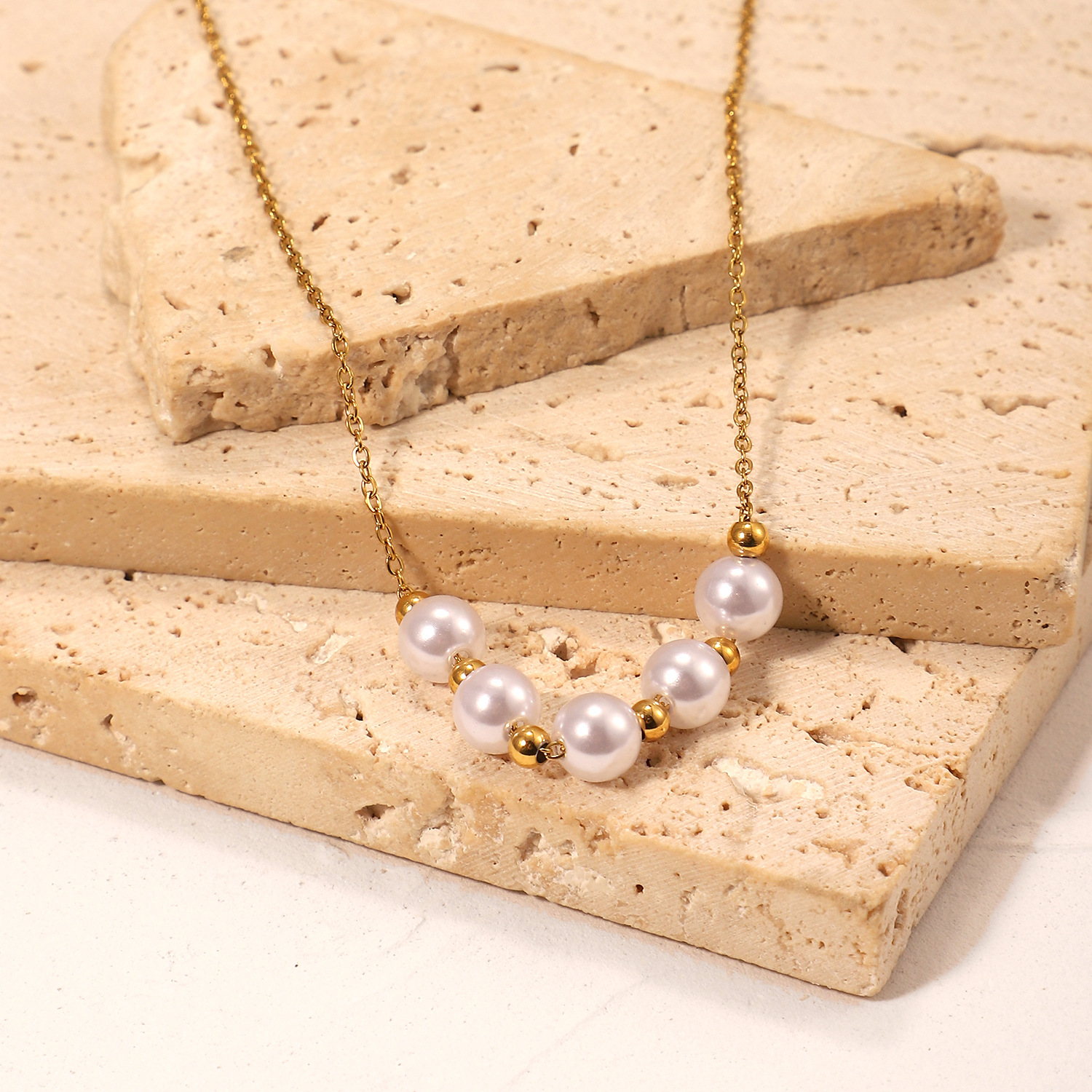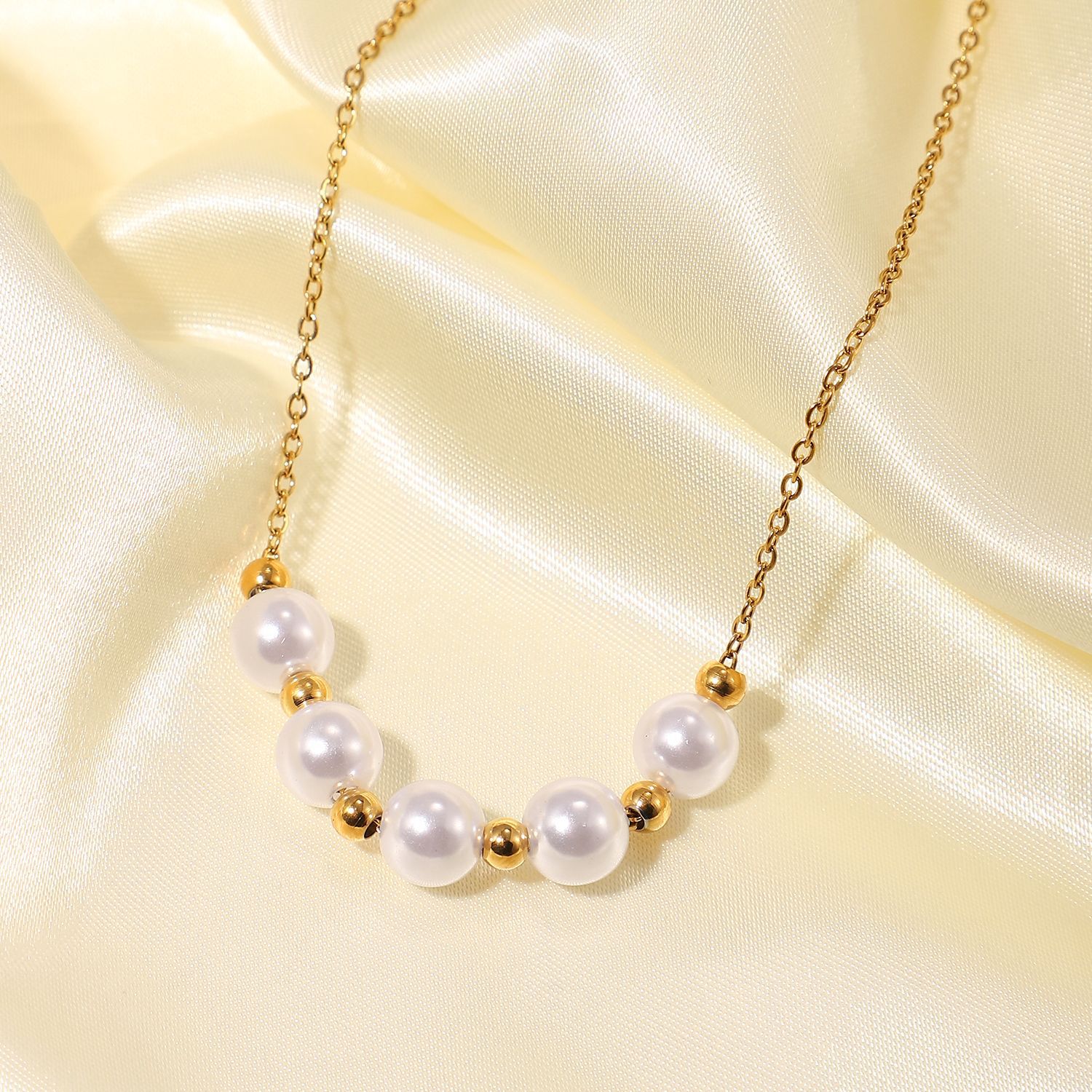 标题:欧美独立包装INS风网红同款项链18K金不锈钢五颗珍珠小金珠项链女