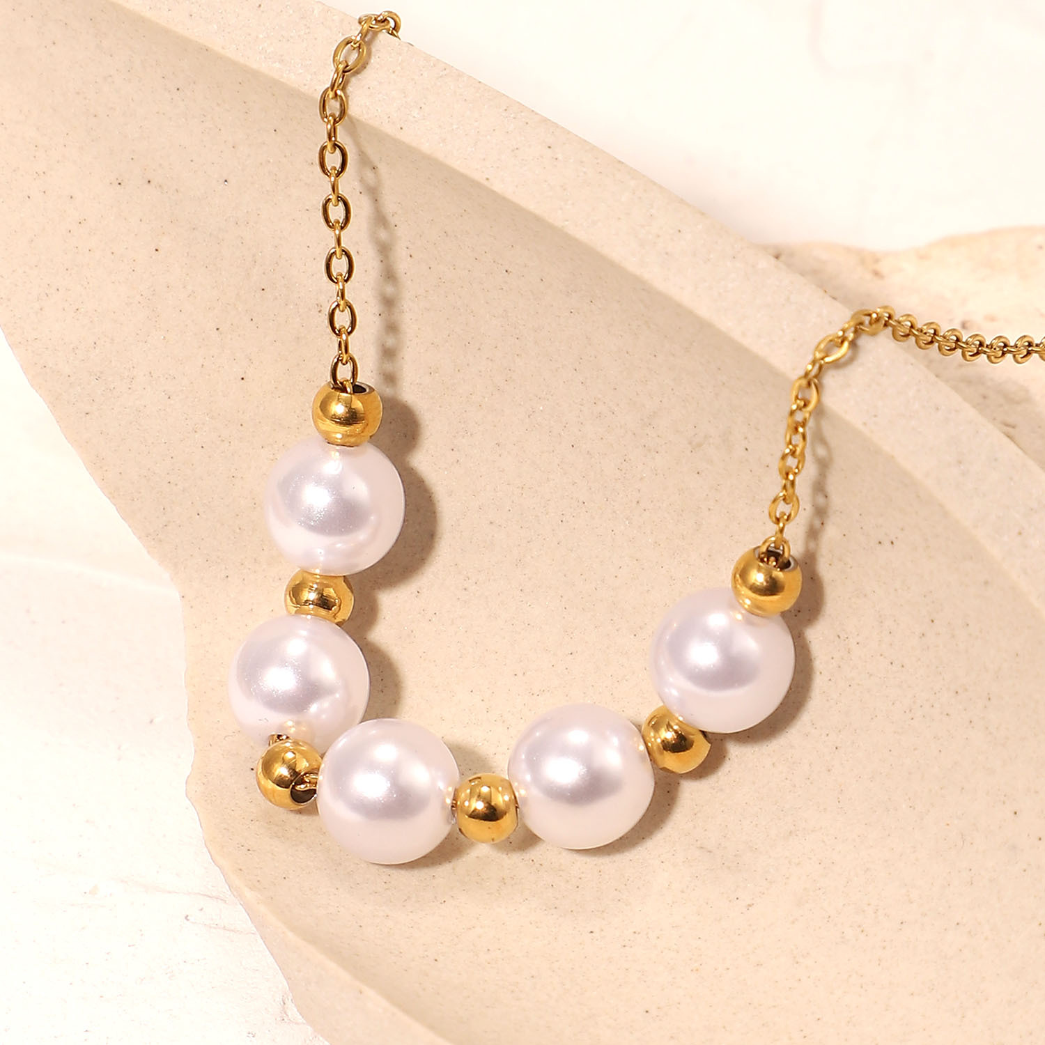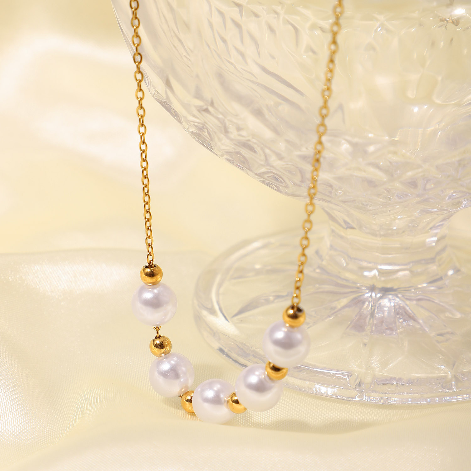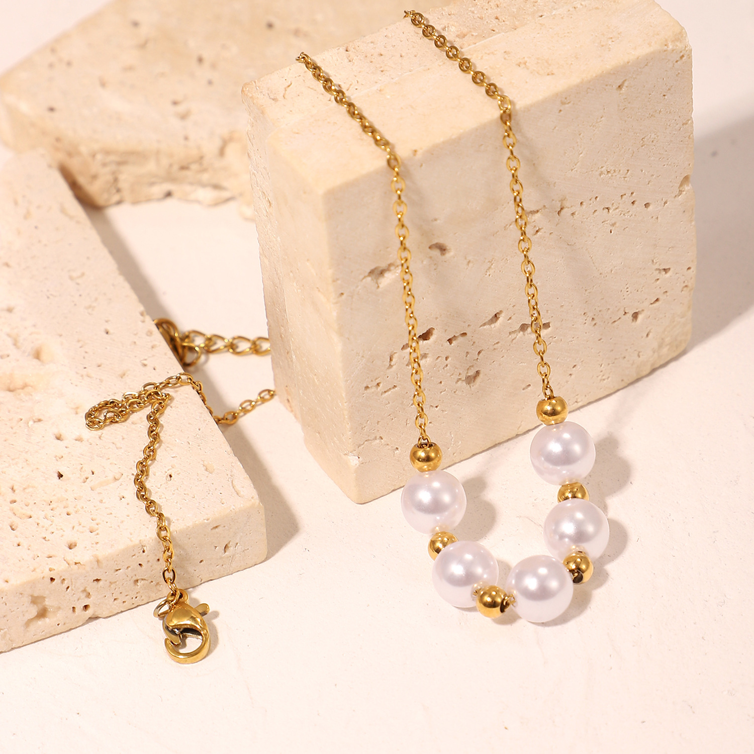 标题:欧美独立包装INS风网红同款项链18K金不锈钢五颗珍珠小金珠项链女