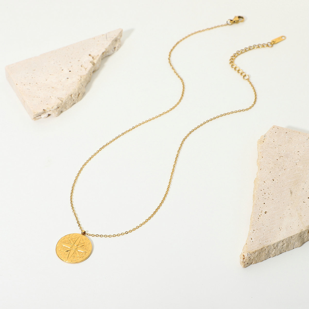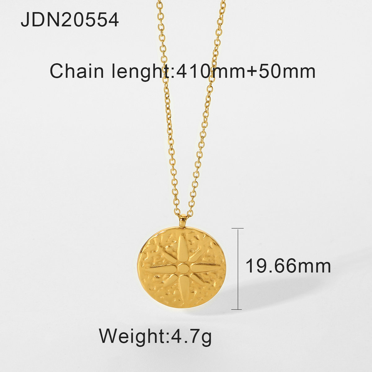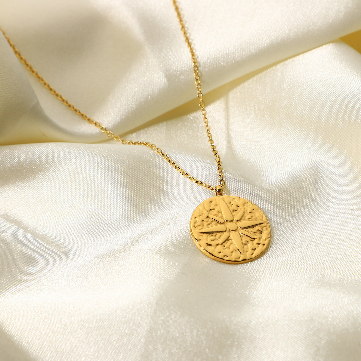 标题:欧美ins网红时尚同款项链18K镀金不锈钢八芒星圆牌锤纹吊坠项链女