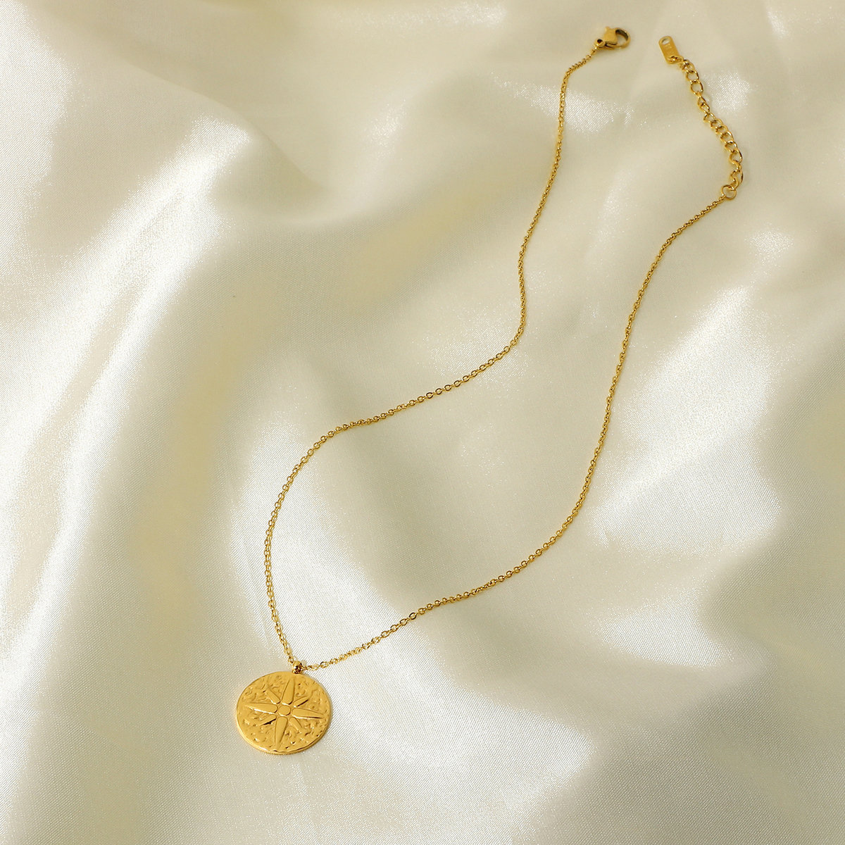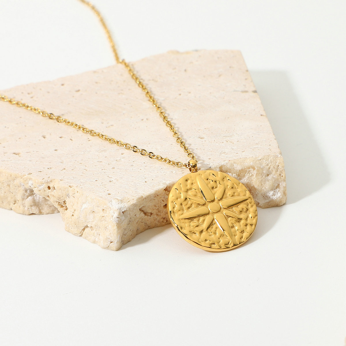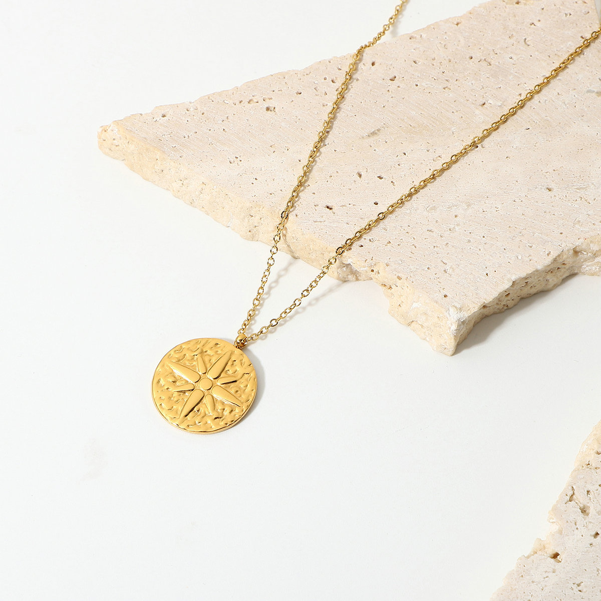 标题:欧美ins网红时尚同款项链18K镀金不锈钢八芒星圆牌锤纹吊坠项链女
