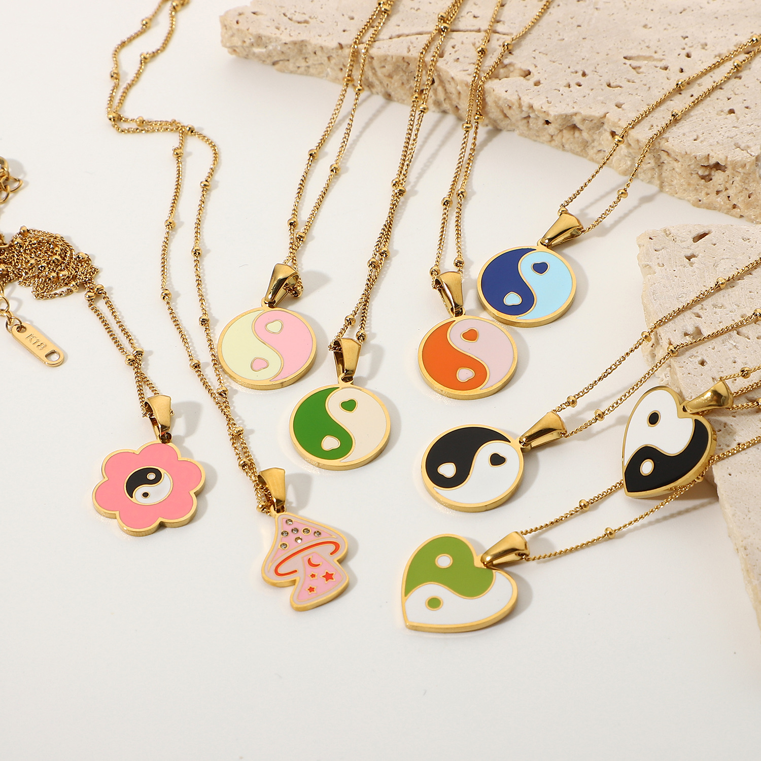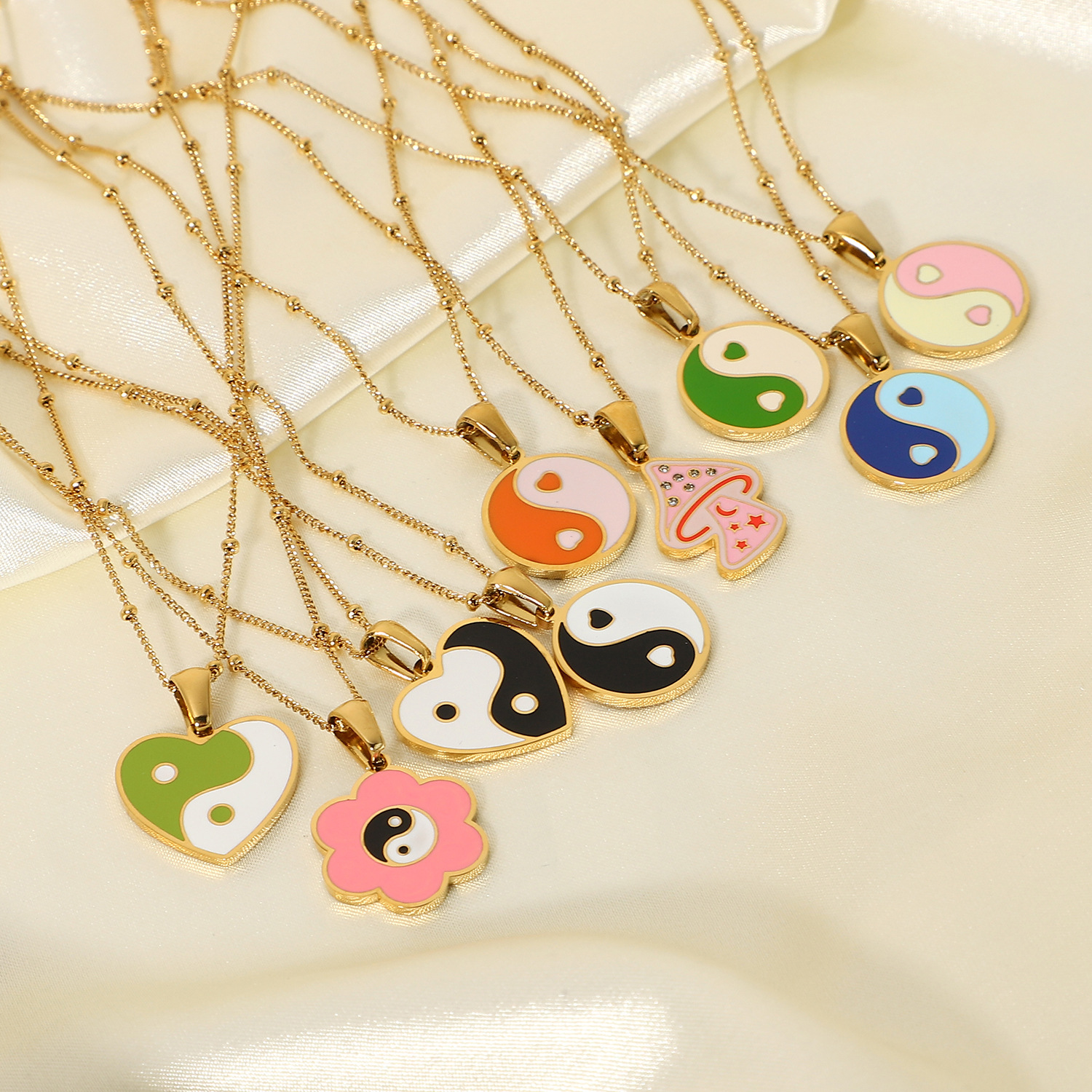 标题:欧美INS网红新款项链 镀金彩色滴油不锈钢金属吊坠项链流行饰品女