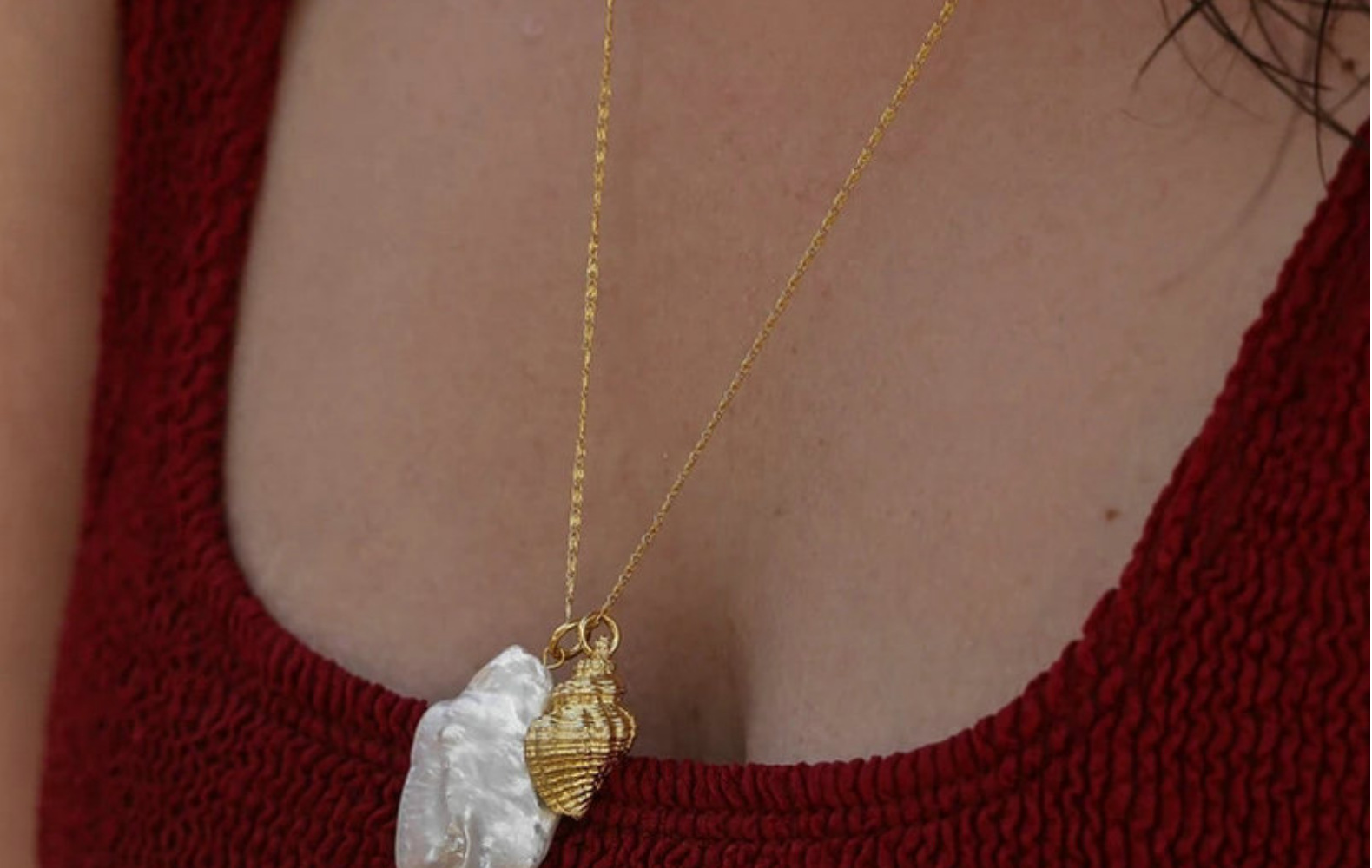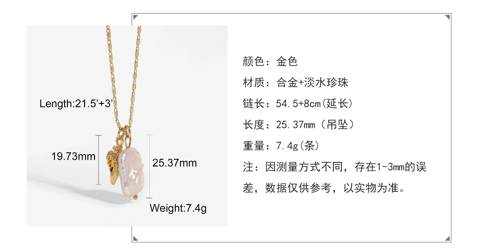 标题:欧美跨境饰品ins流行金属项链巴洛克天然淡水珍珠海螺吊坠项链女