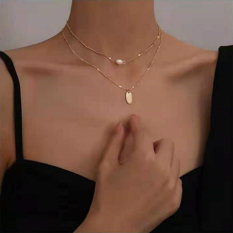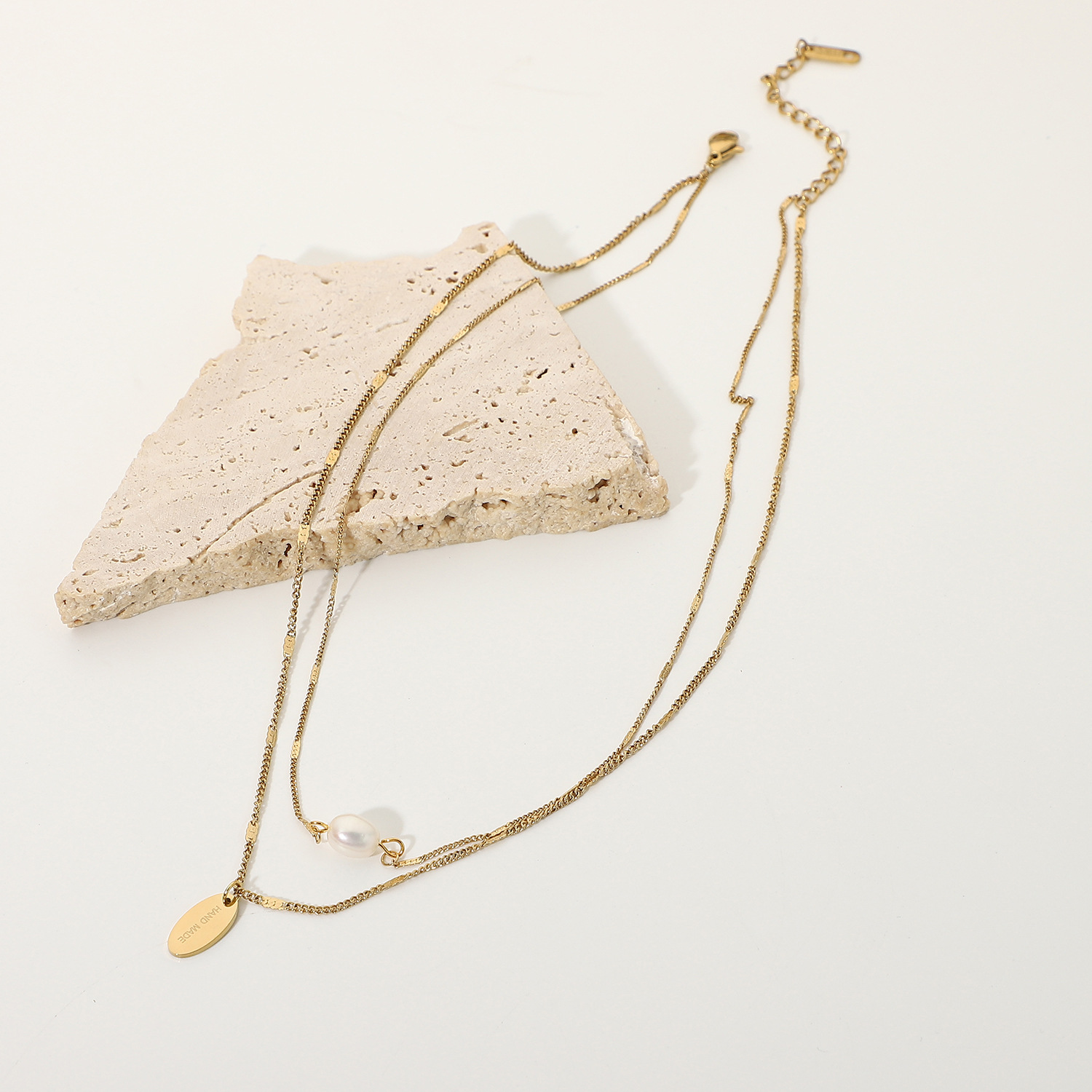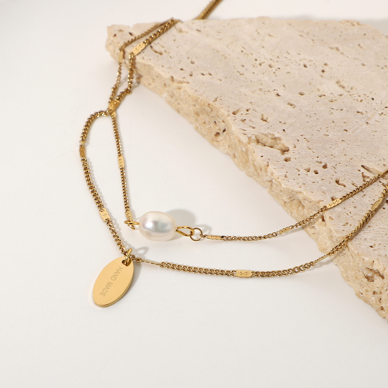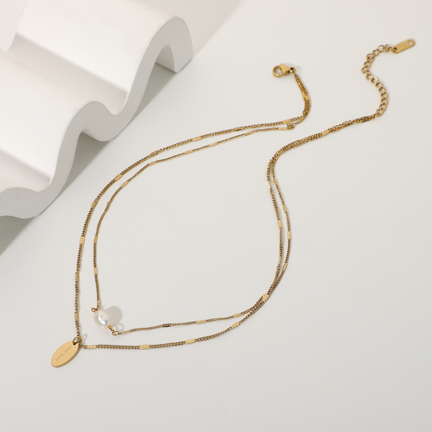 标题:欧美INS网红款时尚双层项链14K镀金天然淡水珍珠吊坠项链饰品女式