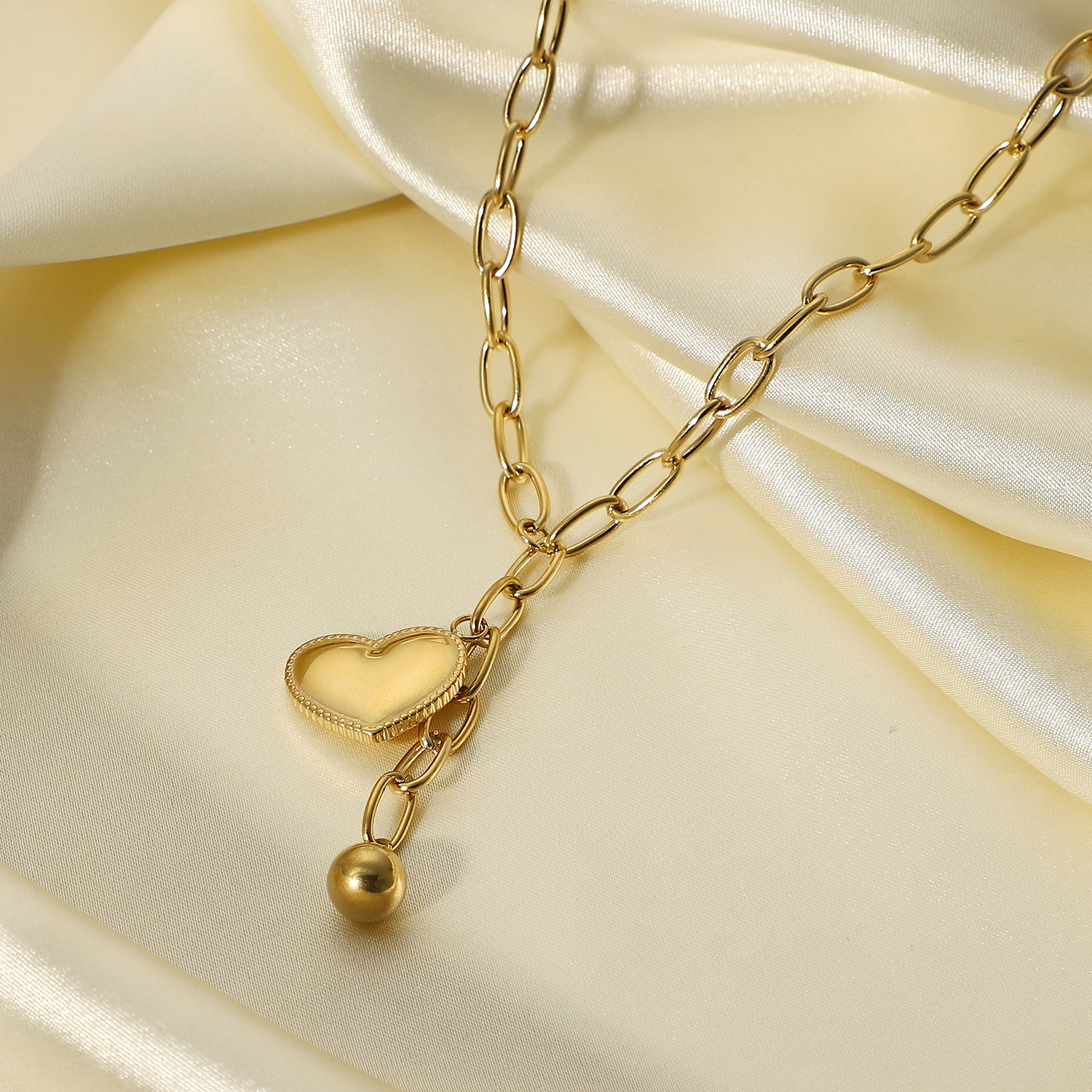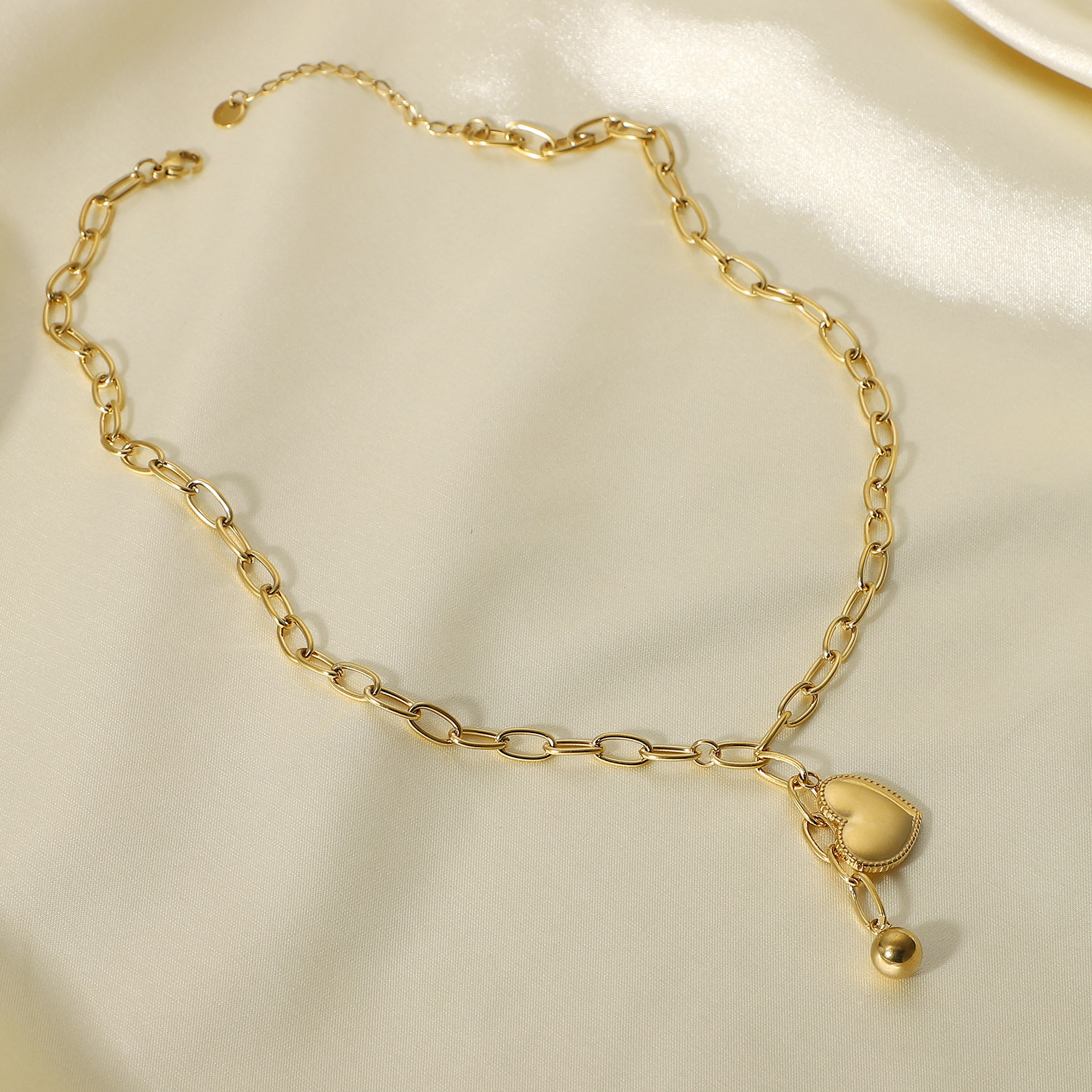 标题:欧美INS新款14K镀金不锈钢回形针链项链 Y字形椭圆爱心吊坠项链女