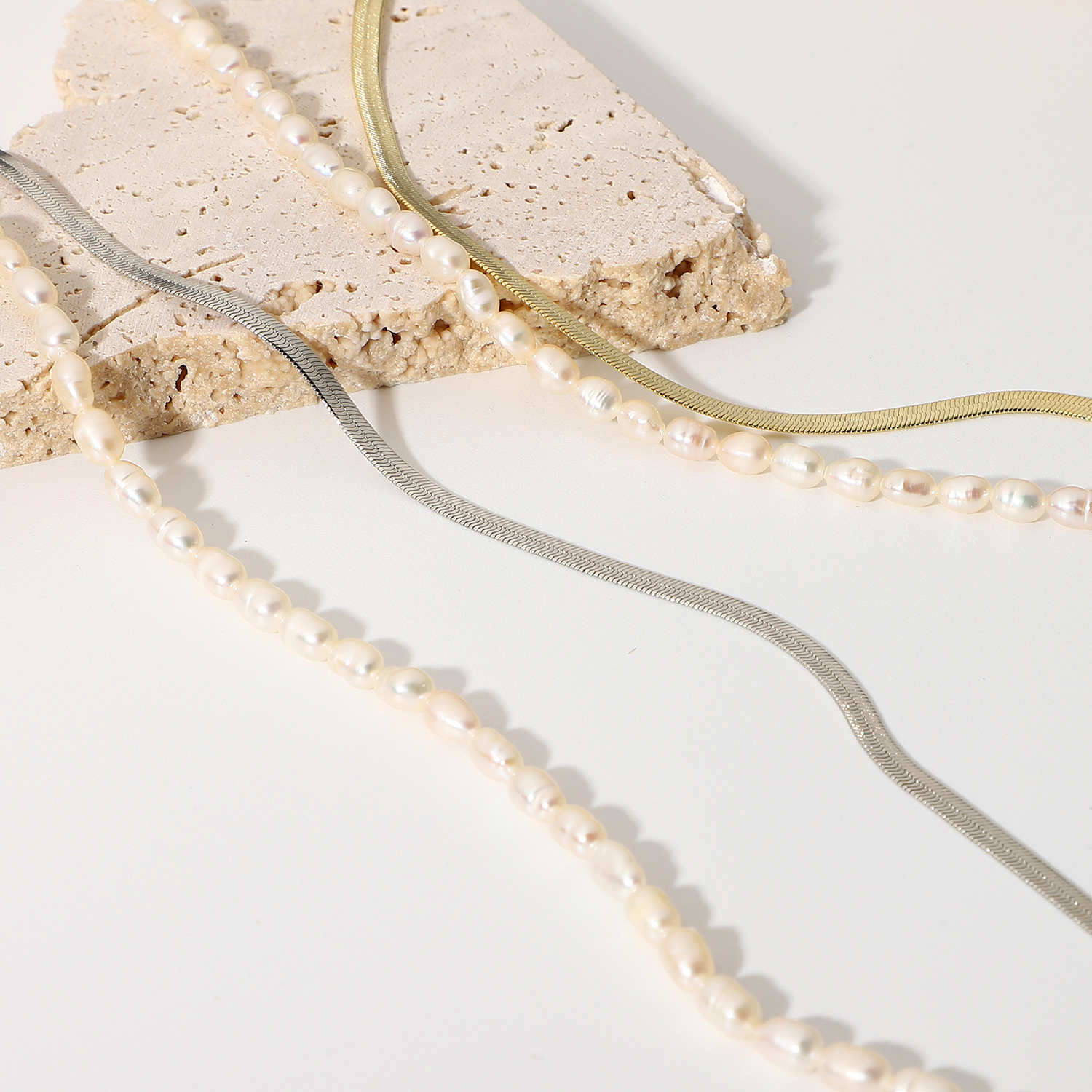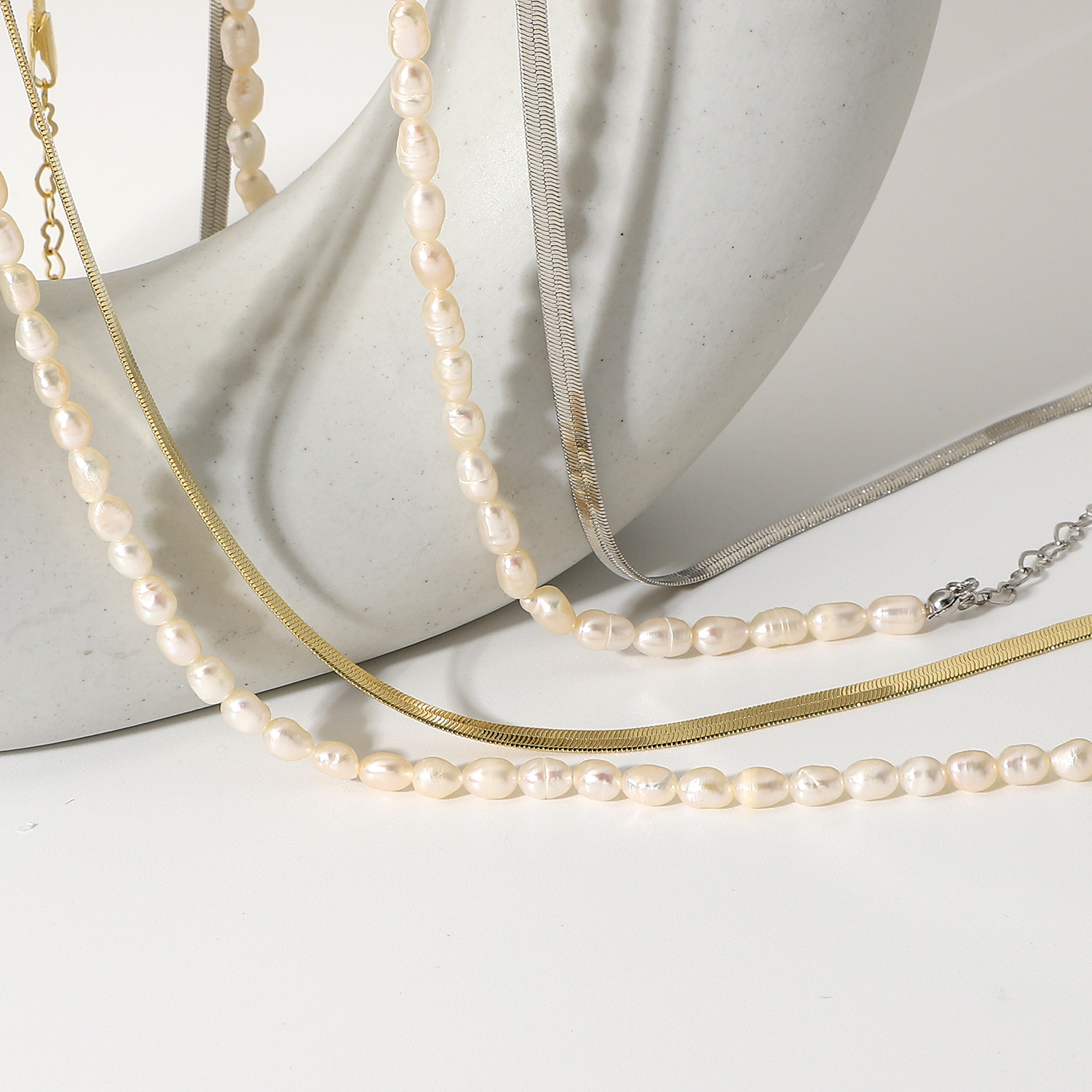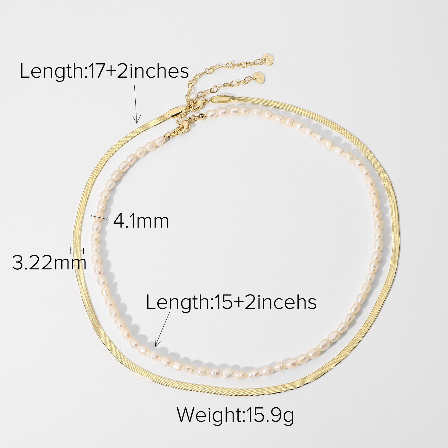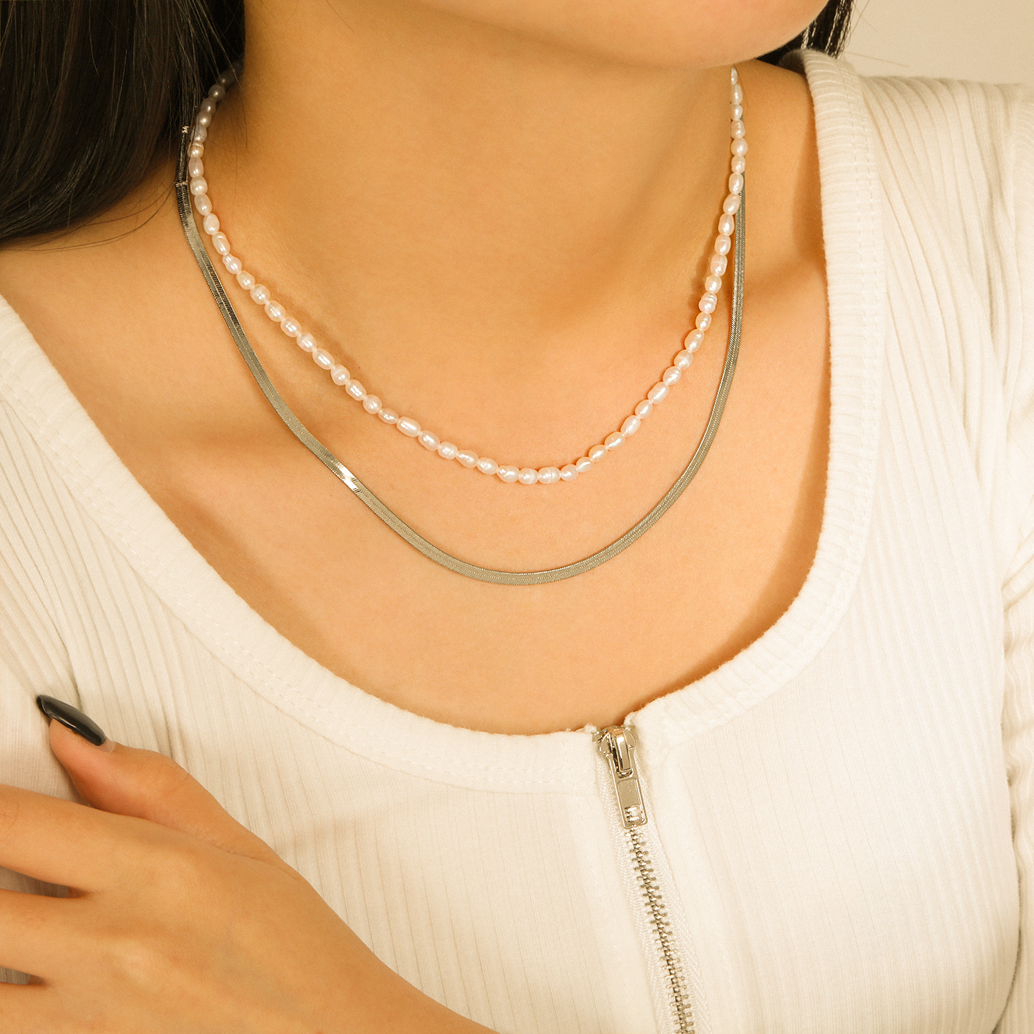 标题:INS网红项链14K金色双层蛇链珍珠链项链不锈钢金属时尚冷淡风项链