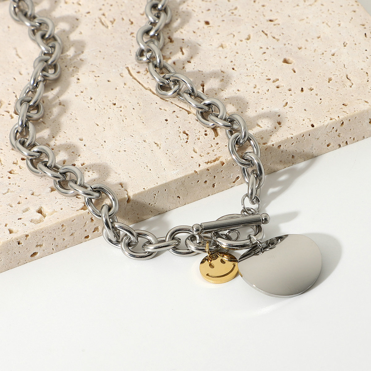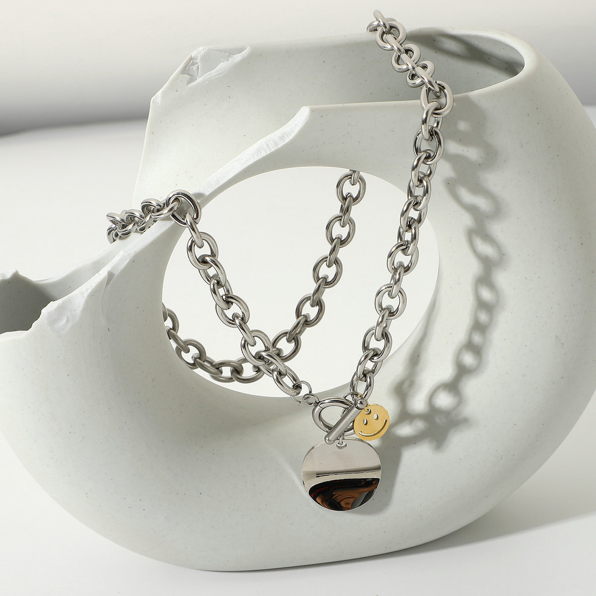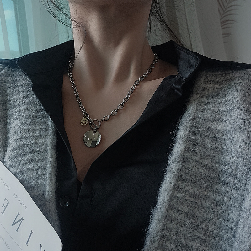 标题:笑脸粗项链女潮嘻哈个性锁骨链 ins网红冷淡风短款OT扣钛钢项链