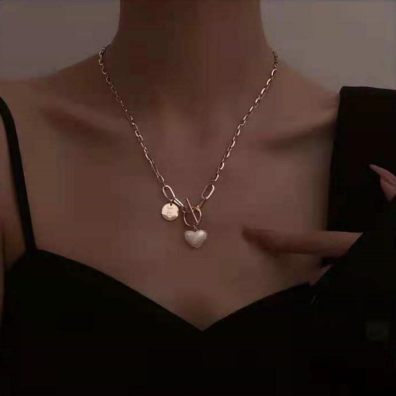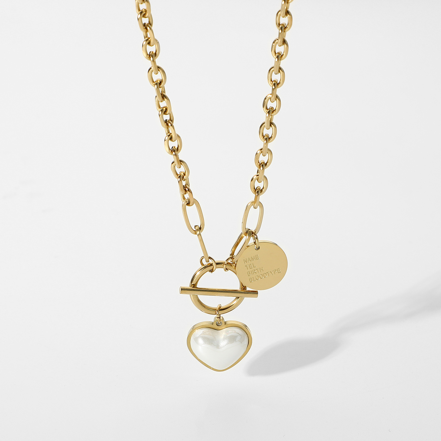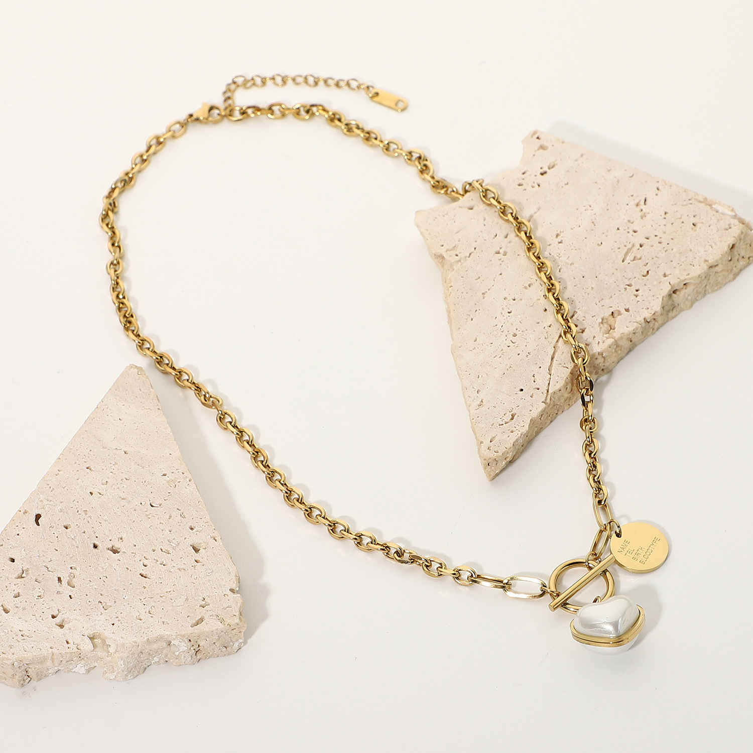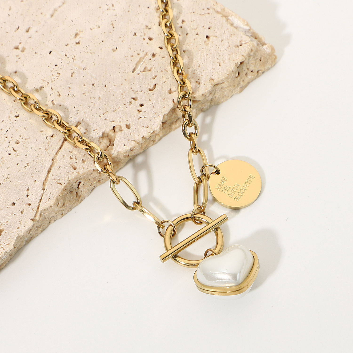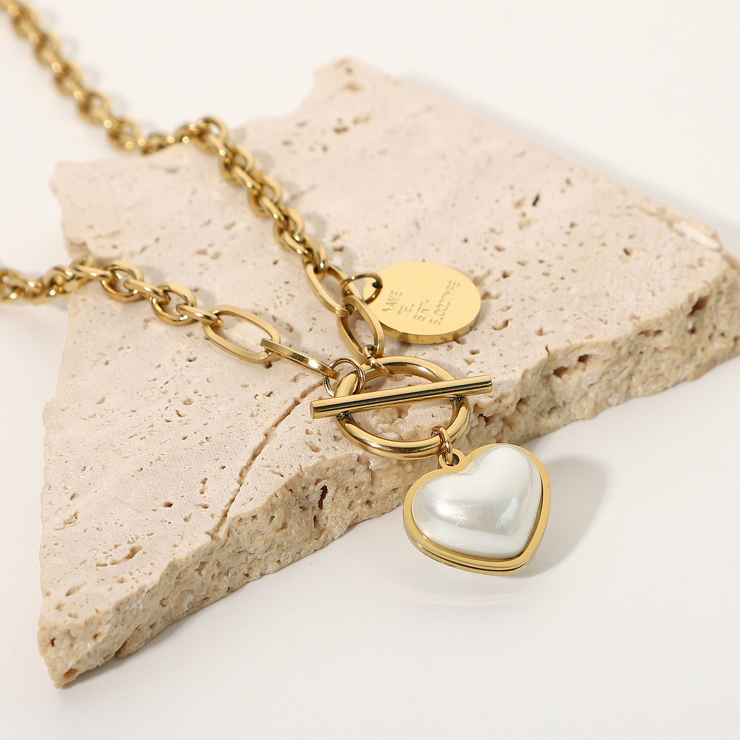 标题:欧美INS同款时尚珍珠心形吊坠项链14K镀金不锈钢桃心项链饰品女士