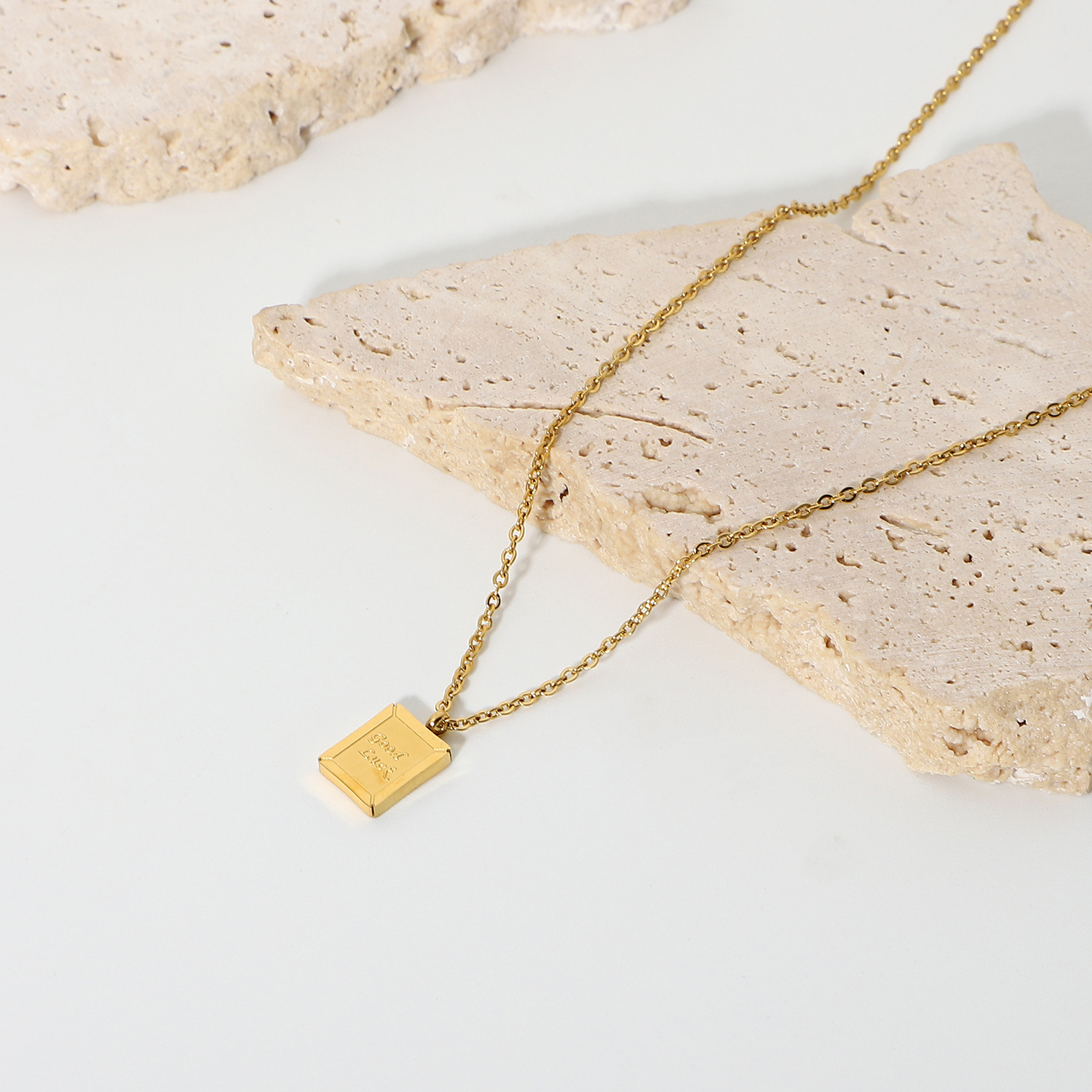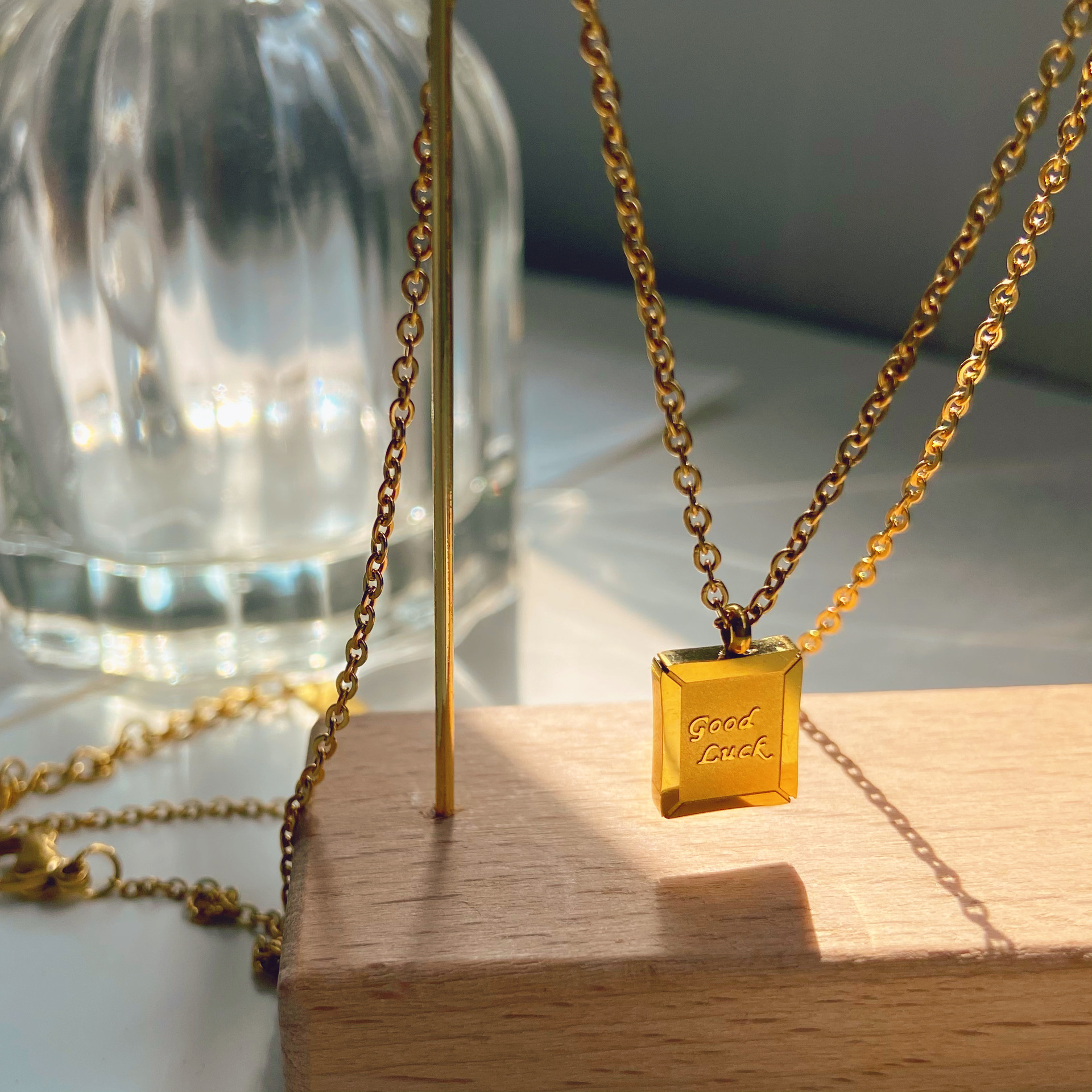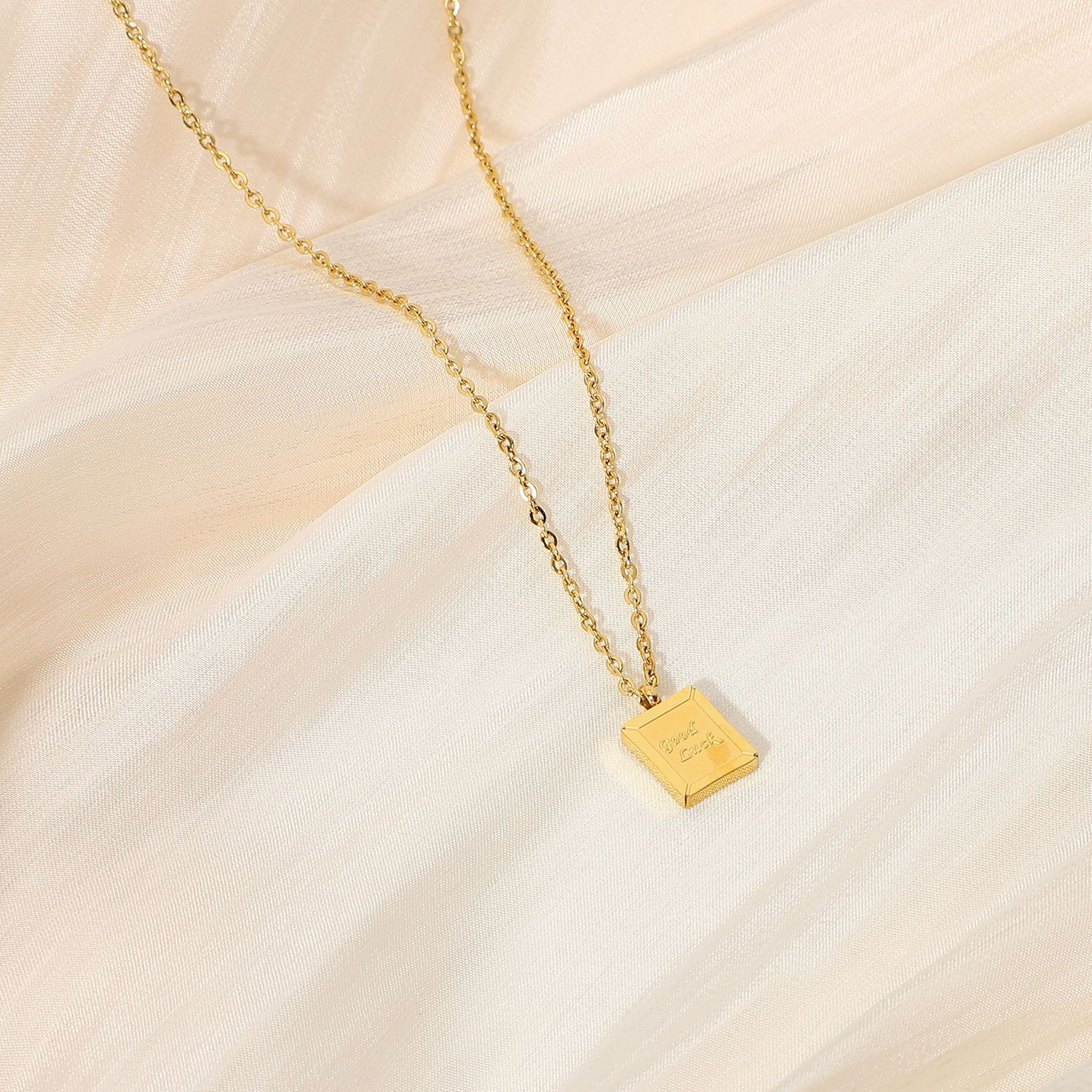 标题:欧美简约ins新款迷你小方牌Good Luck幸运吊坠不锈钢项链女士颈链