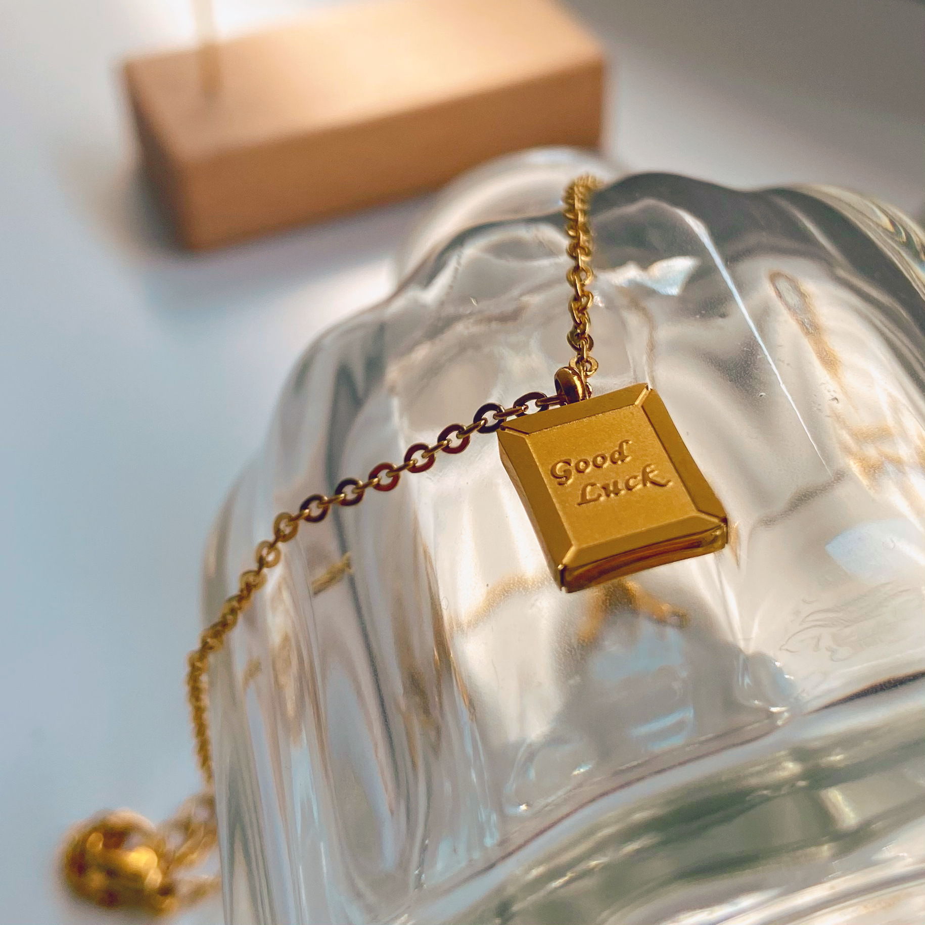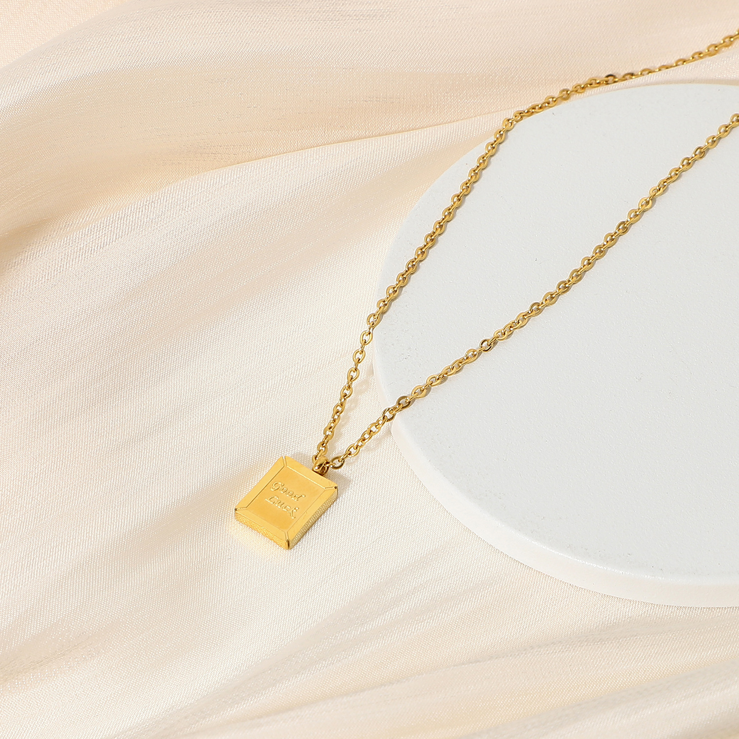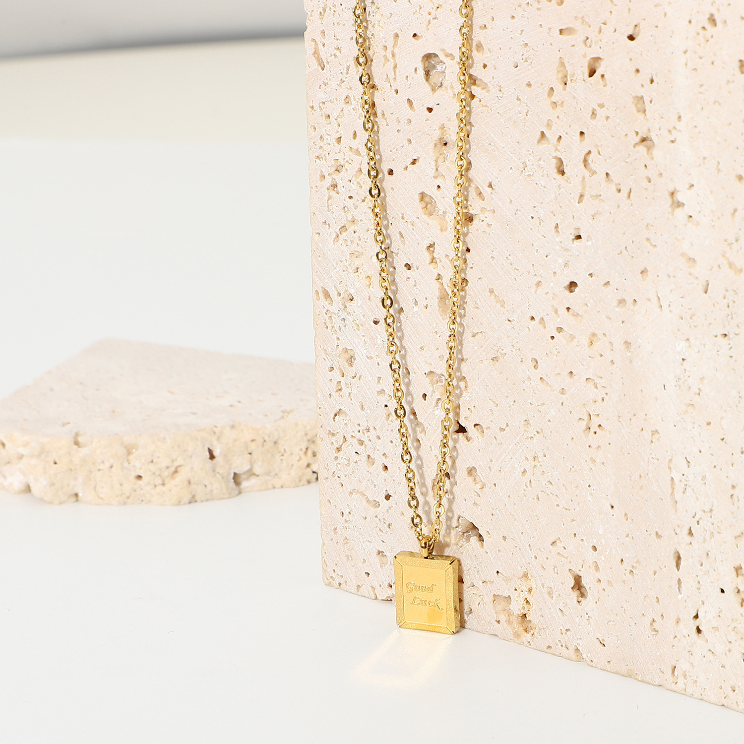 标题:欧美简约ins新款迷你小方牌Good Luck幸运吊坠不锈钢项链女士颈链