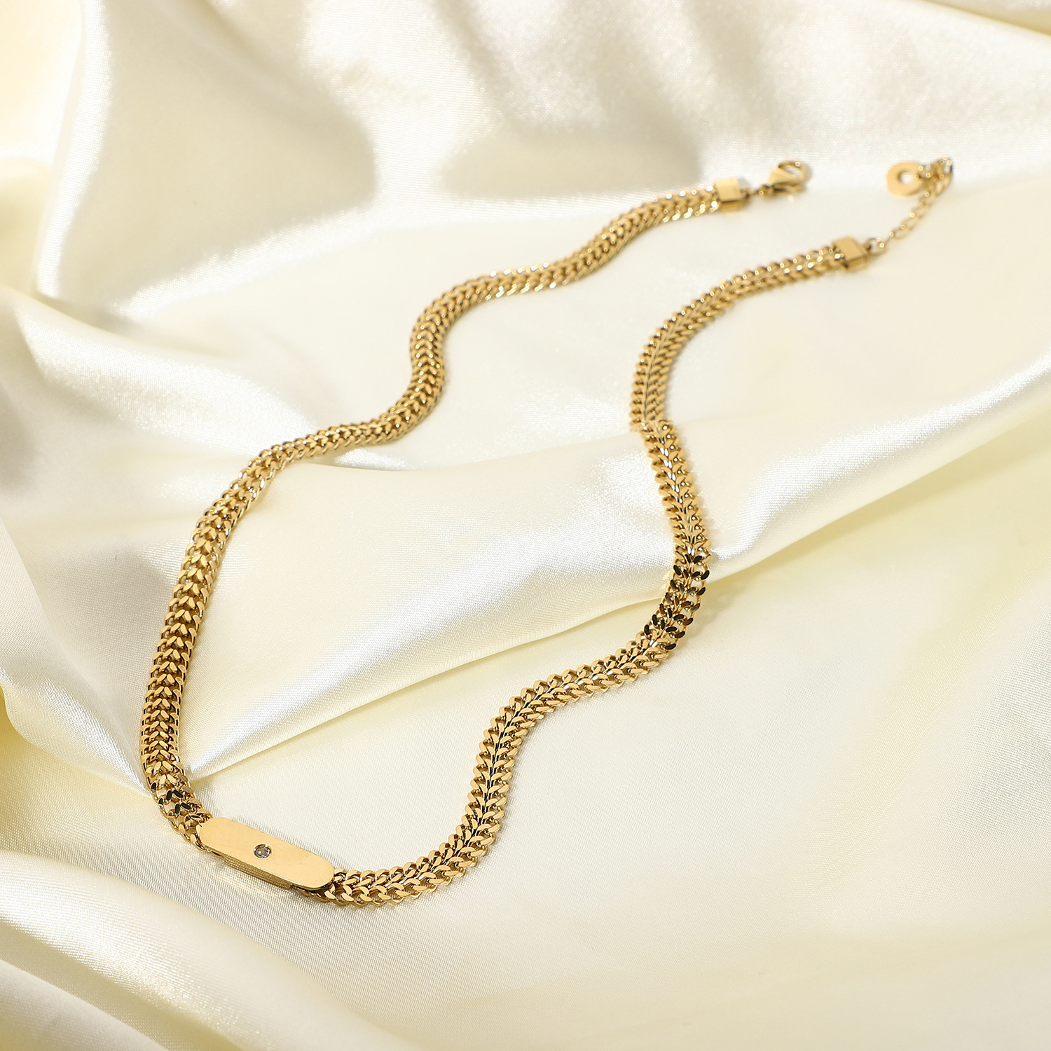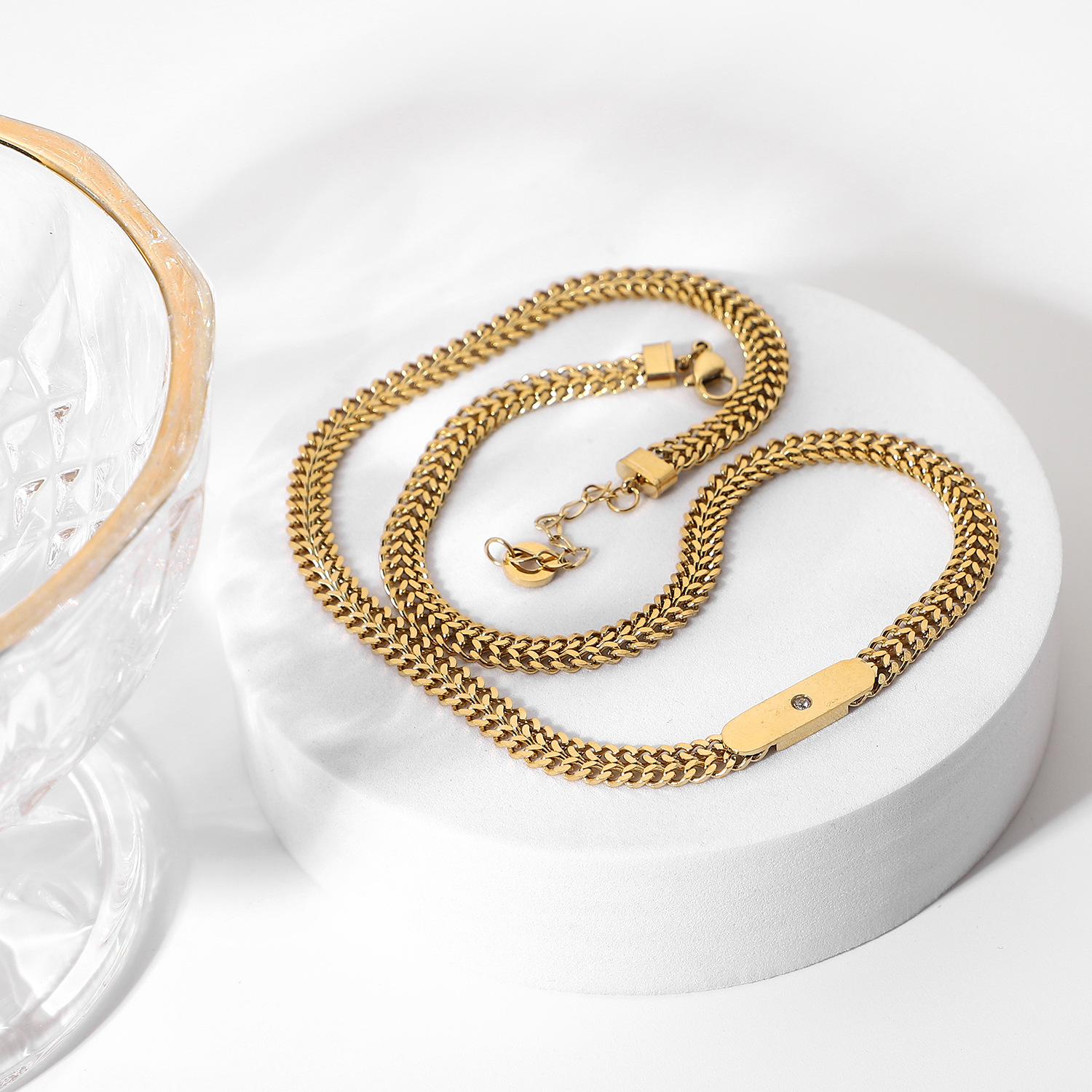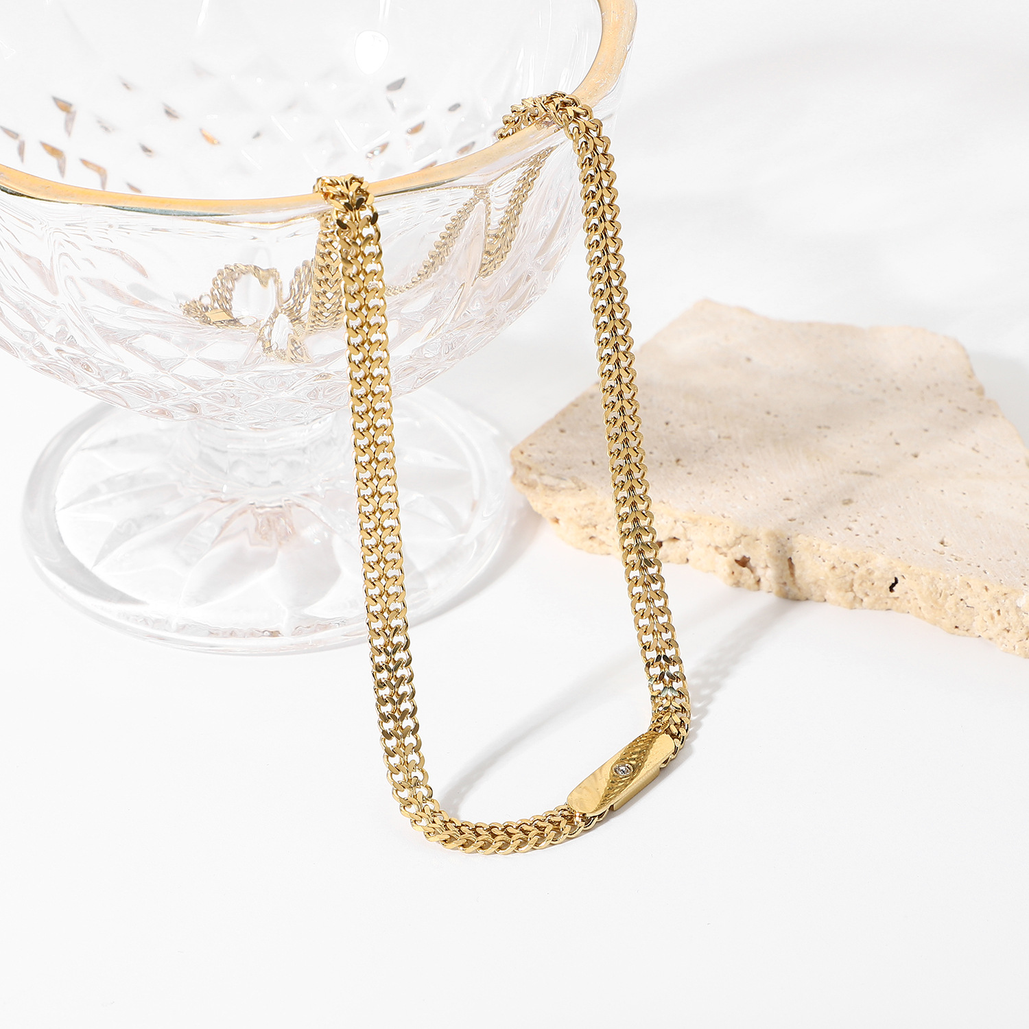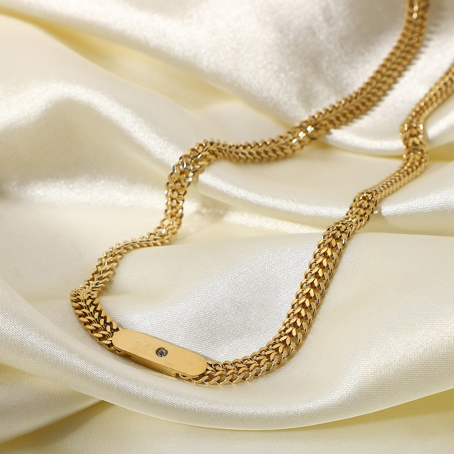 标题:欧美INS网红同款项链14k不锈钢镀金项链粗金绳矩形锆石项链颈链女