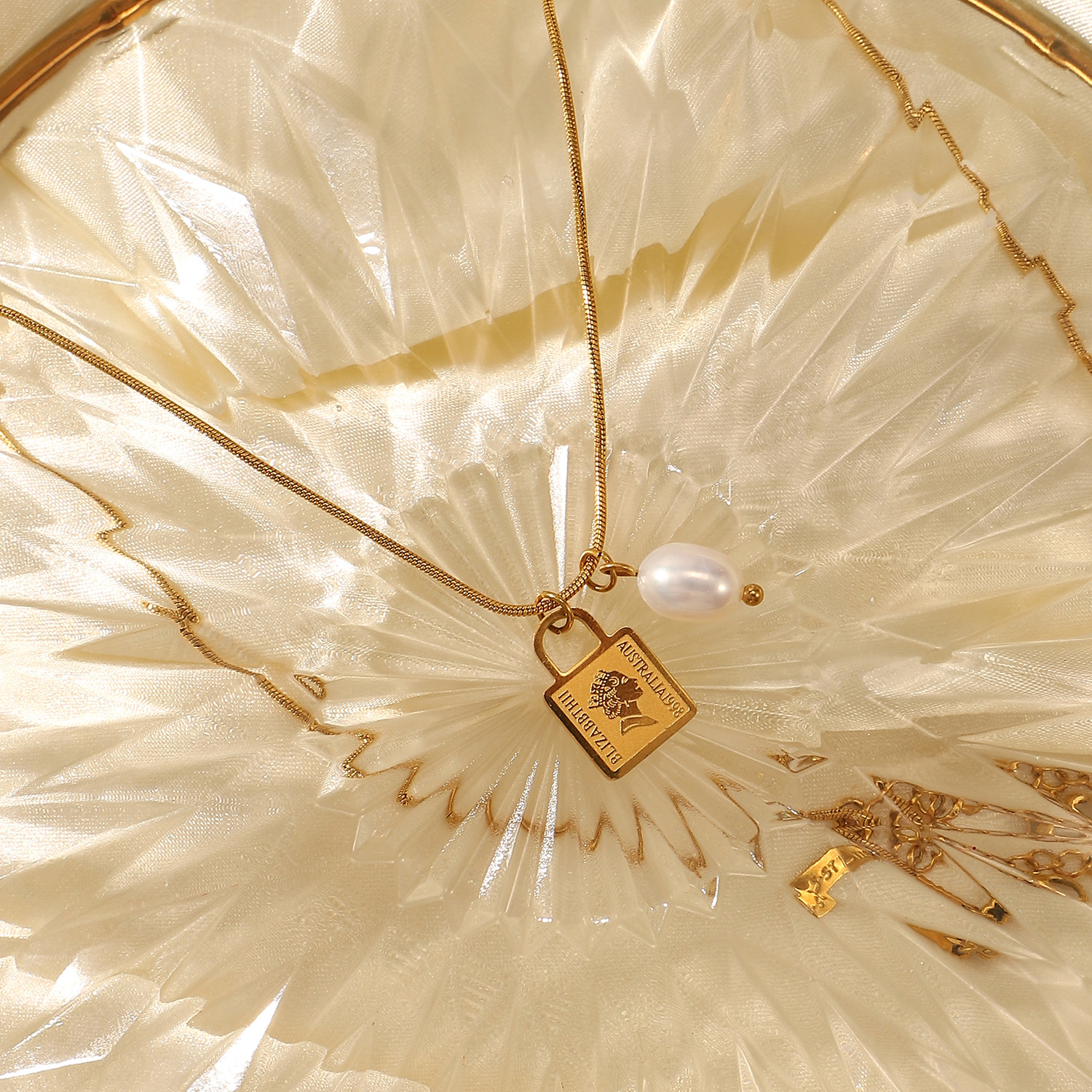 标题:欧美INS网红同款伊丽莎白女王头像天然淡水珍珠吊坠软骨链项链女