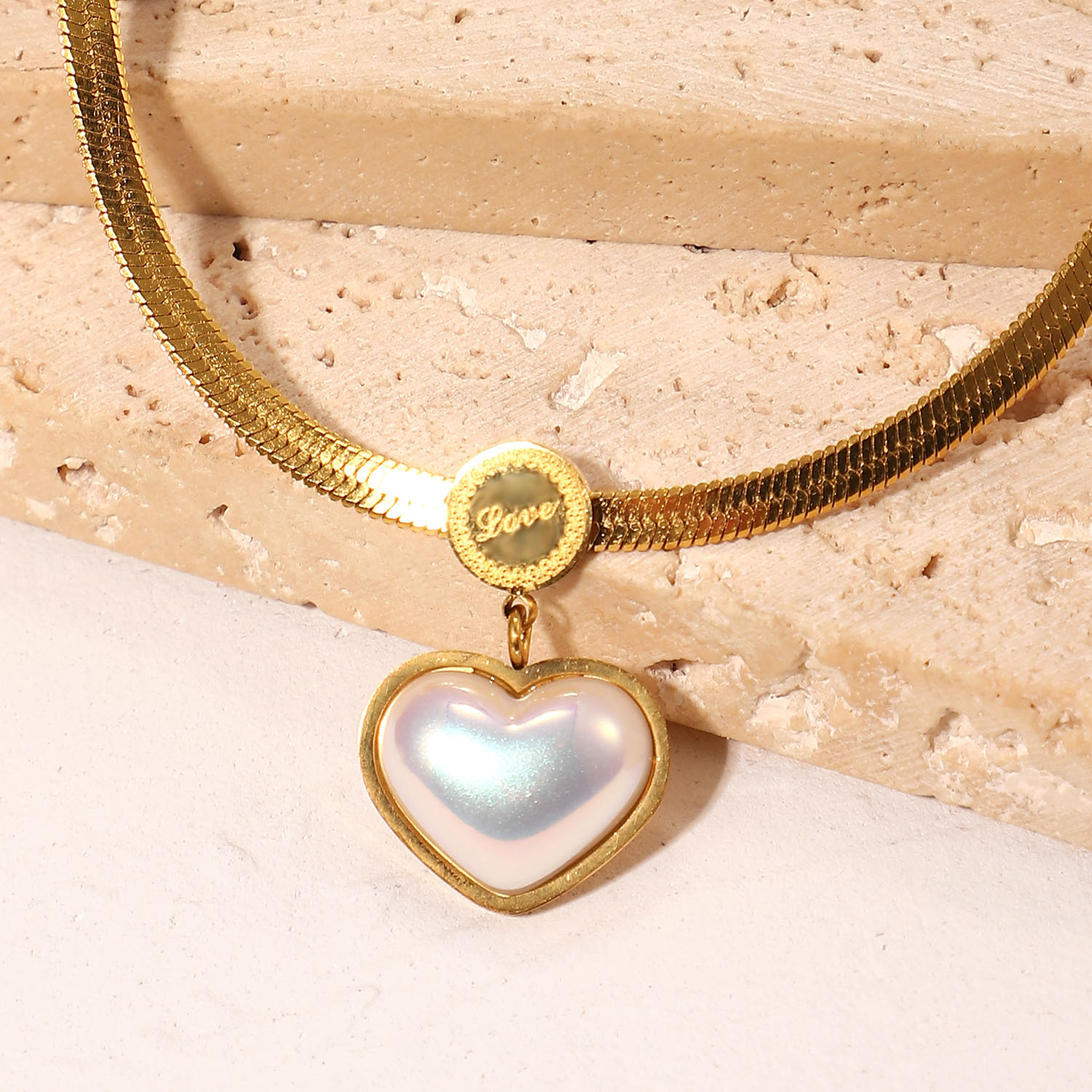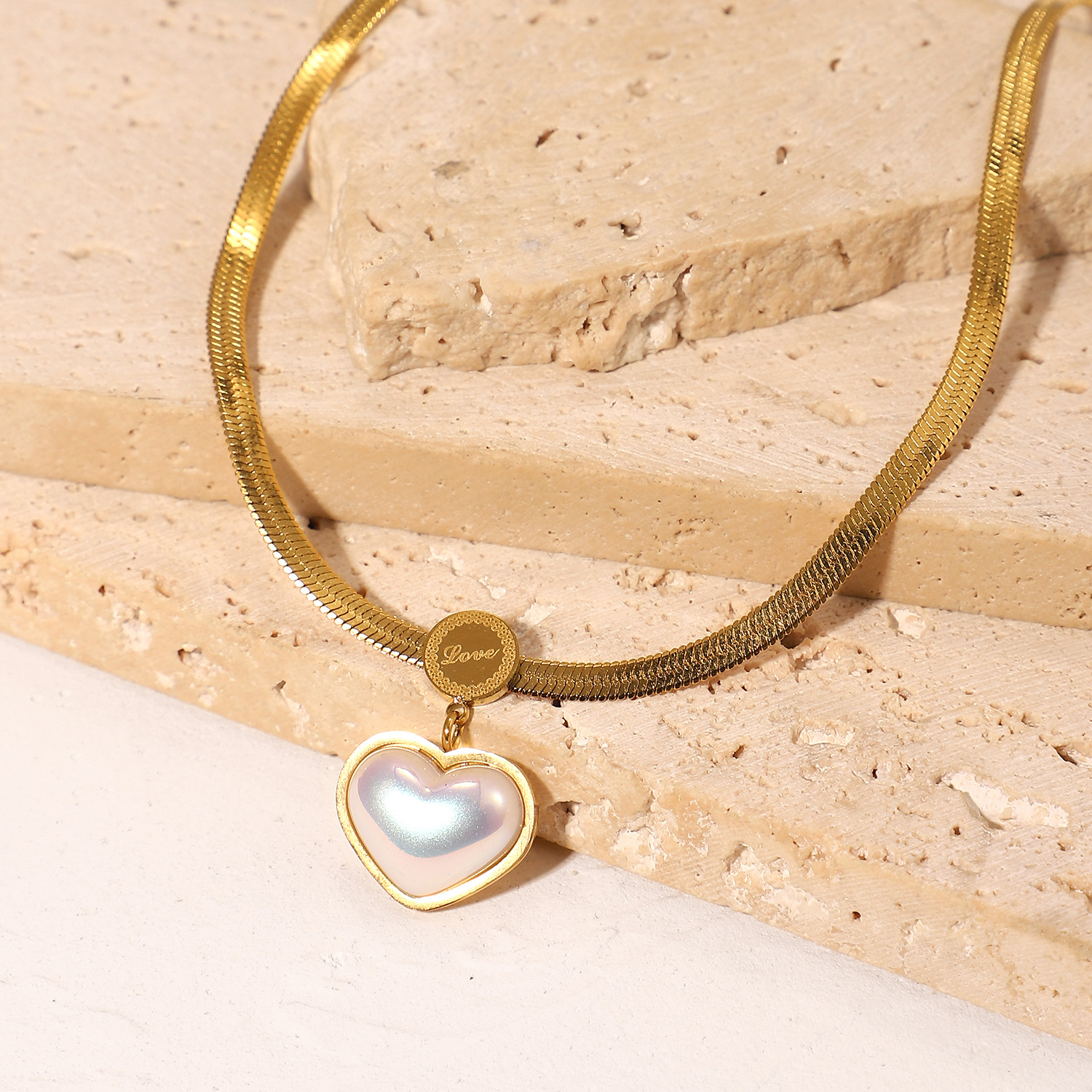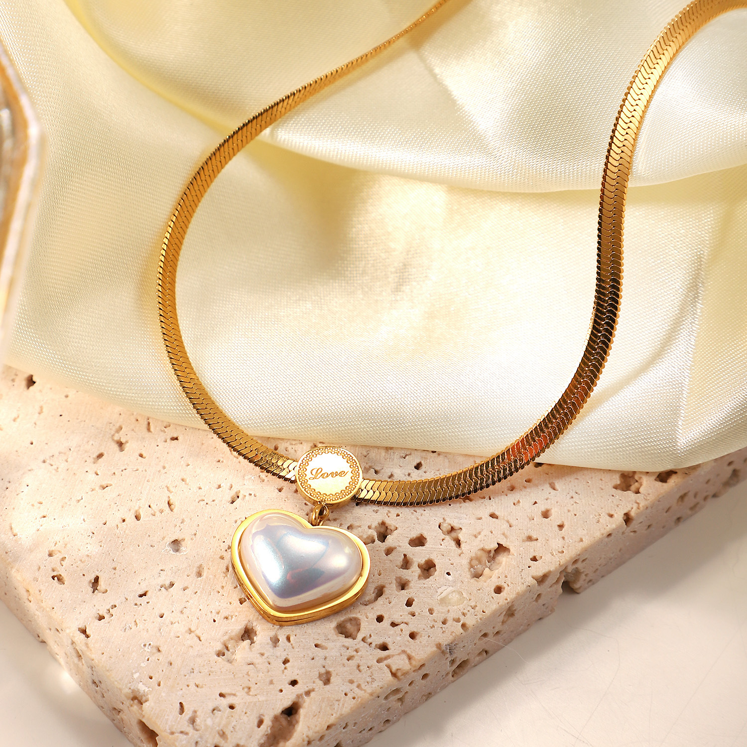标题:欧美INS网红项链 18K金不锈钢扁平蛇链心形珍珠吊坠项链饰品女式