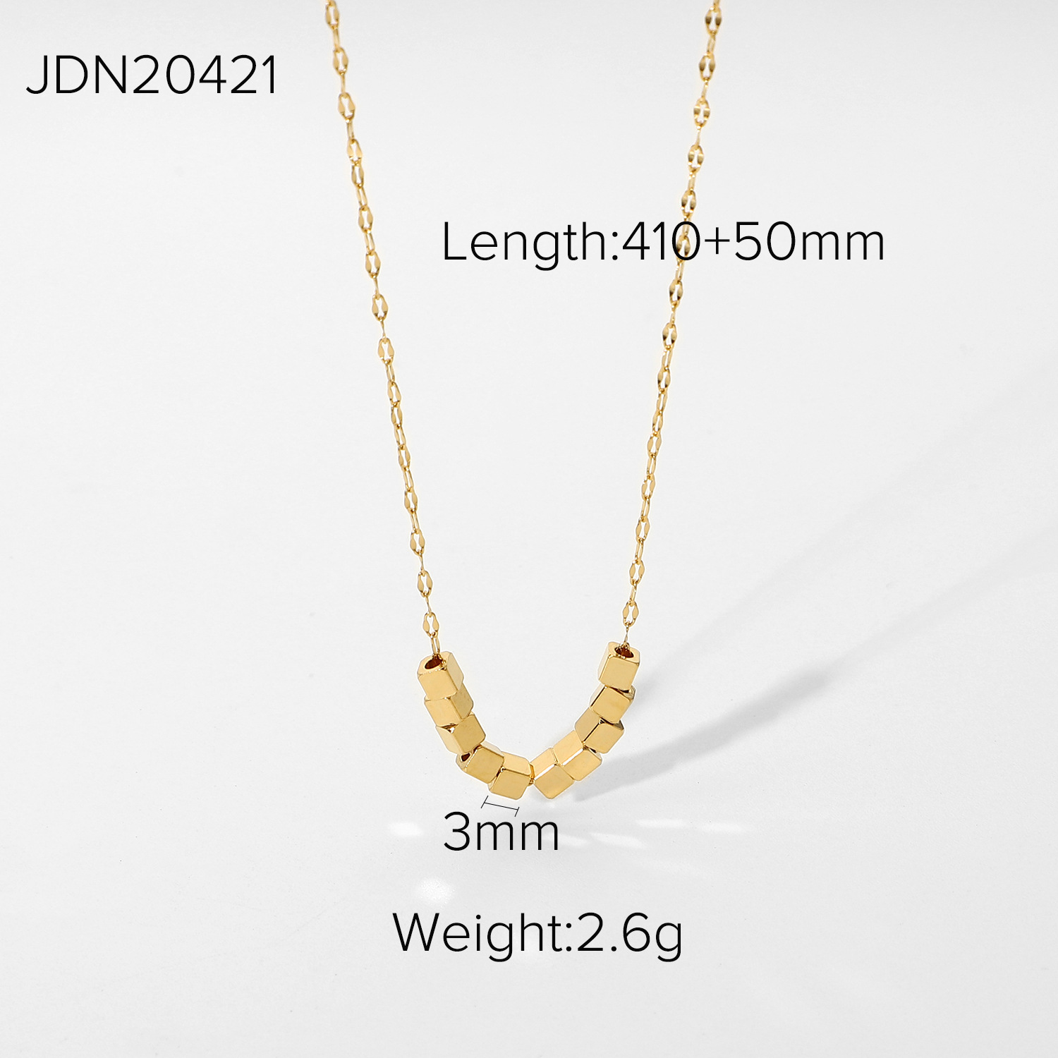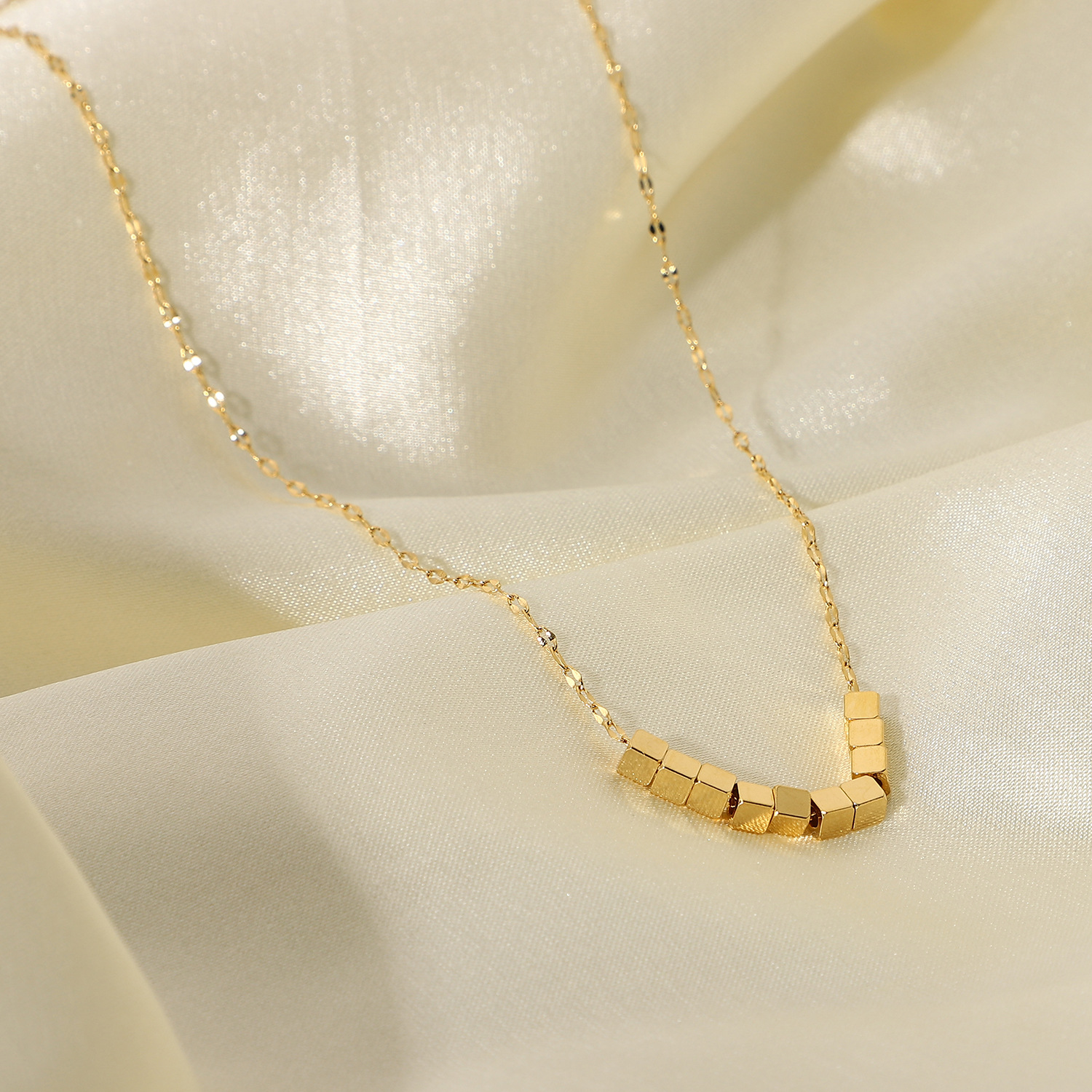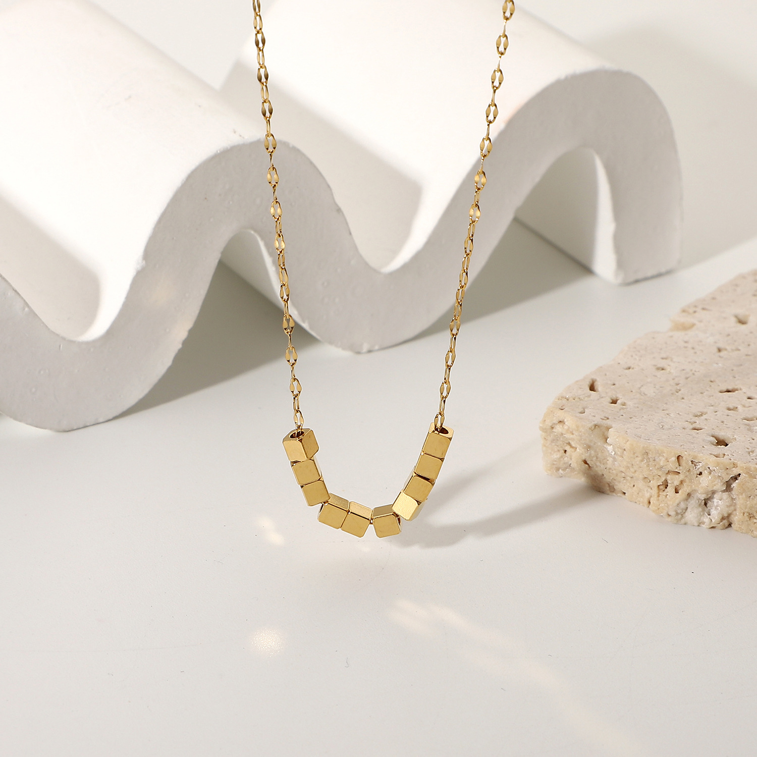 标题:新款不锈钢首饰14K 镀金方形吊坠项链 3毫米立方体吊坠项链饰品女