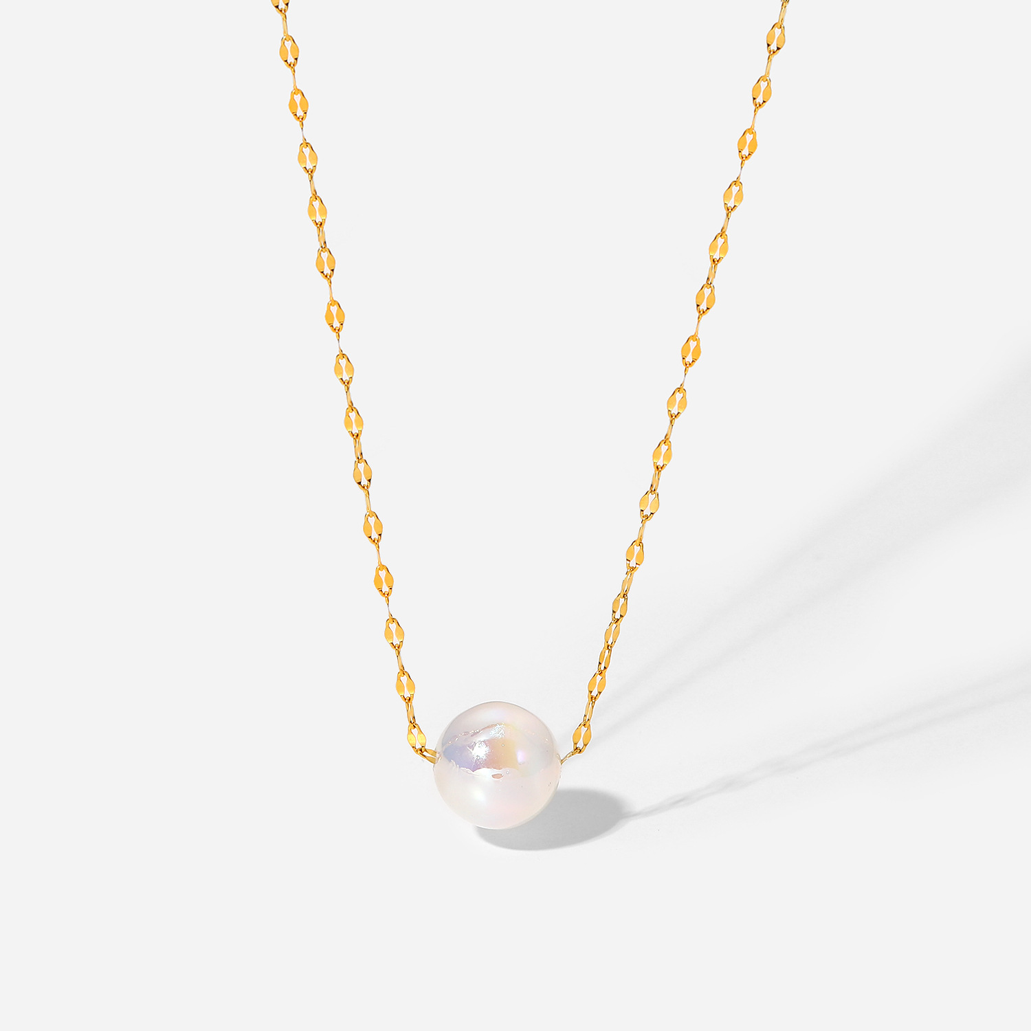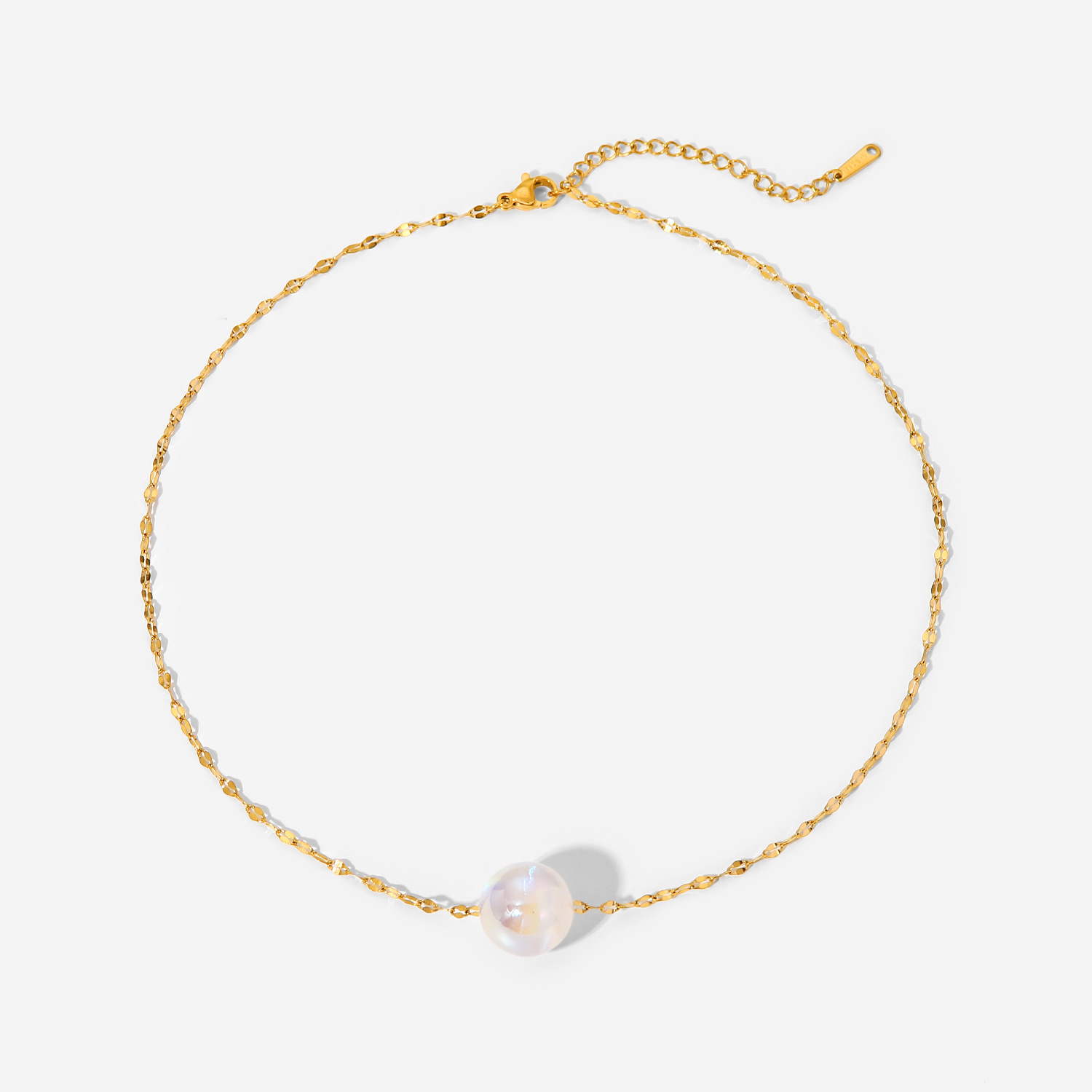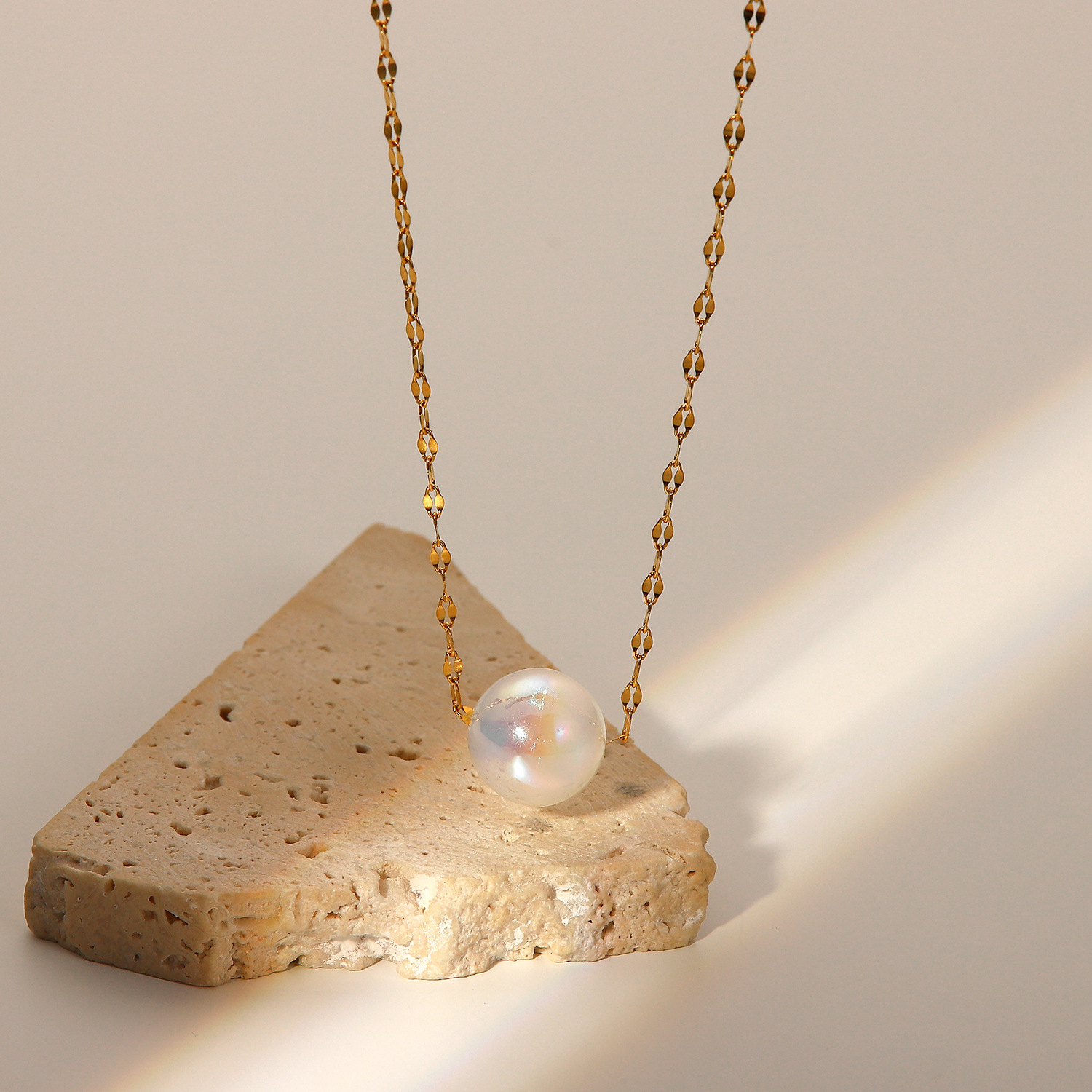 标题:法式优雅浪漫人鱼姖胶珠吊坠项链气质女士INS风18K镀金不锈钢项饰