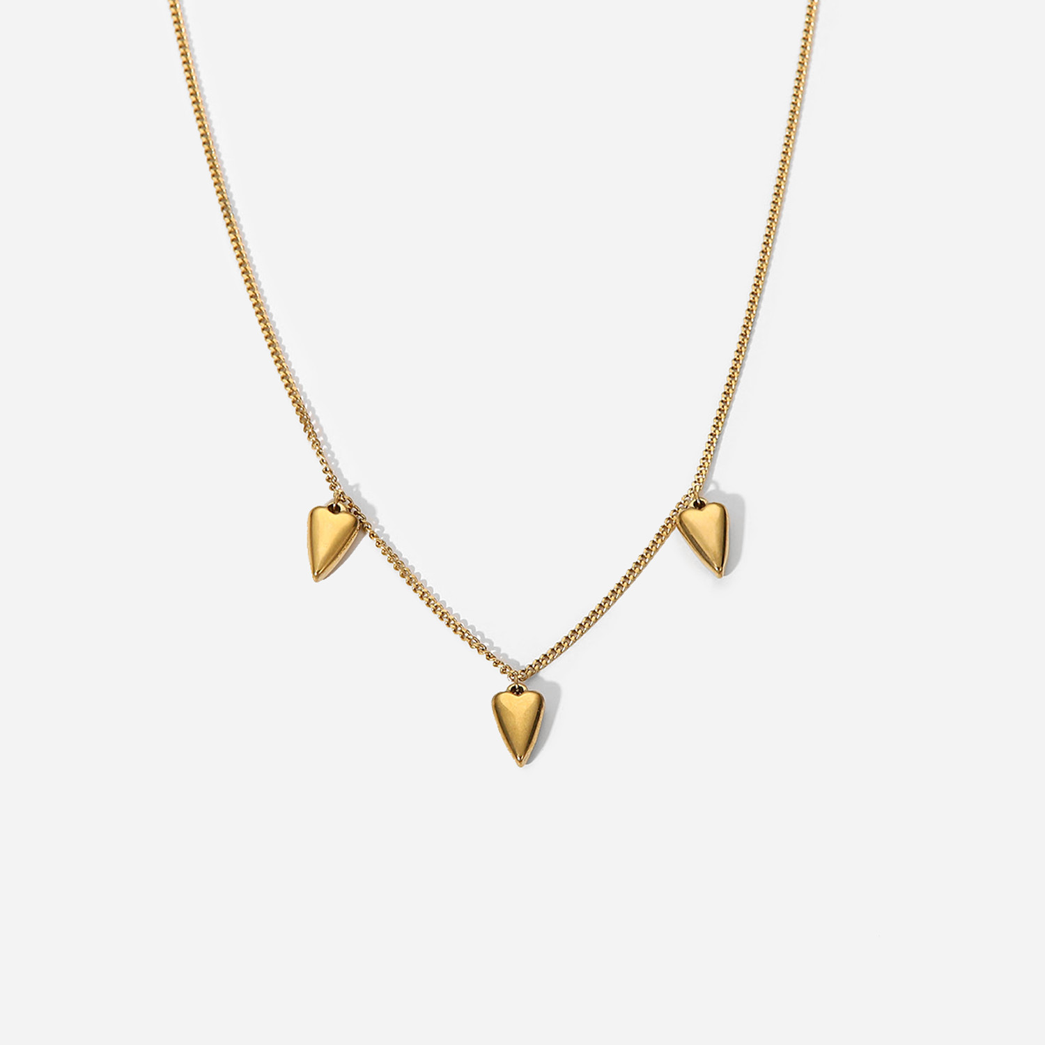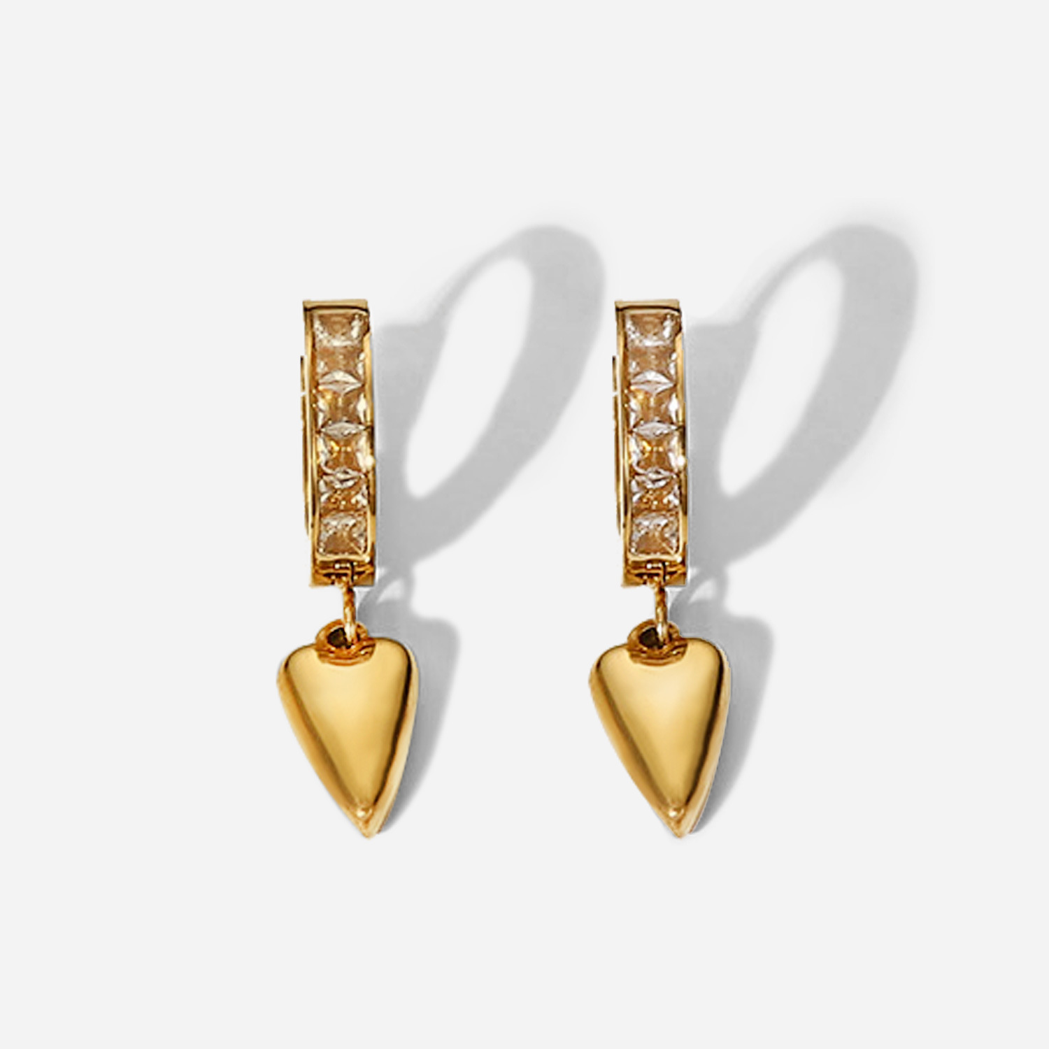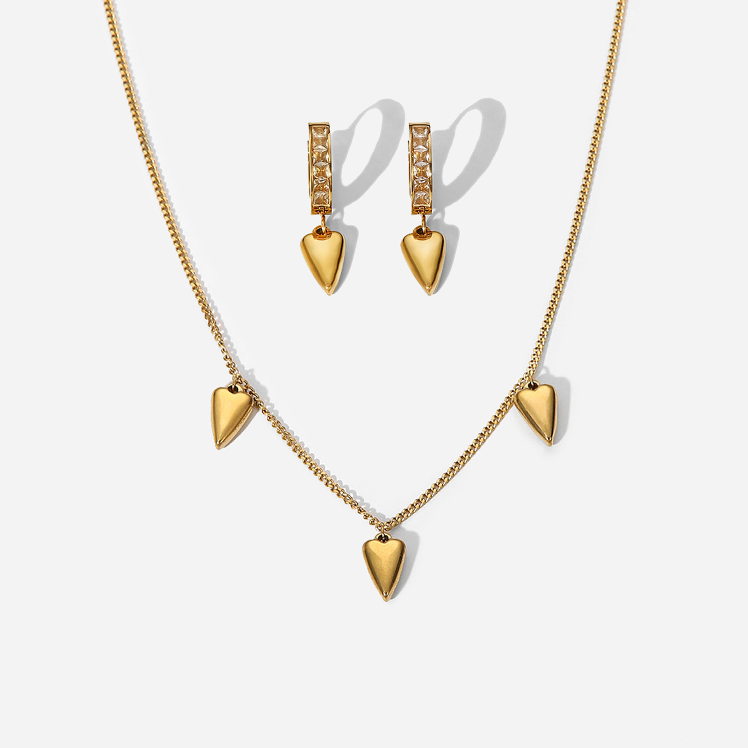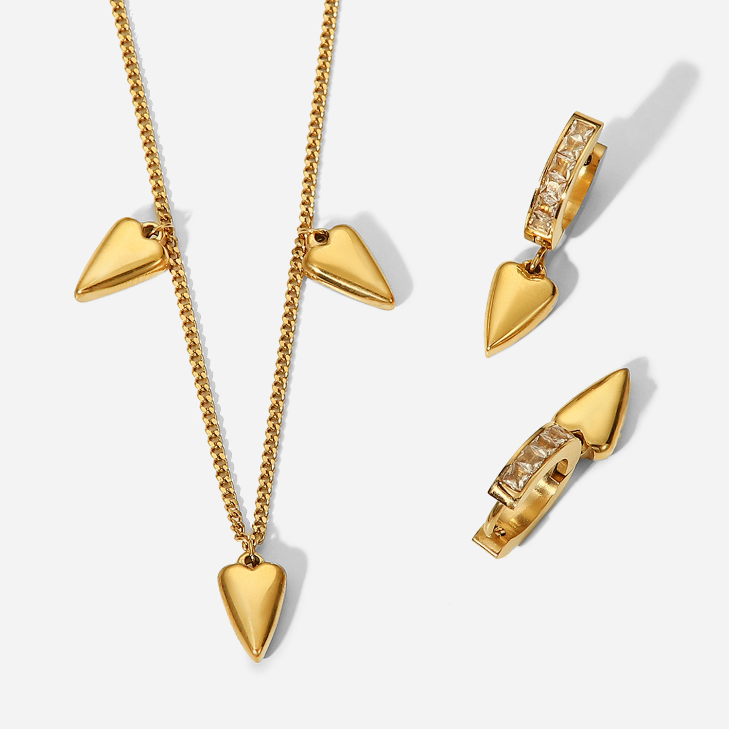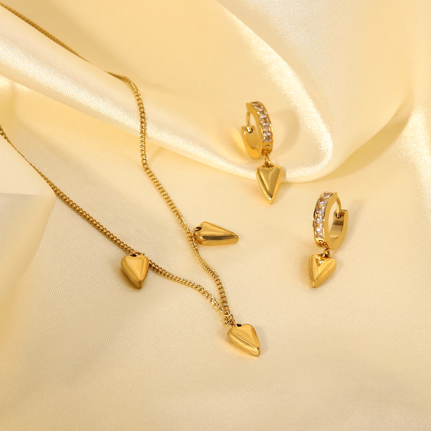 标题:欧美时尚简约14K金爱心吊坠不锈钢项链INS风心形吊坠耳圈镶锆耳环