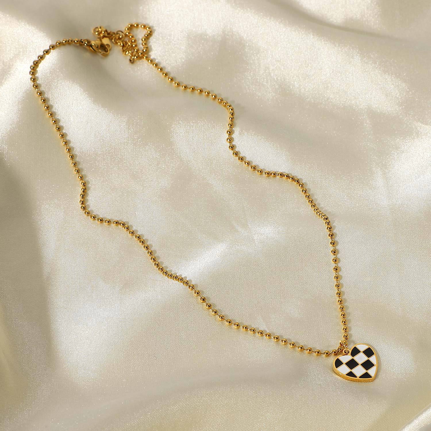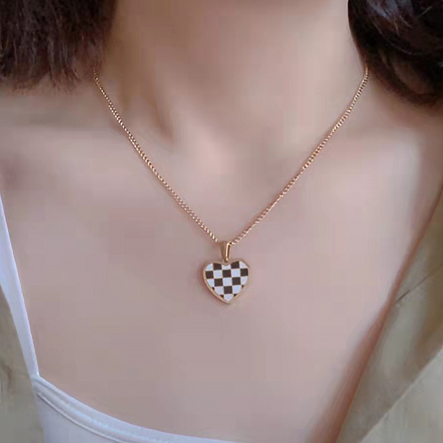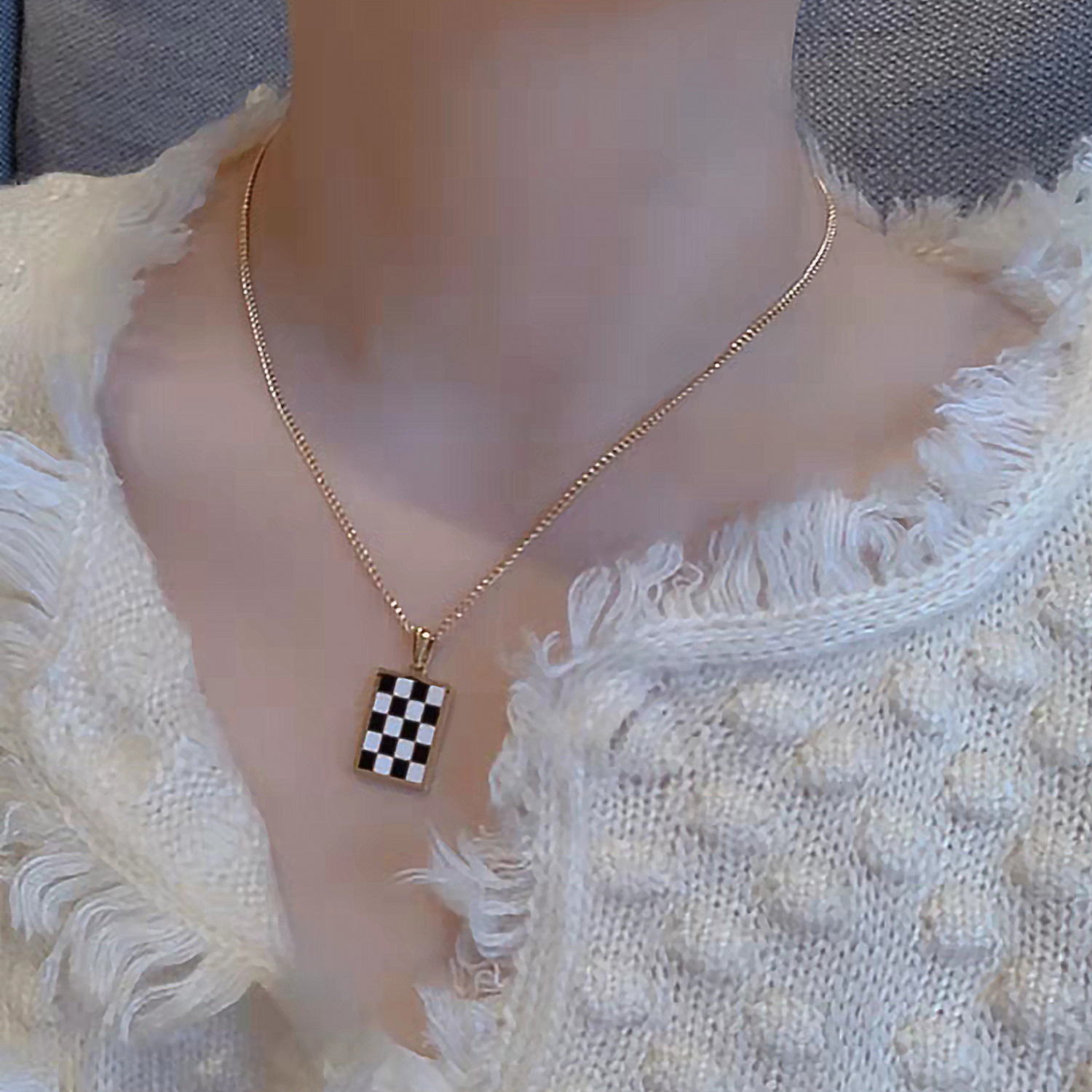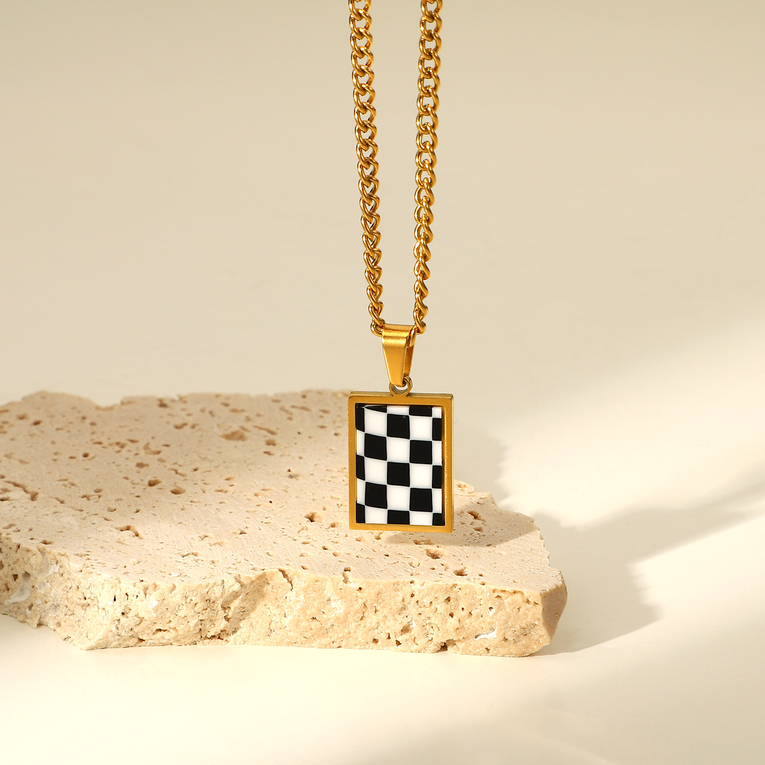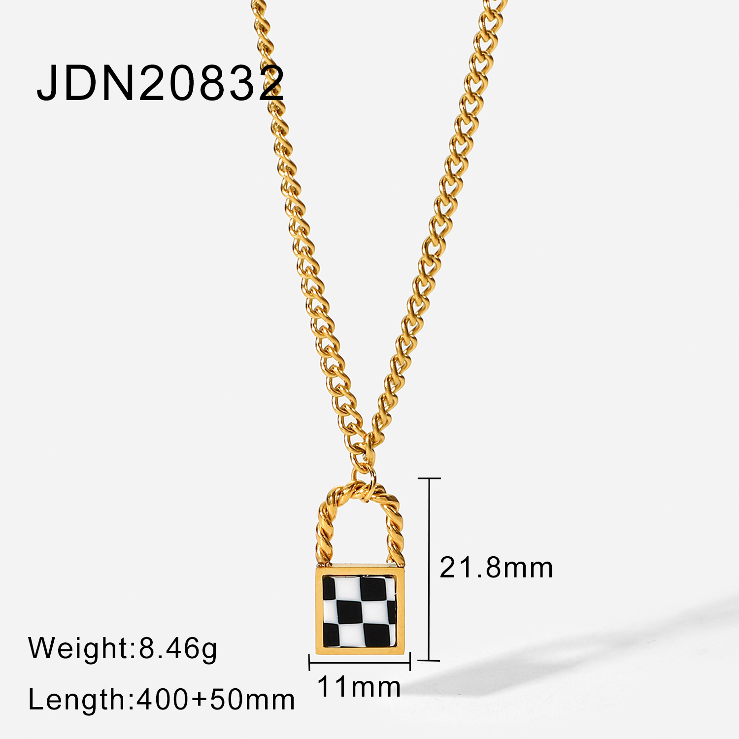 标题:欧美INS网红新款小圆珠项链18K金经典棋盘格爱心/锁/方形吊坠项链