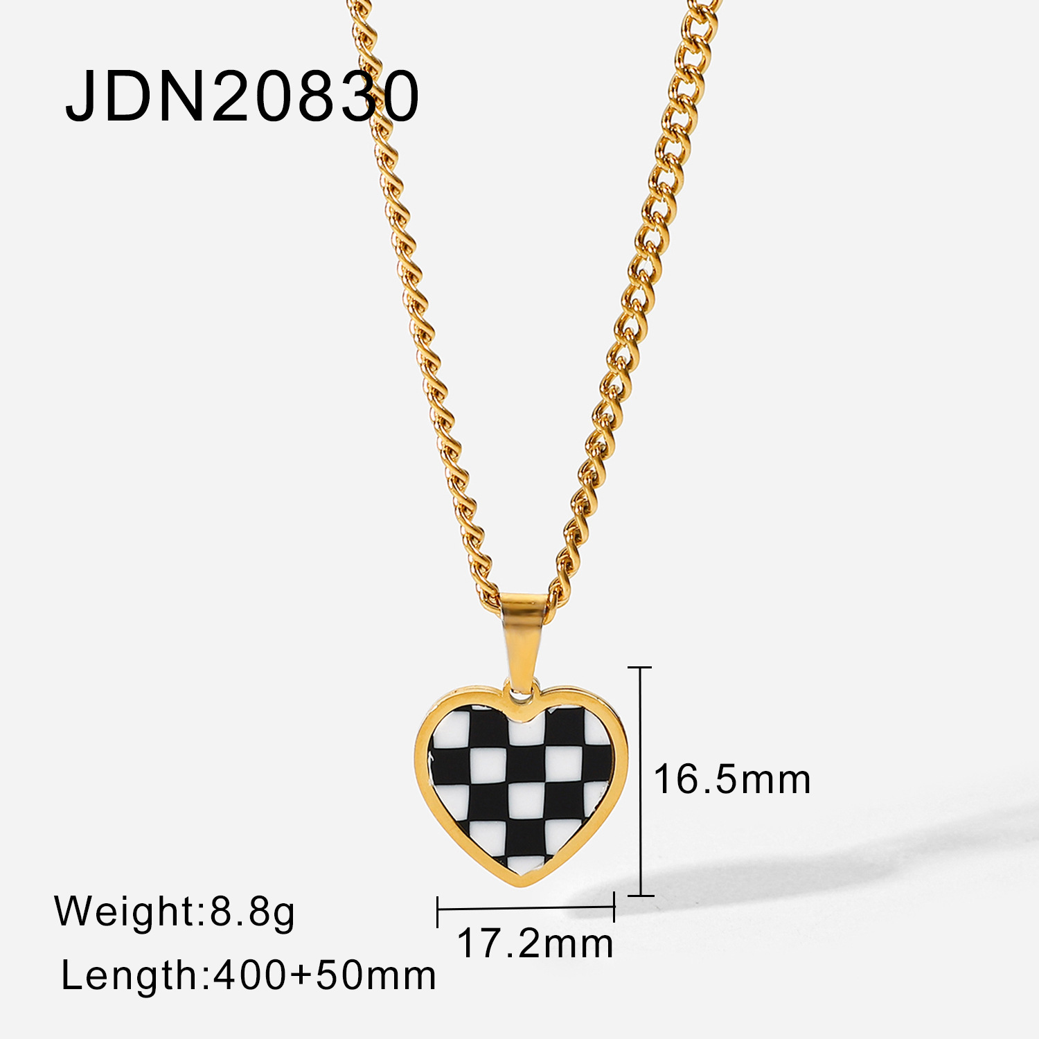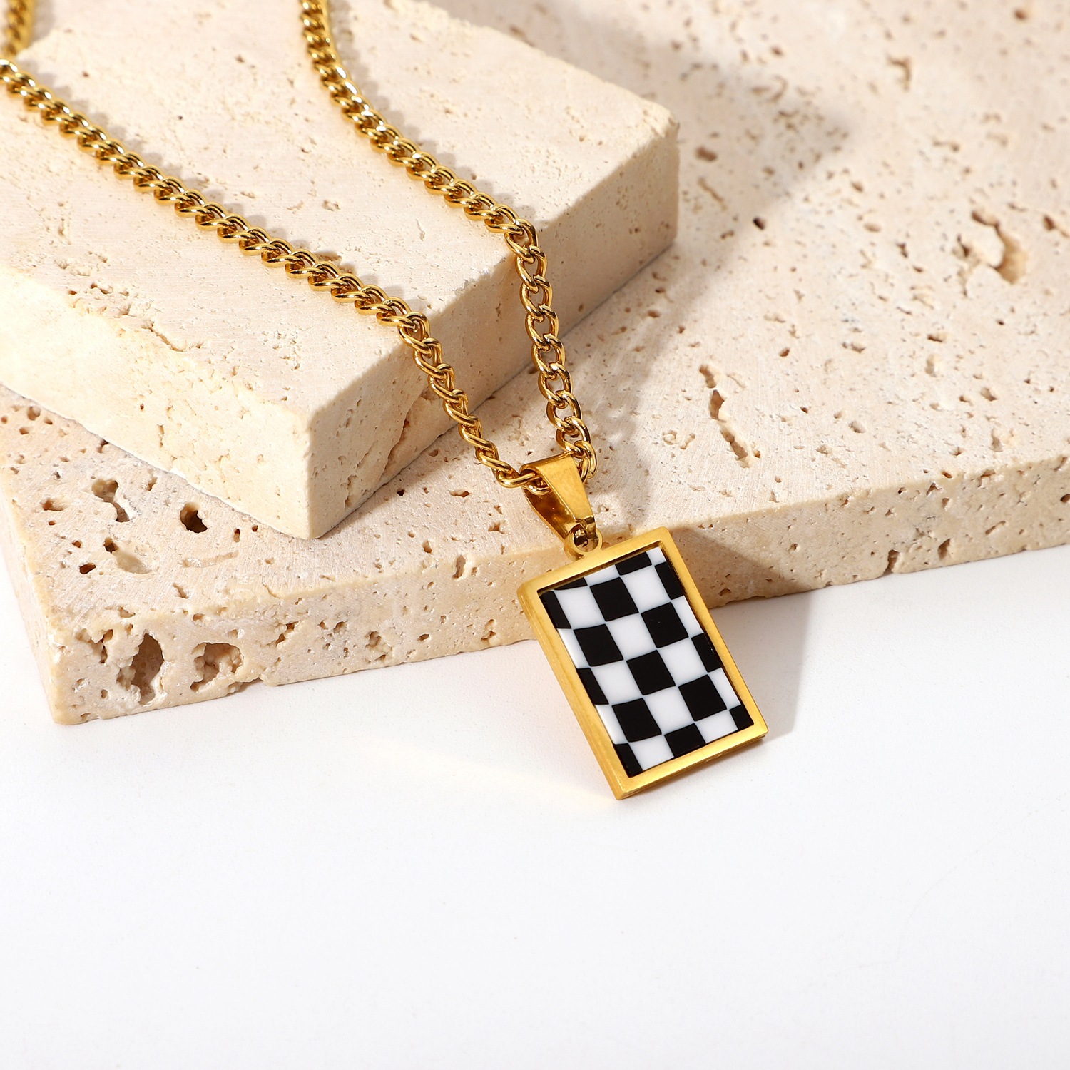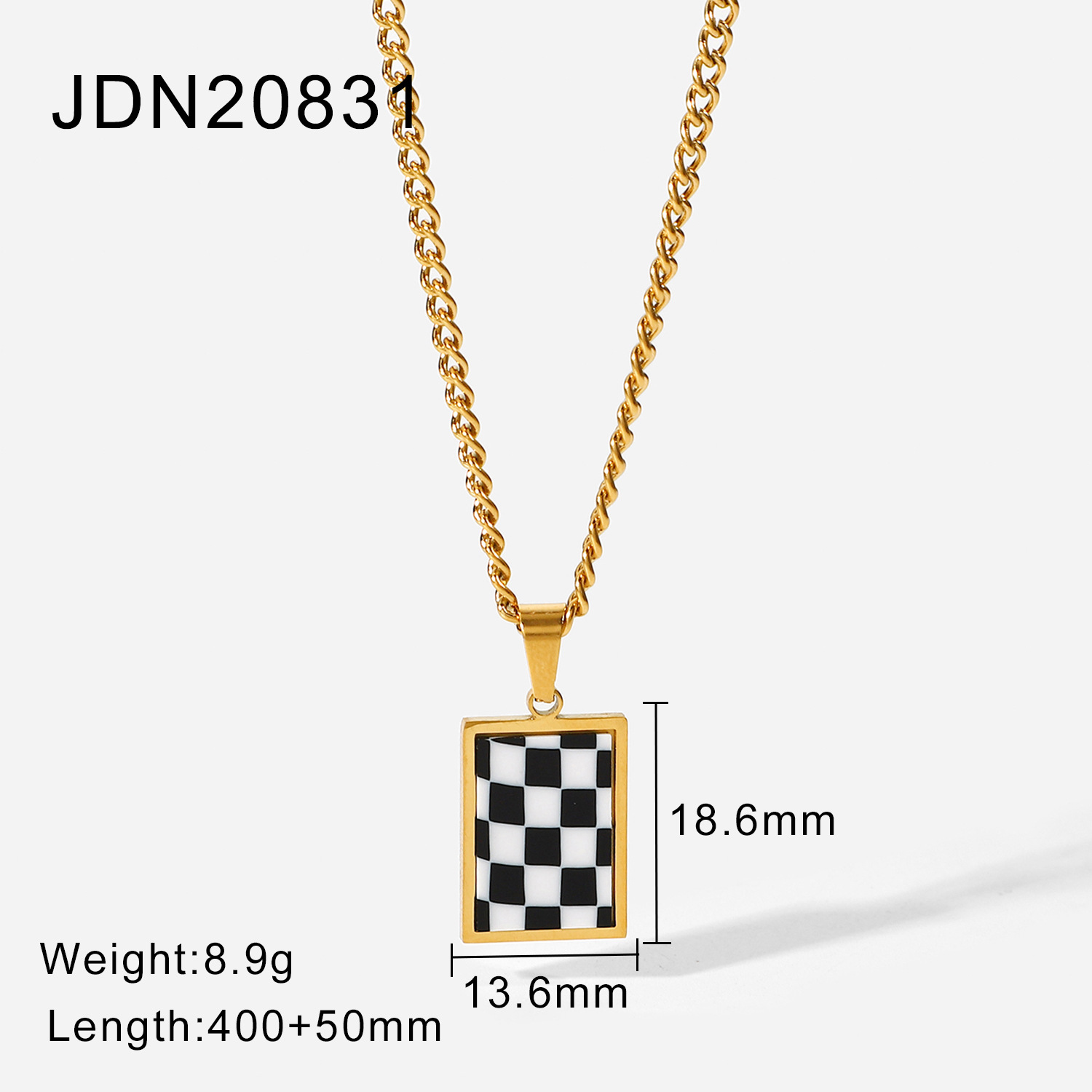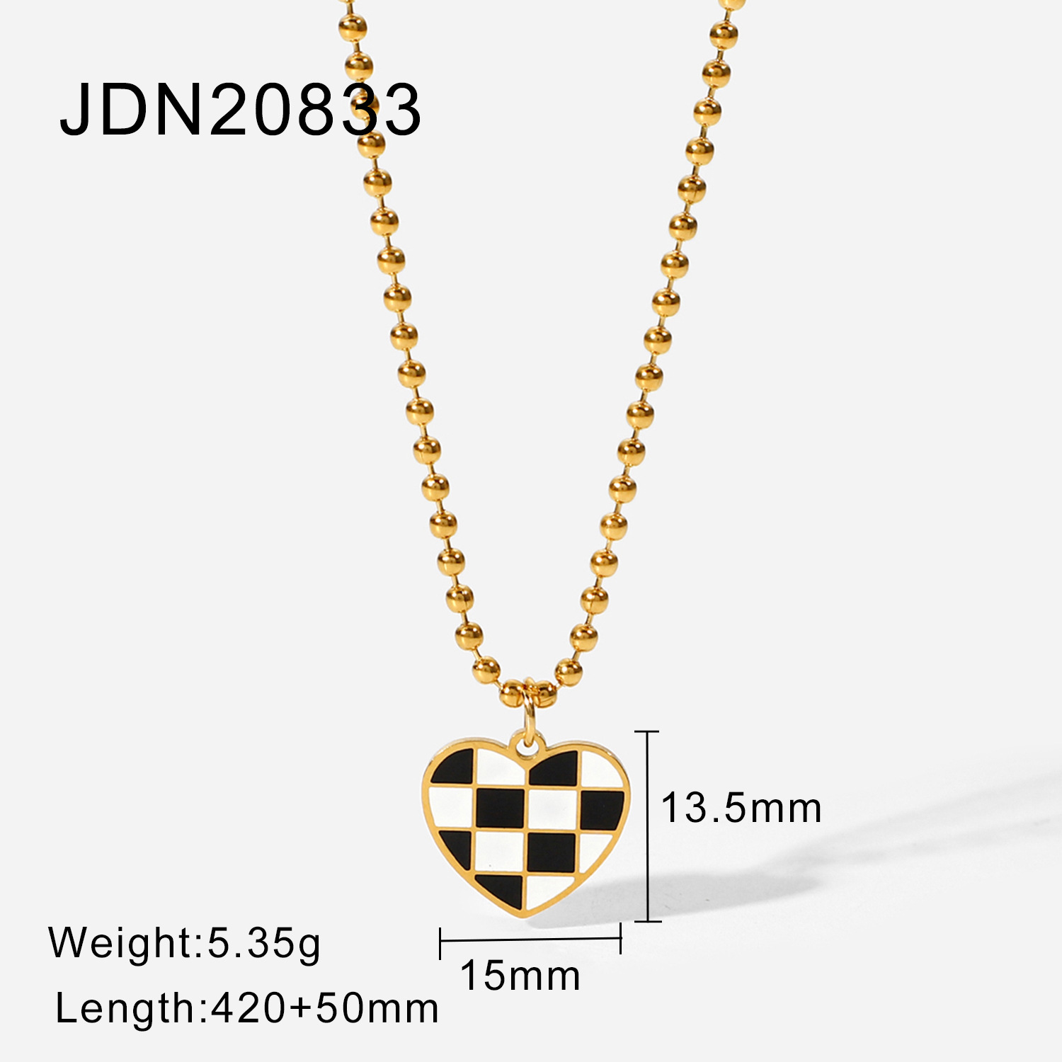 标题:欧美INS网红新款小圆珠项链18K金经典棋盘格爱心/锁/方形吊坠项链
