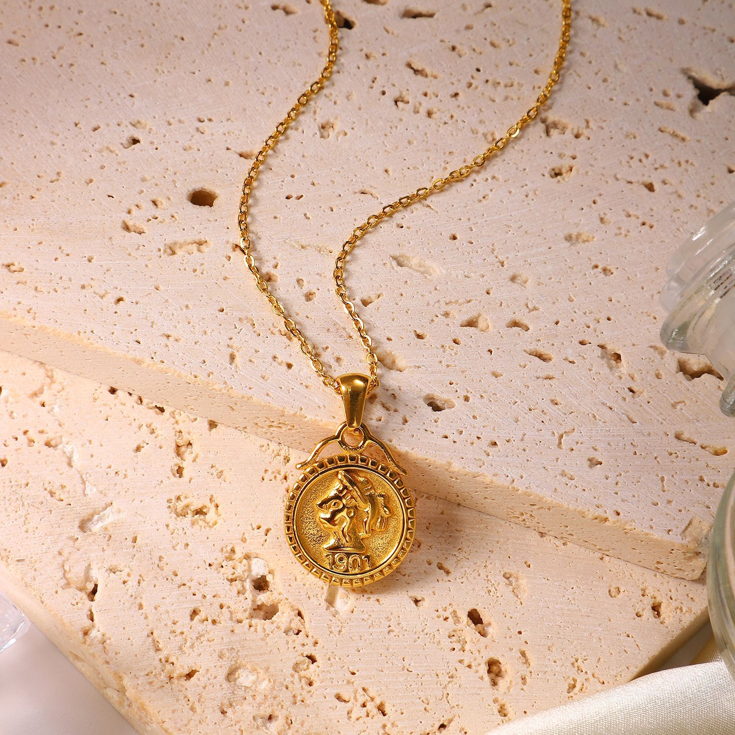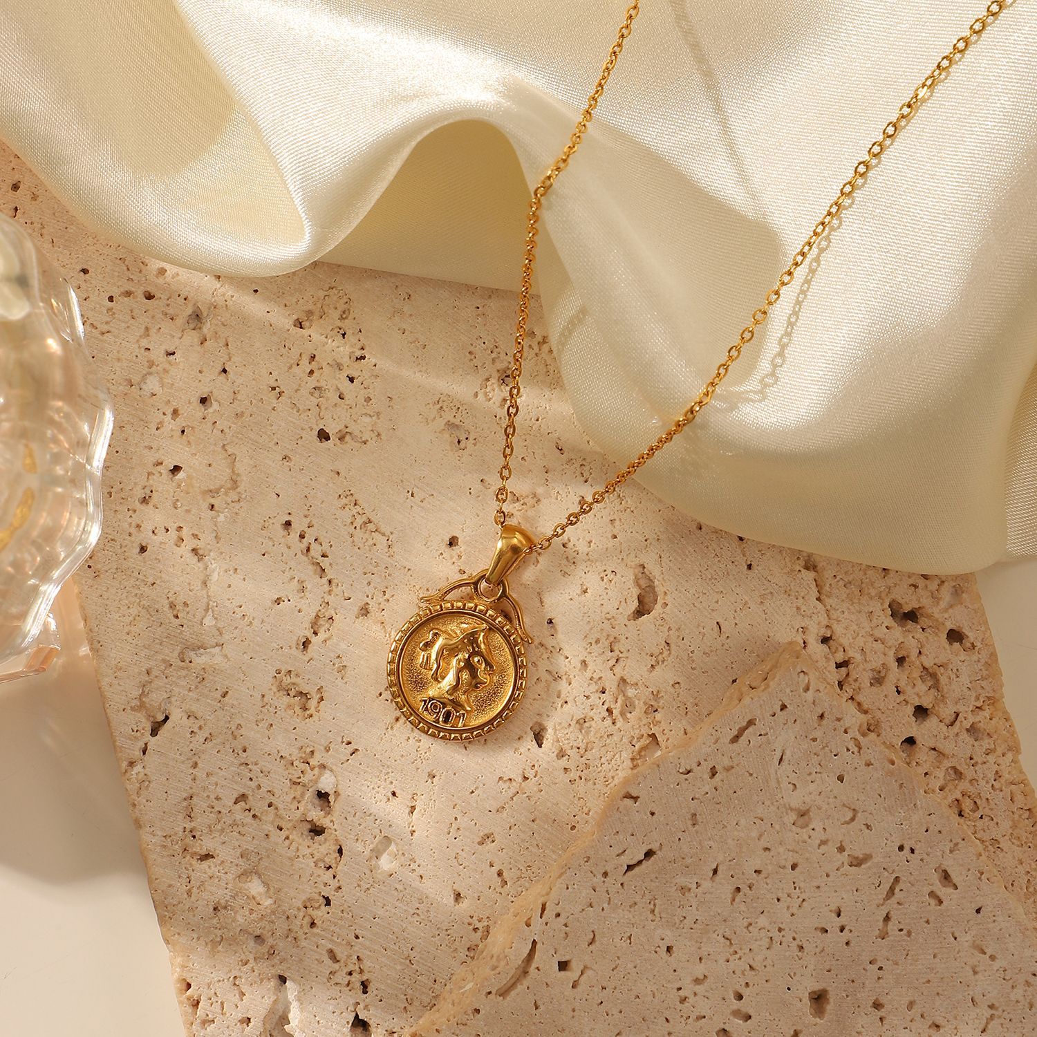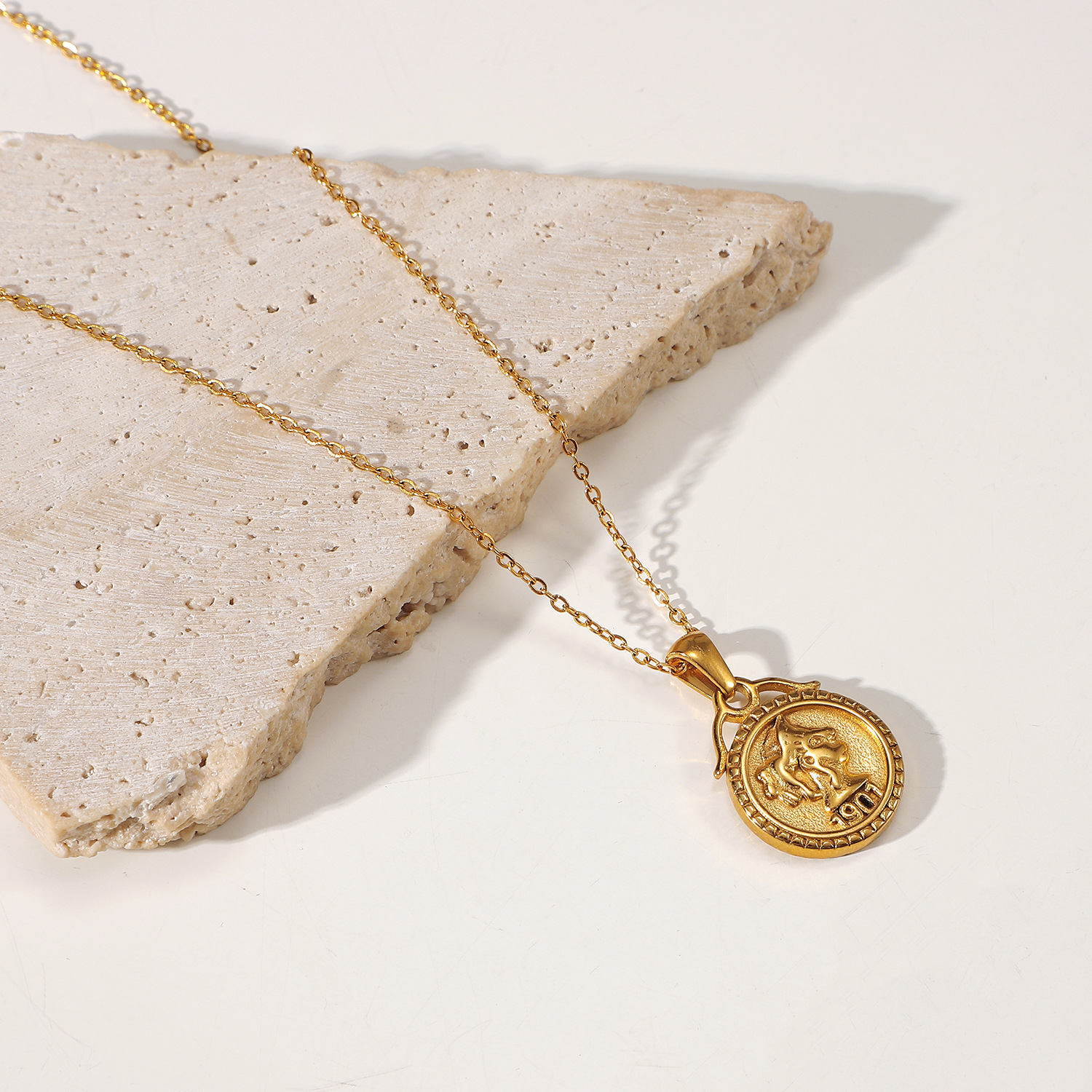 标题:INS时尚18K不锈钢双面立体浮雕1901伊丽莎白女王头像硬币吊坠项链