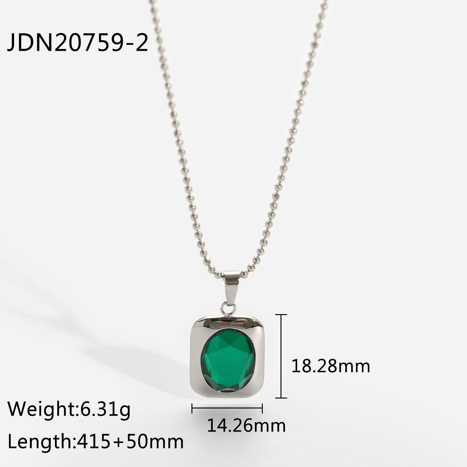 标题:欧美金属质感项链INS网红钢色绿宝石方形吊坠圆珠项链百搭配饰女