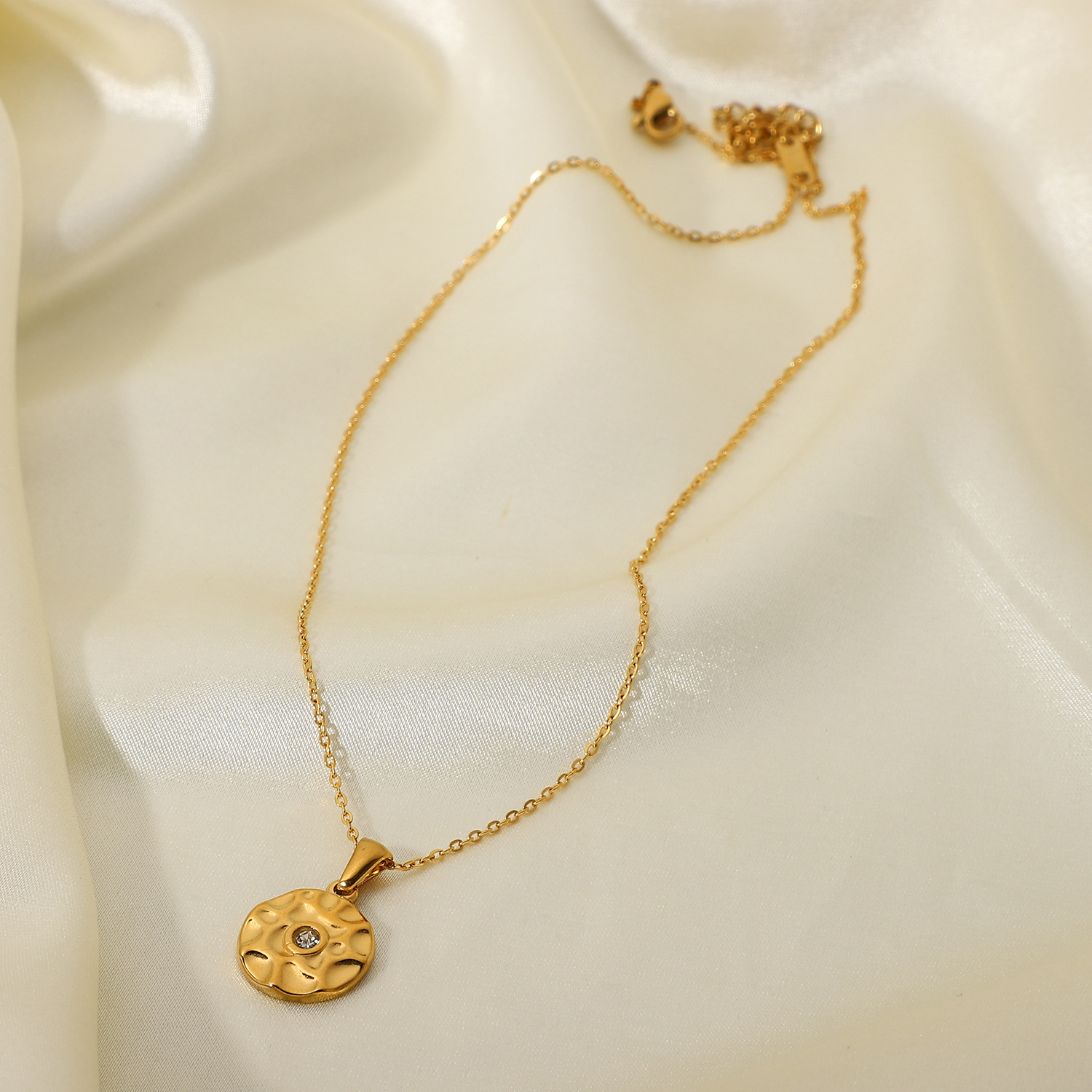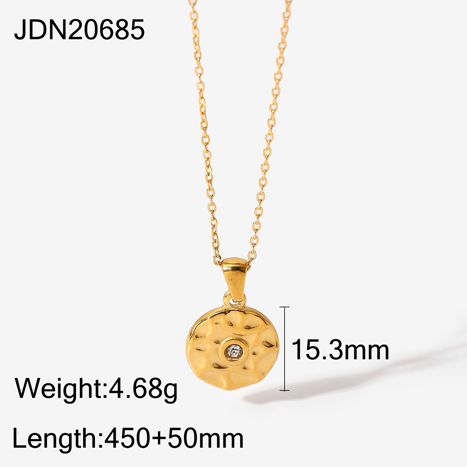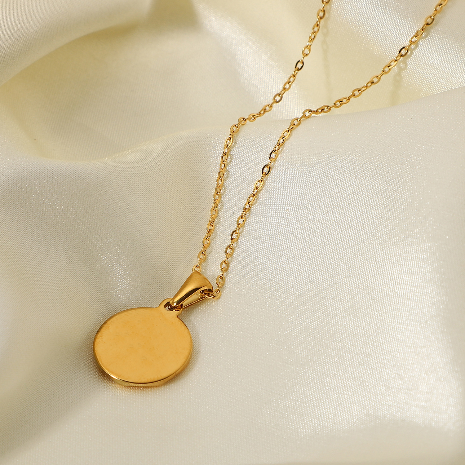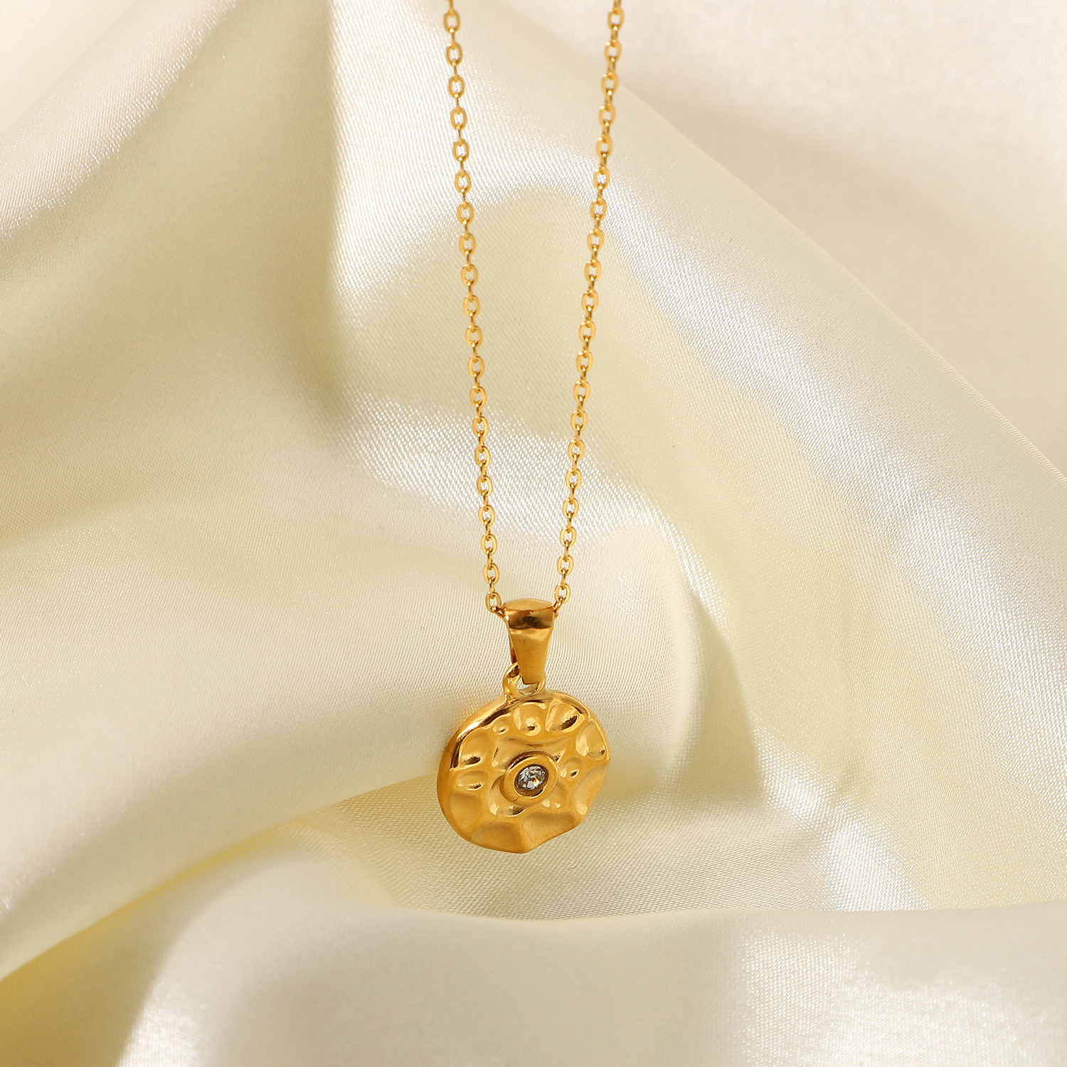 标题:INS网红同款不锈钢项链钛钢18K镀金凹凸面圆形锆石吊坠项链饰品女