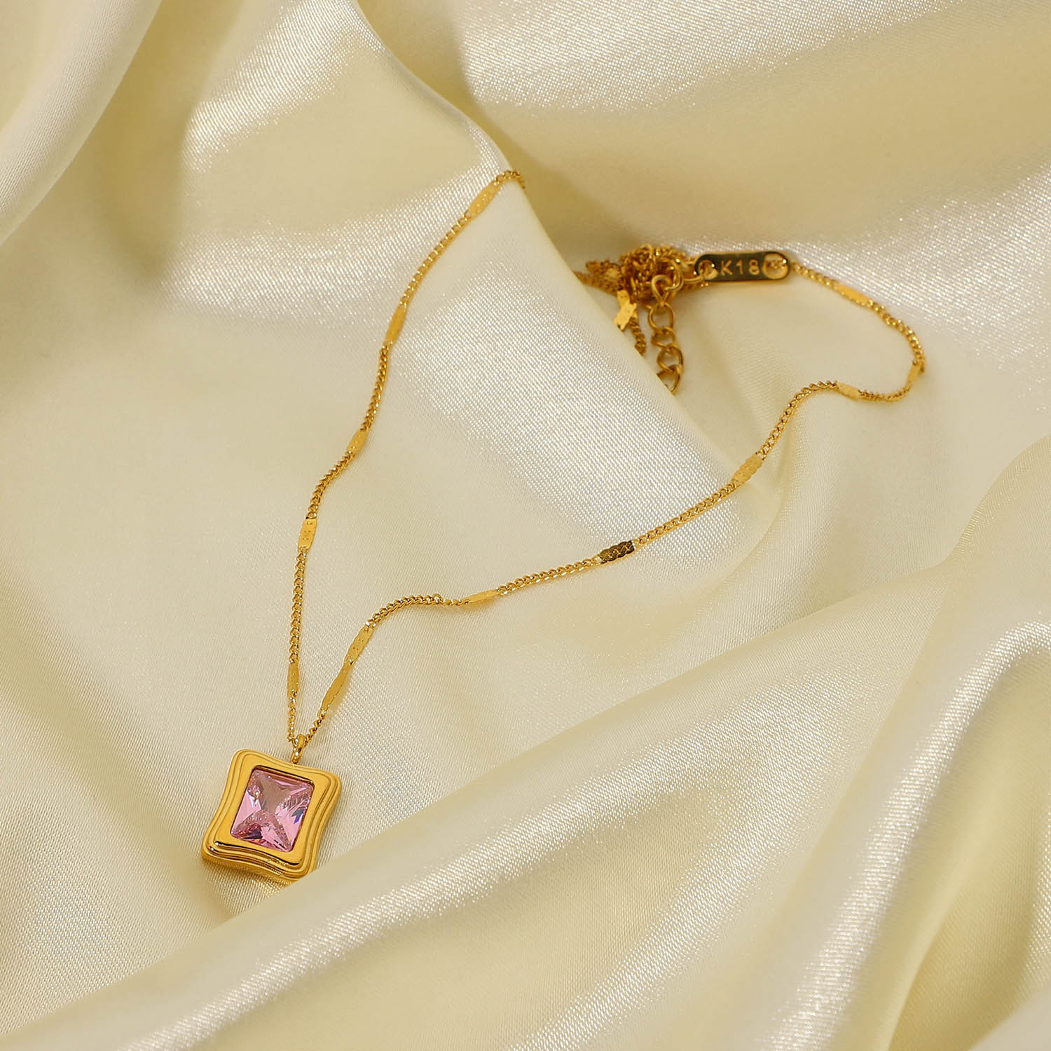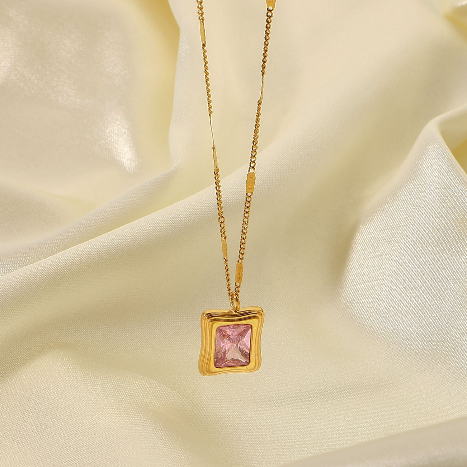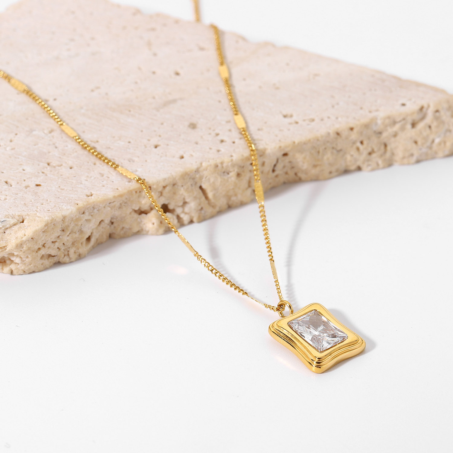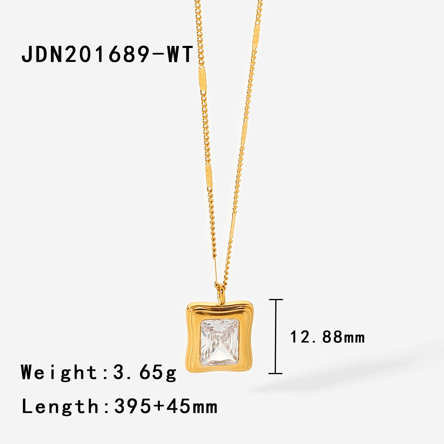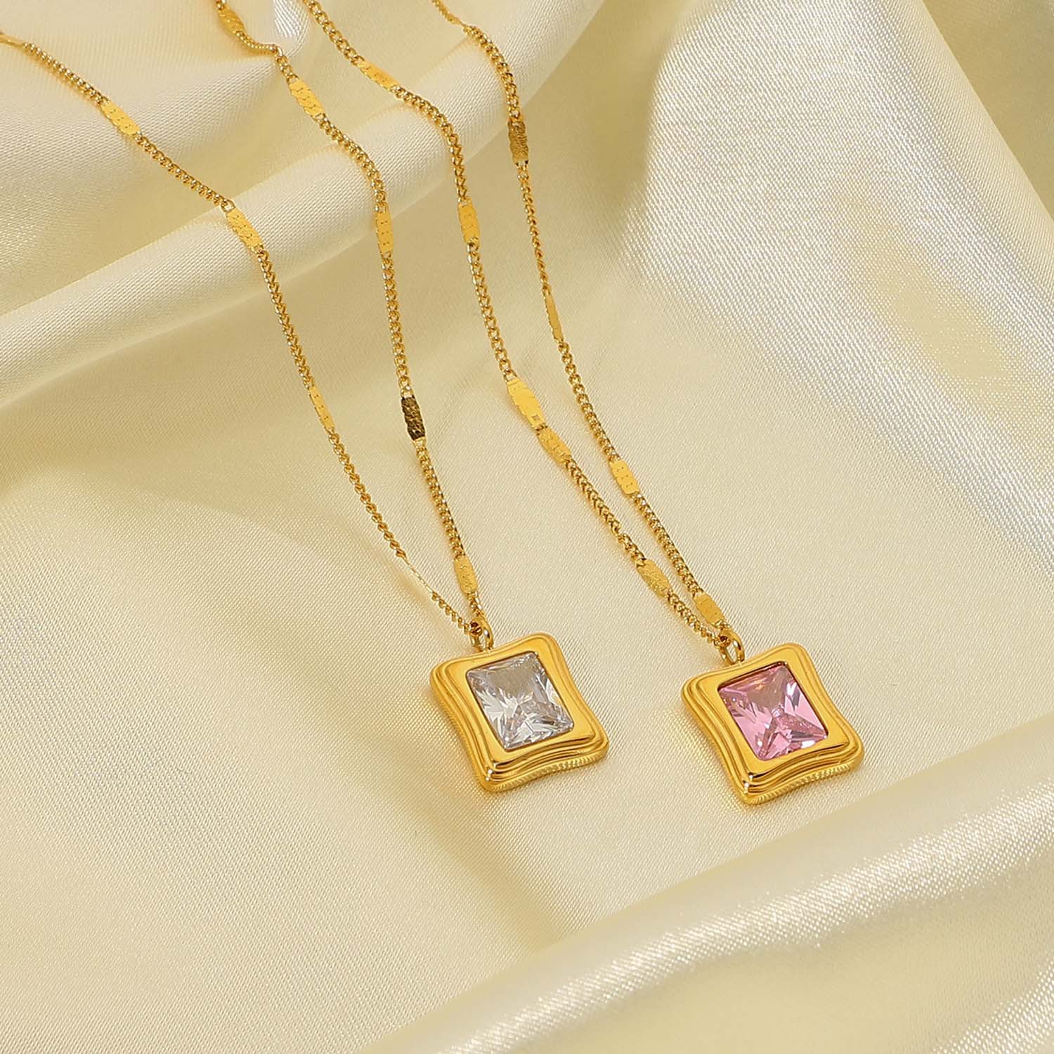 标题:欧美INS方糖锆石项链18k金不锈钢钛钢法式少女锁骨链吊坠项链女士