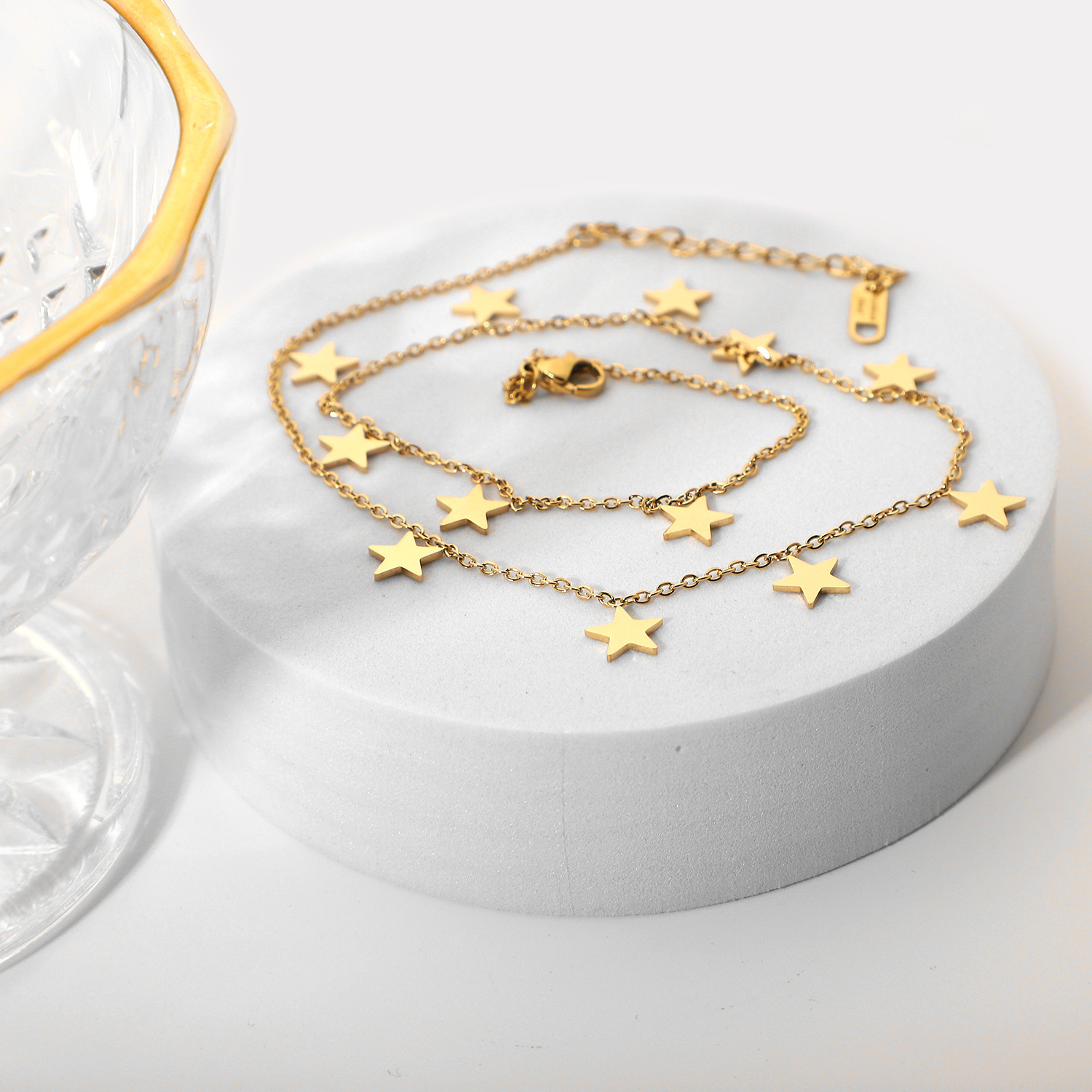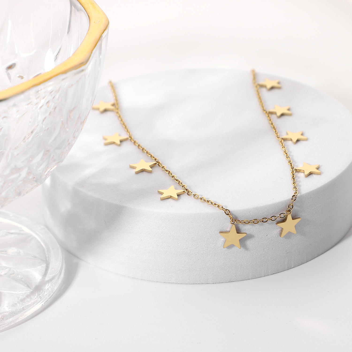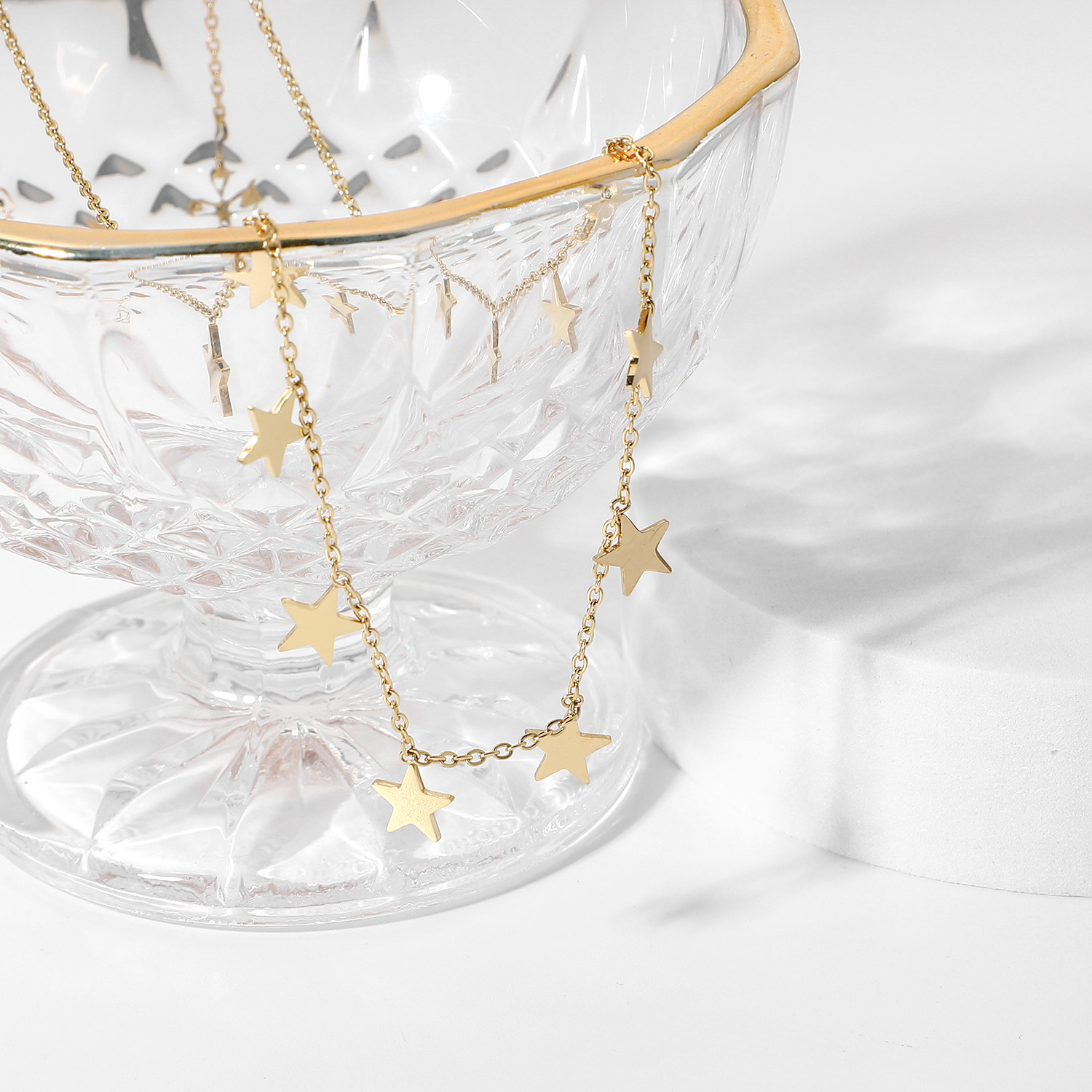 标题:欧美INS风吊坠项链首饰14K镀金不锈钢多层金串星星吊坠项链饰品女