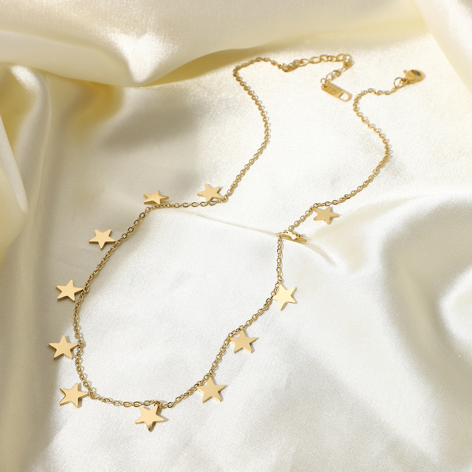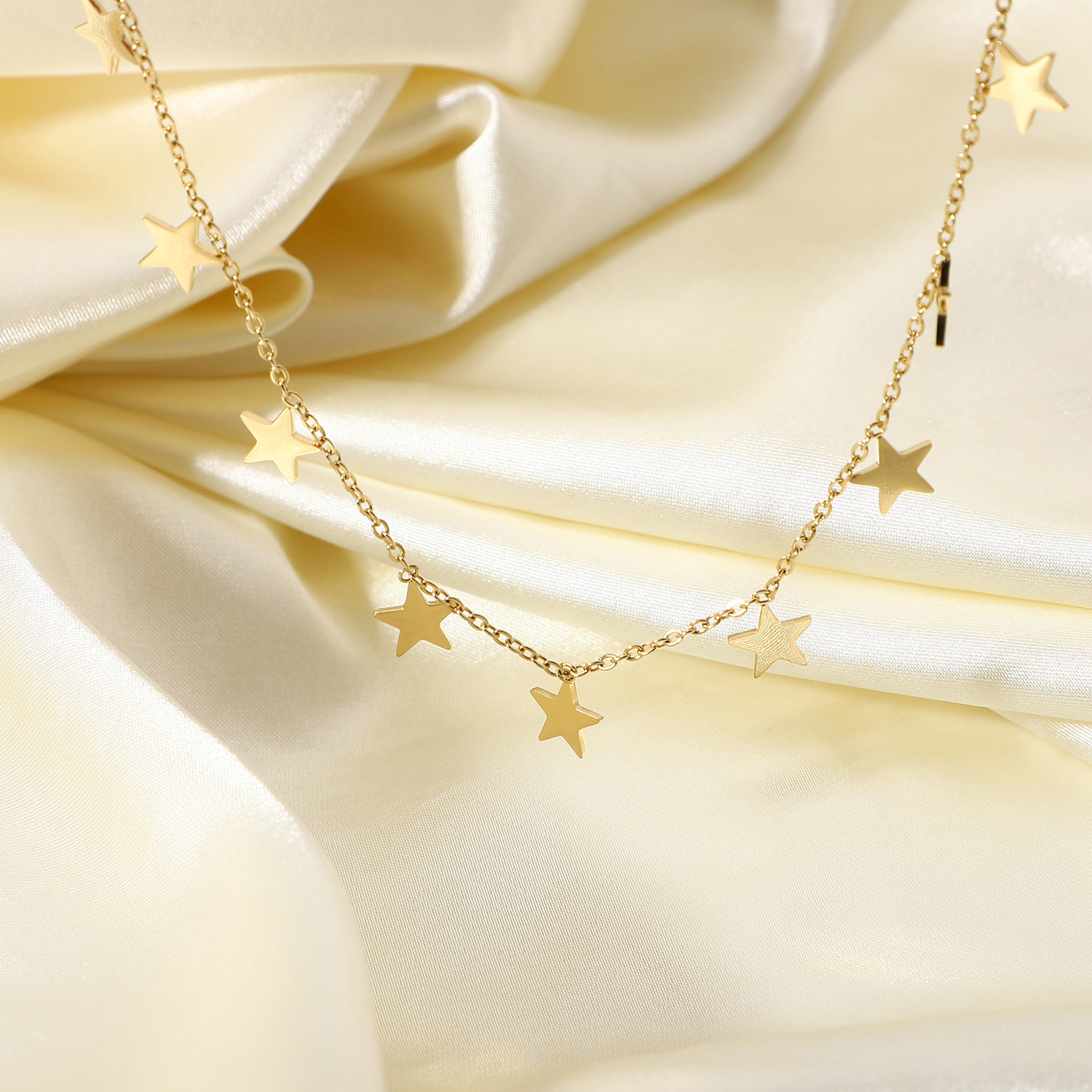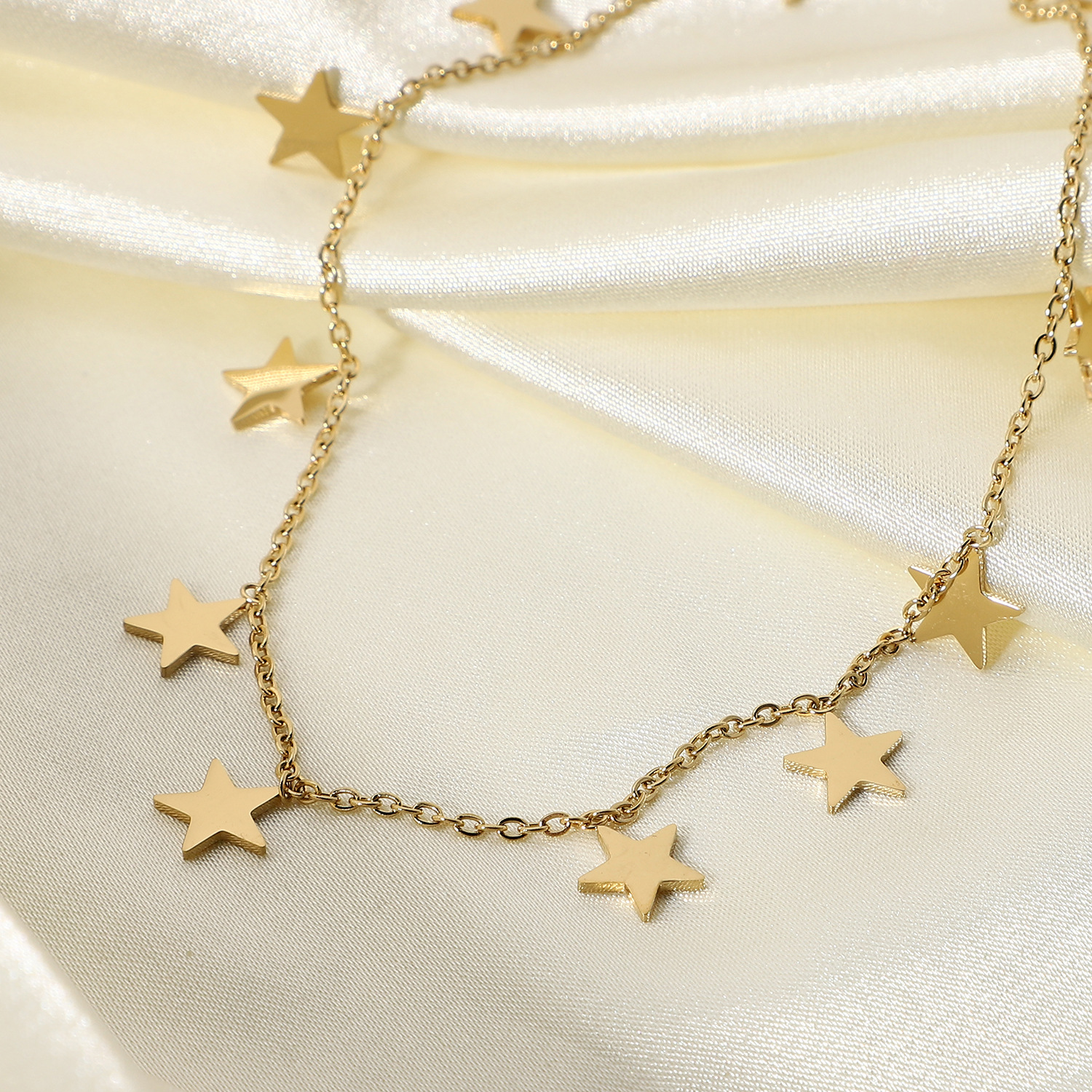 标题:欧美INS风吊坠项链首饰14K镀金不锈钢多层金串星星吊坠项链饰品女