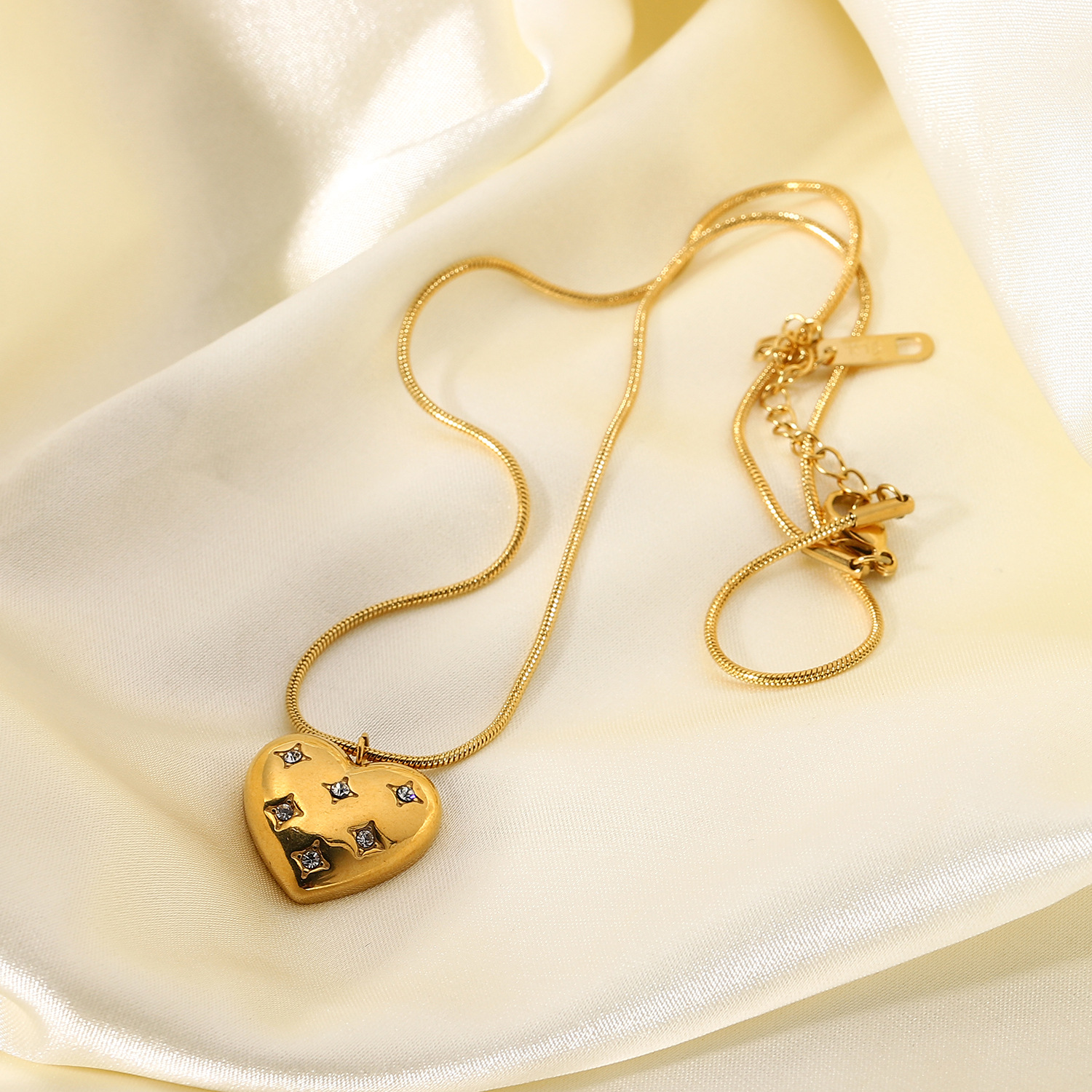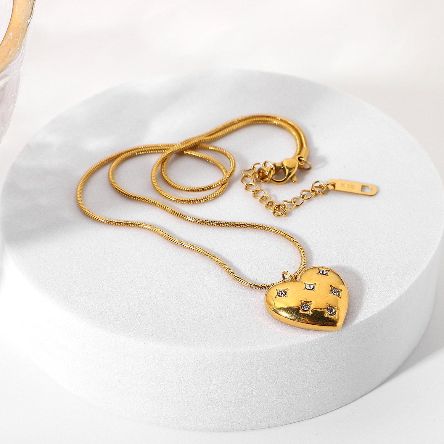 标题:新款时尚不锈钢心形礼品首饰18K镀金心形锆石镶嵌吊坠女项链饰品
