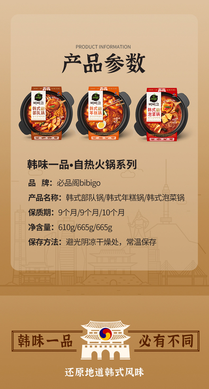 标题:希杰必品阁bibigo韩式自热小火锅泡菜年糕部队懒人自助速食大份量