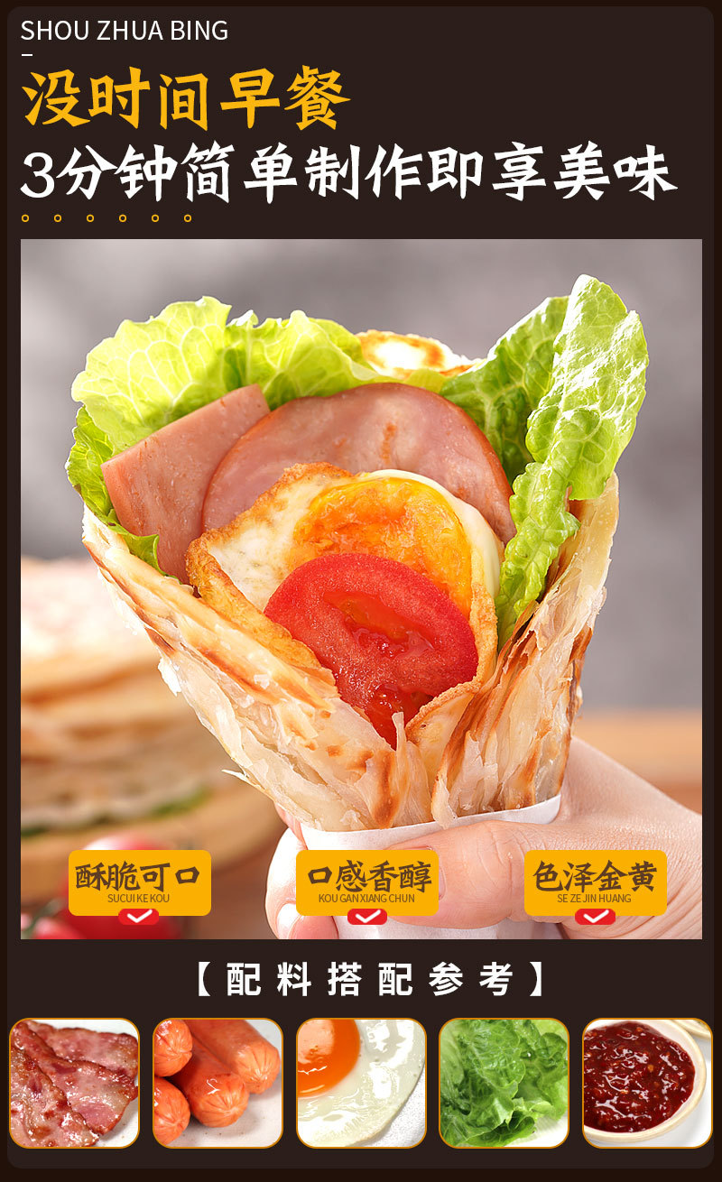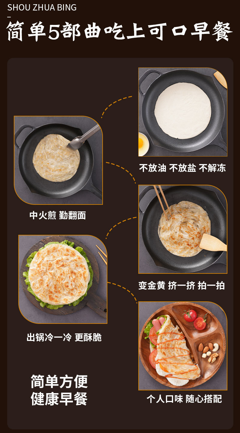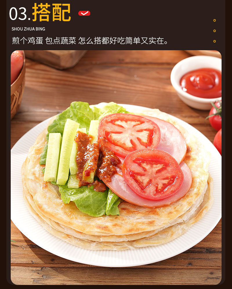 标题:商用早餐 乐麦点手抓饼50片-20片家庭装煎面饼批发饼冷速冻食品