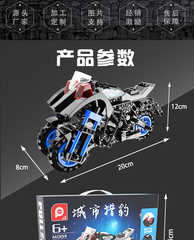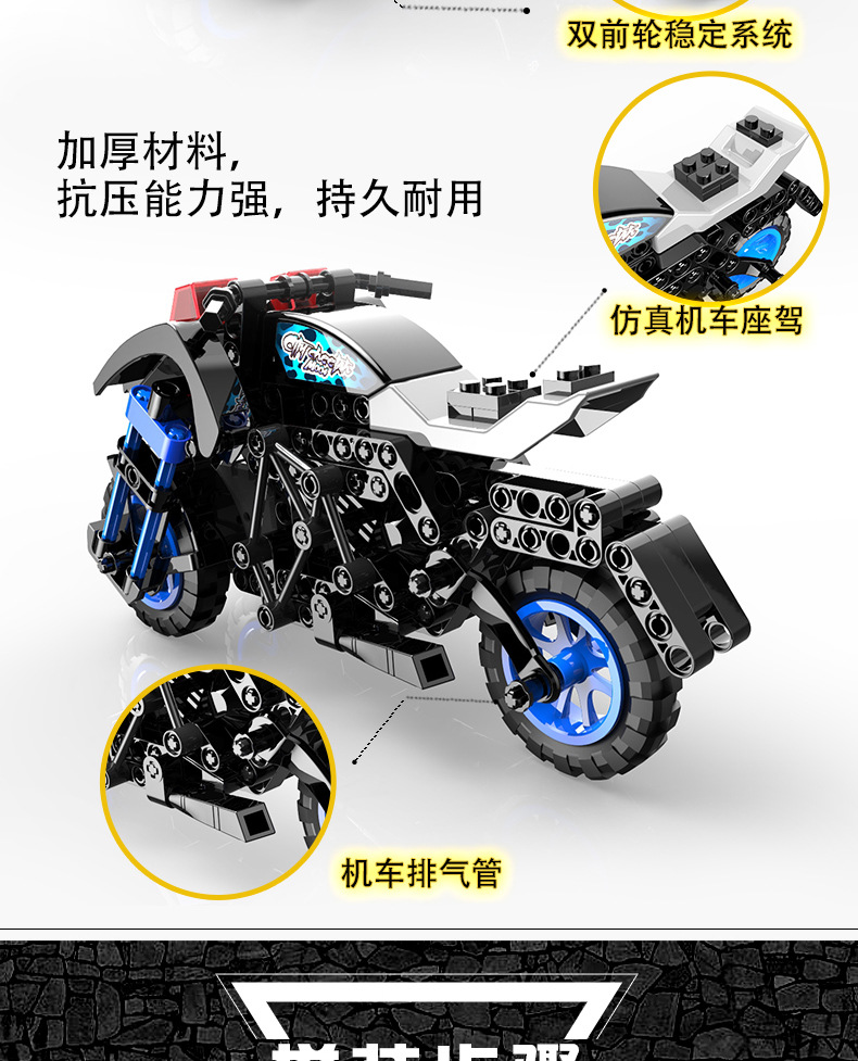 标题:一拼积木儿童拼装玩具车兼容乐高积木拼插摩托车模型 一件代发