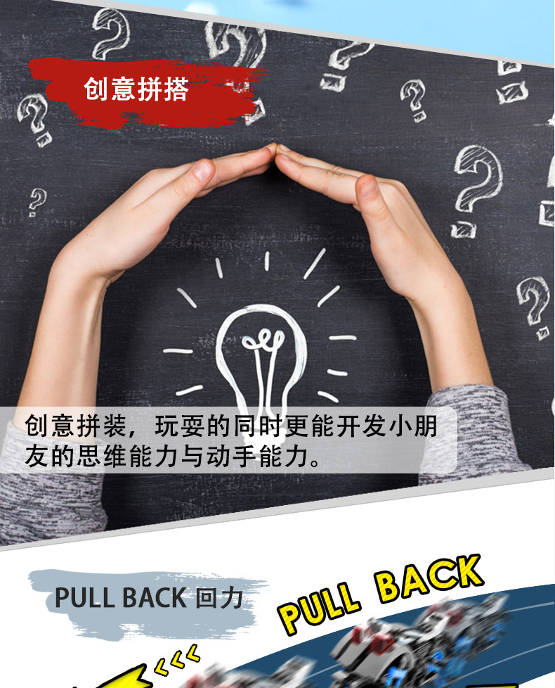描述:3C配置类别:14岁以下的塑胶玩具,材质:塑料/塑胶,功能:回力,品牌:一拼,货号:M004,产地:中国,规格:208X95X120mm,是否电动:否,是否多功能:是,是否能够DIY:是,包装方式:彩盒,加工定制:否,是否外贸:否,塑料材质分类:ABS,塑料积木类型:小颗粒,积木粒(片)数:200-400粒(片),积木净重:0.66kg,是否有动漫形象:否,专利及著作权申请时间:无,是否有导购视频:是,多米诺类型:无,是否专供外贸:否,商品3C认证码:2019152203023698,颜色:暗影战神,城市猎豹,极地赛车,烈焰战神,丛林战神,是否跨境出口专供货源:否,适用年龄:少年(7-14岁),