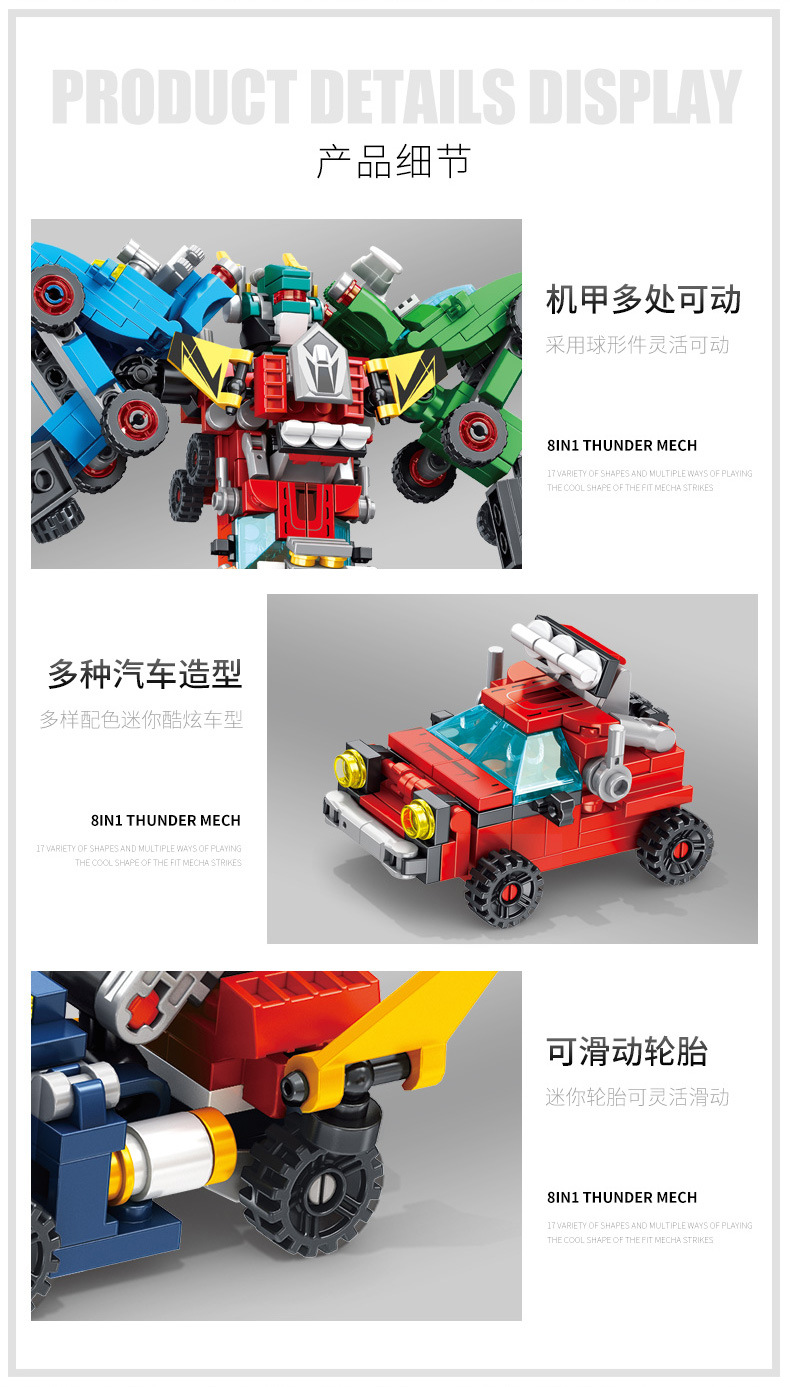 标题:潘洛斯积木雷霆赛车机甲兼容乐高小颗粒益智拼搭玩具车男孩礼品