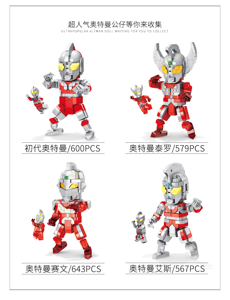 标题:潘洛斯积木奥特曼公仔兼容乐高小颗粒拼搭益智积木男孩玩具礼物